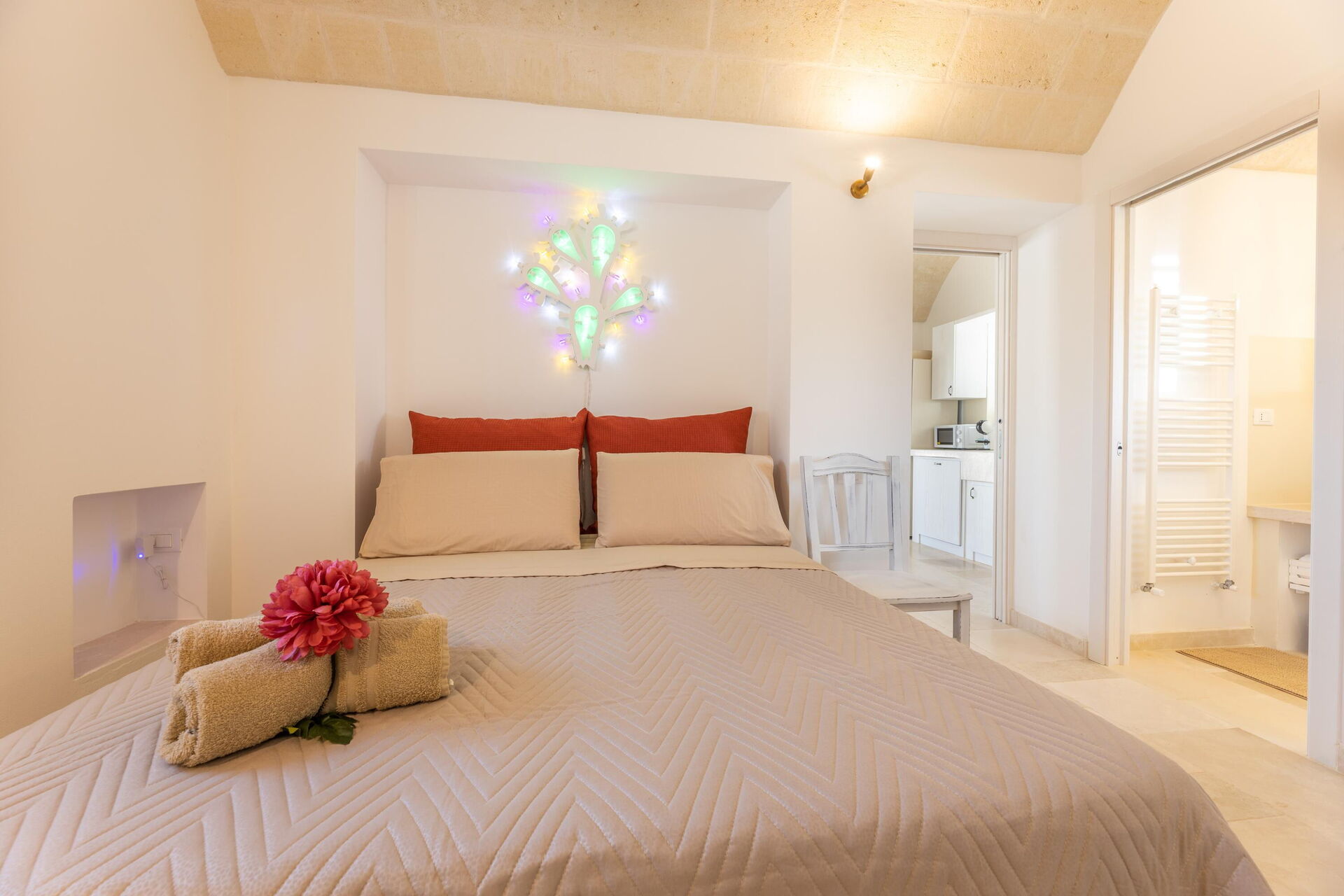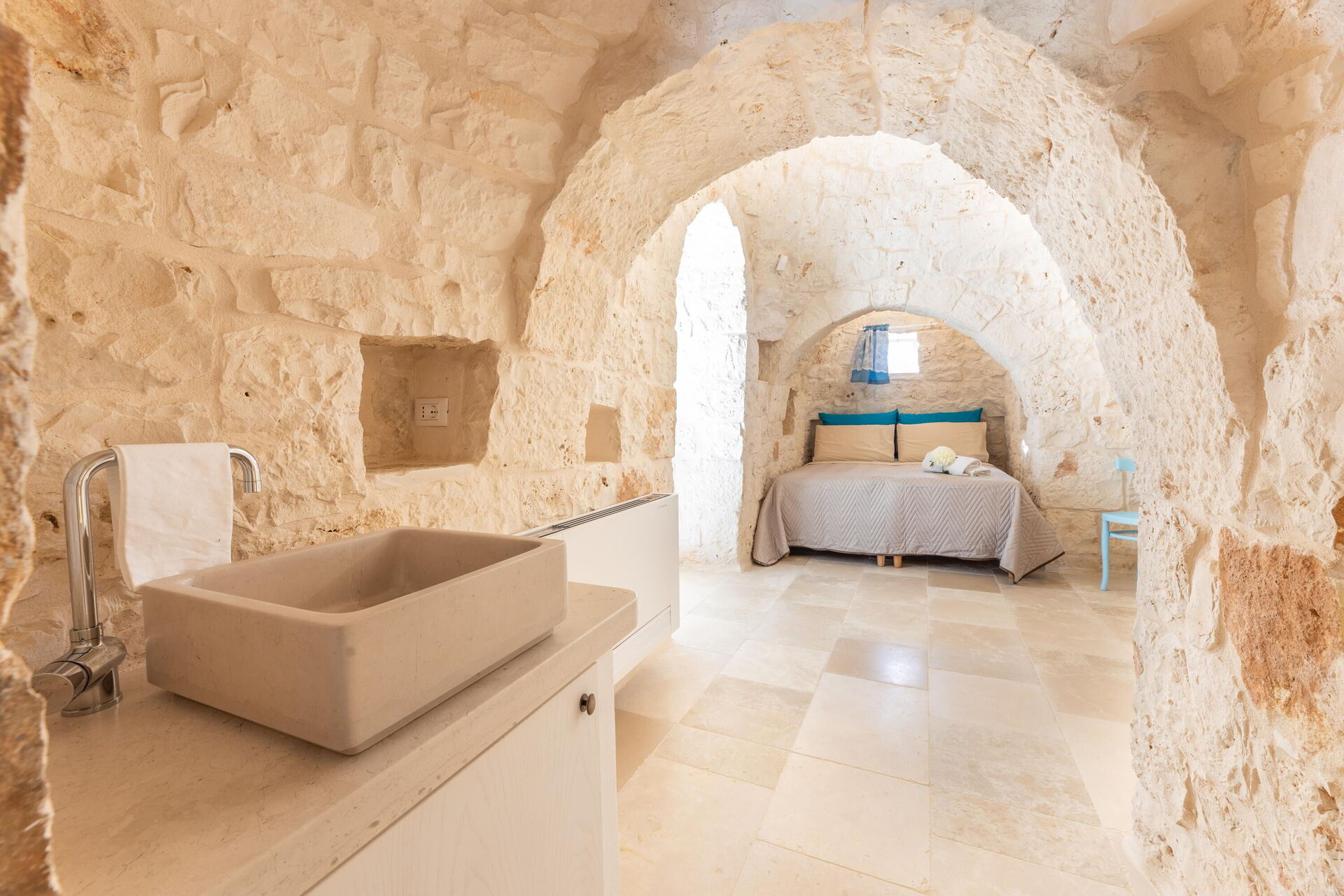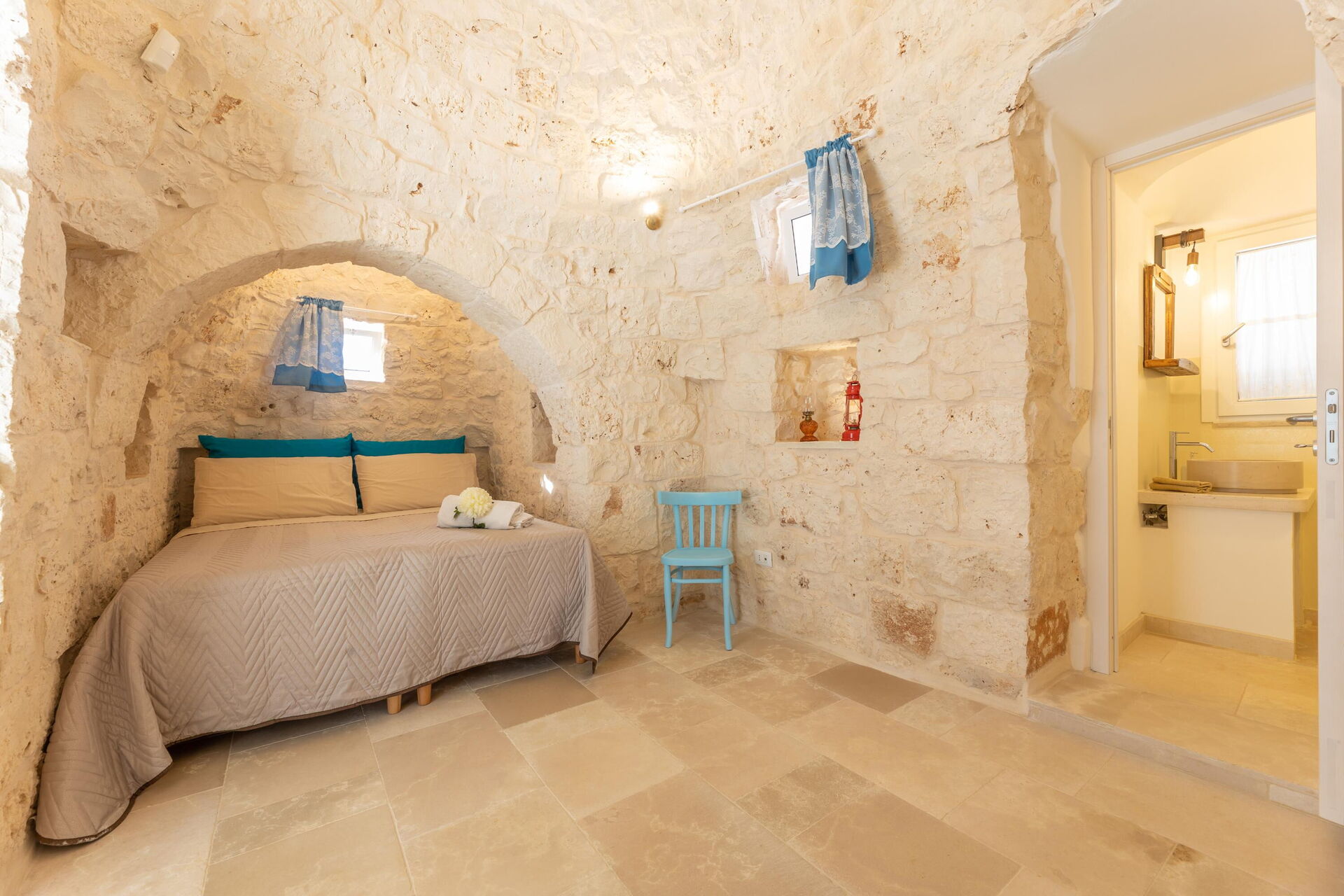 U zult zeker onder de indruk zijn van de slaapkamer die uit de trullo is gehouwen en het slimme gebruik van de binnenruimte!