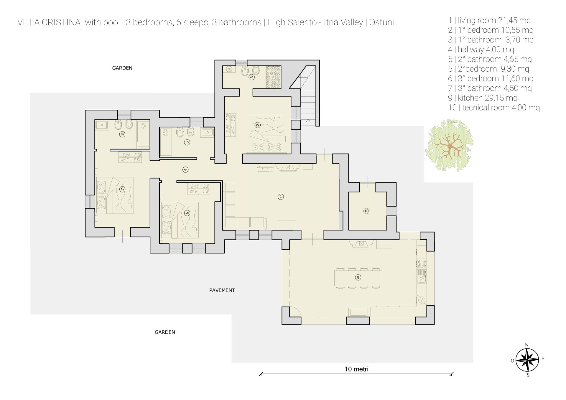 Villa Cristina ligt op 8000 m2 grond met een verscheidenheid aan bomen en een grote olijfgaard. Buiten is het goed uitgerust om te genieten van de frisse lucht en te ontspannen bij het zwembad. Het interieur is gastvrij en comfortabel.