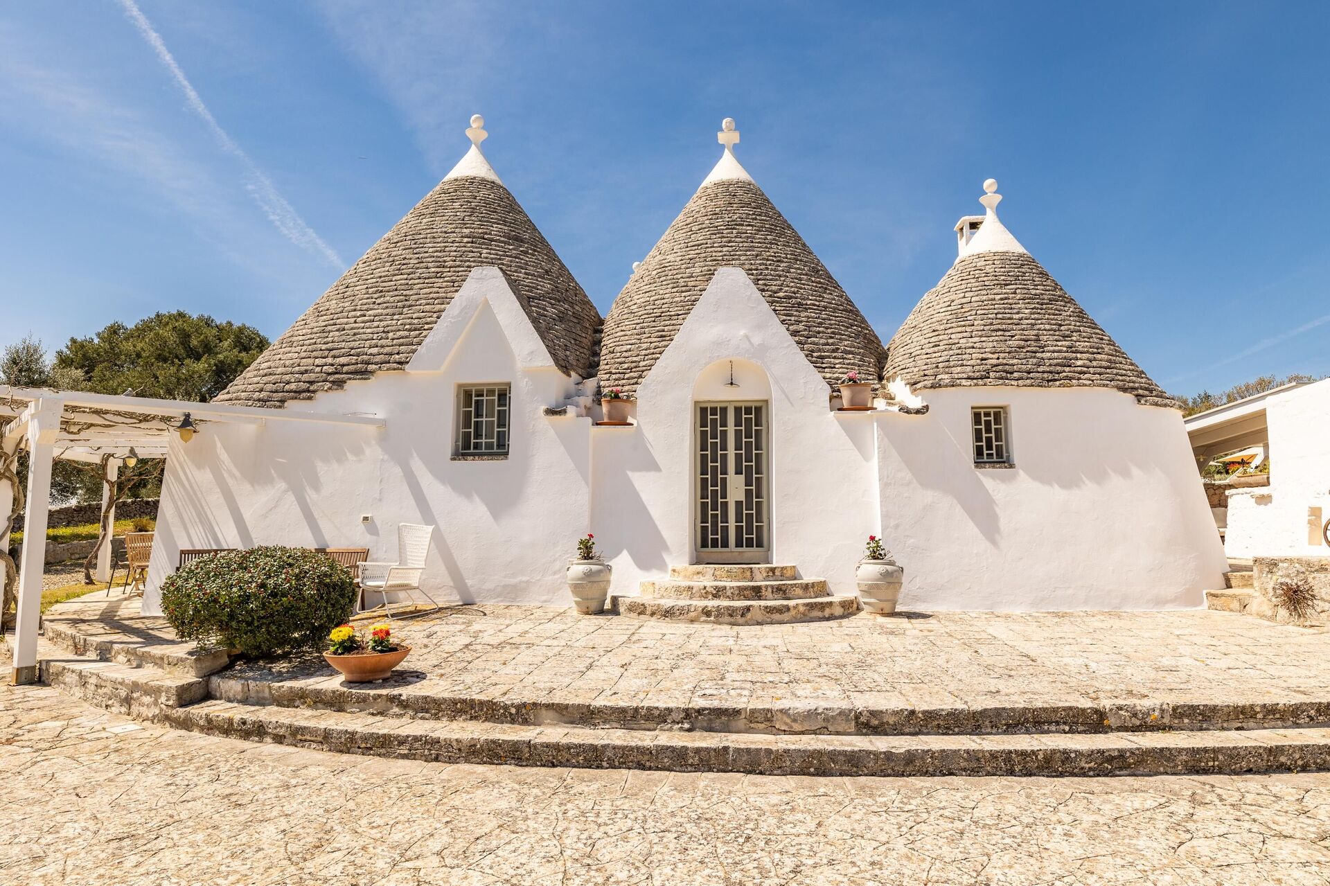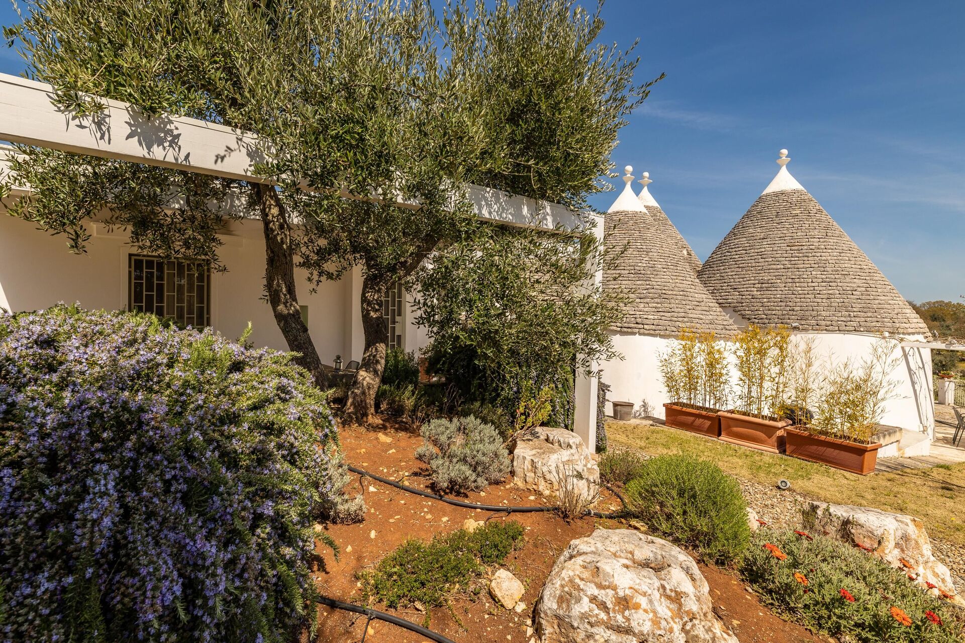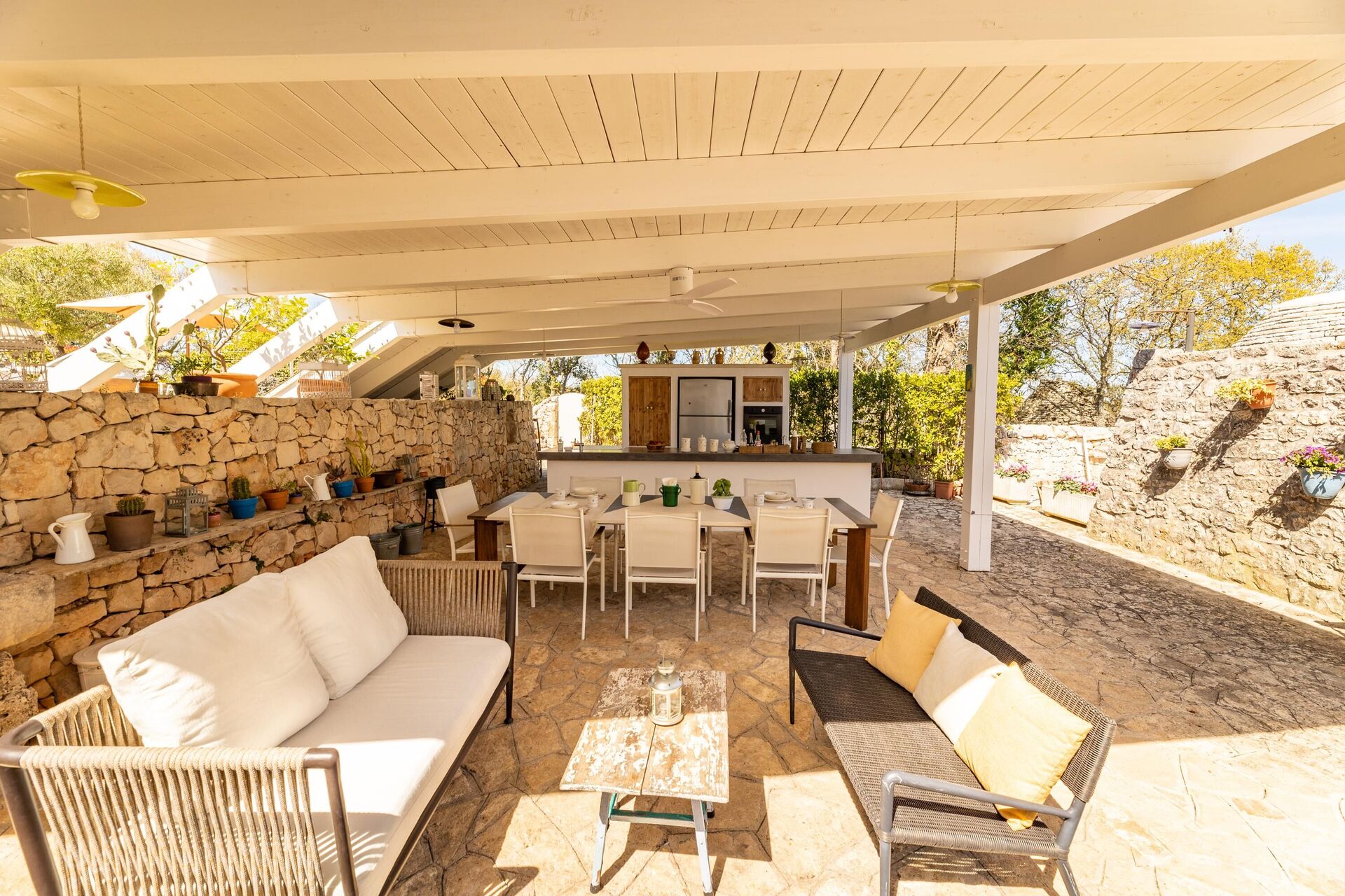 De prachtige vakantiewoning is de perfecte mix van traditionele en moderne stijlen. Met 5 slaapkamers is het geschikt voor maximaal 10 personen. Het bestaat uit twee aparte units (een trullo en een lamia) en is ideaal voor een vakantie met vrienden of familie.