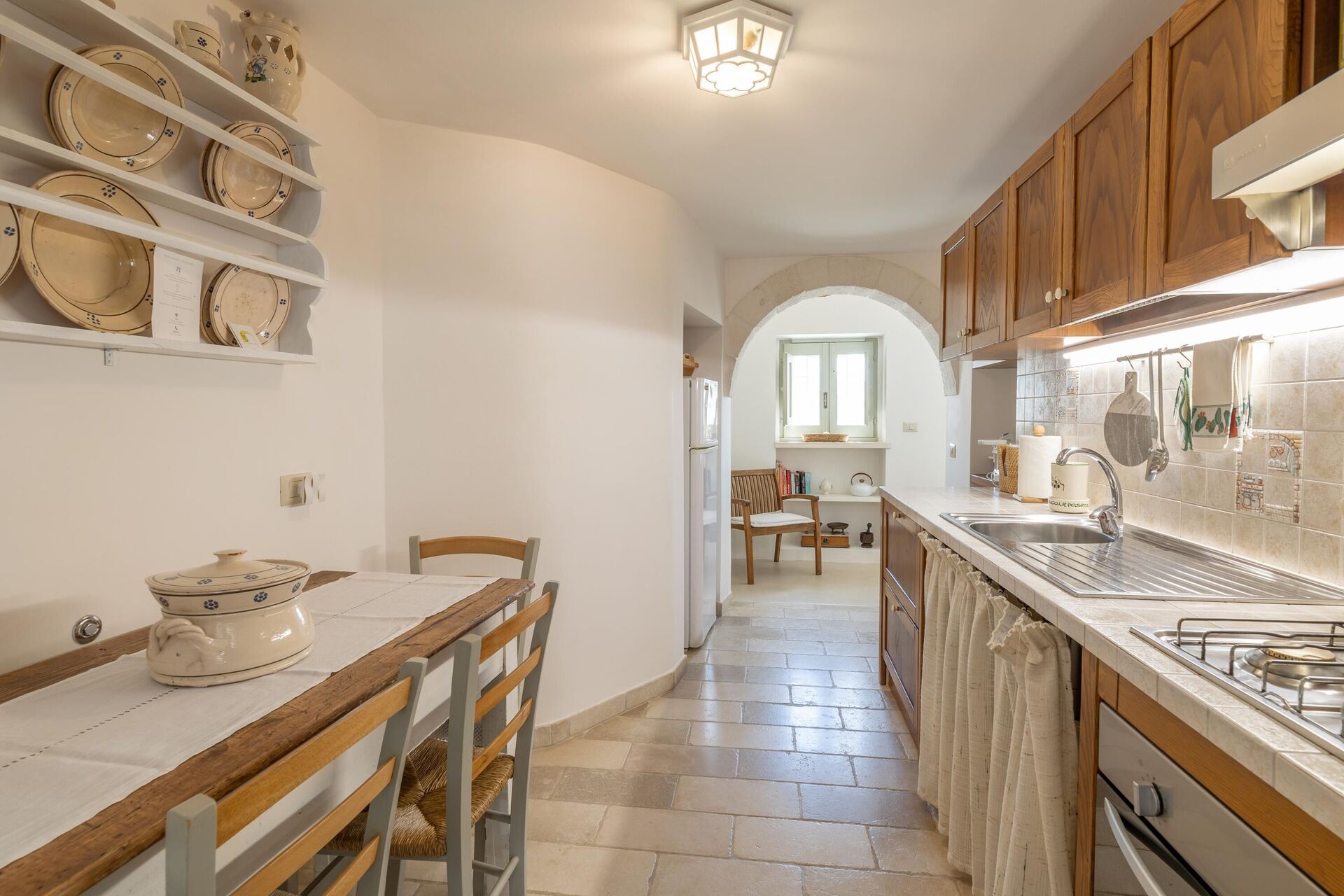 Bovendien hebben de lamia en de trullo elk een veranda waar u kunt ontspannen terwijl u geniet van het uitzicht op het platteland van Salento.