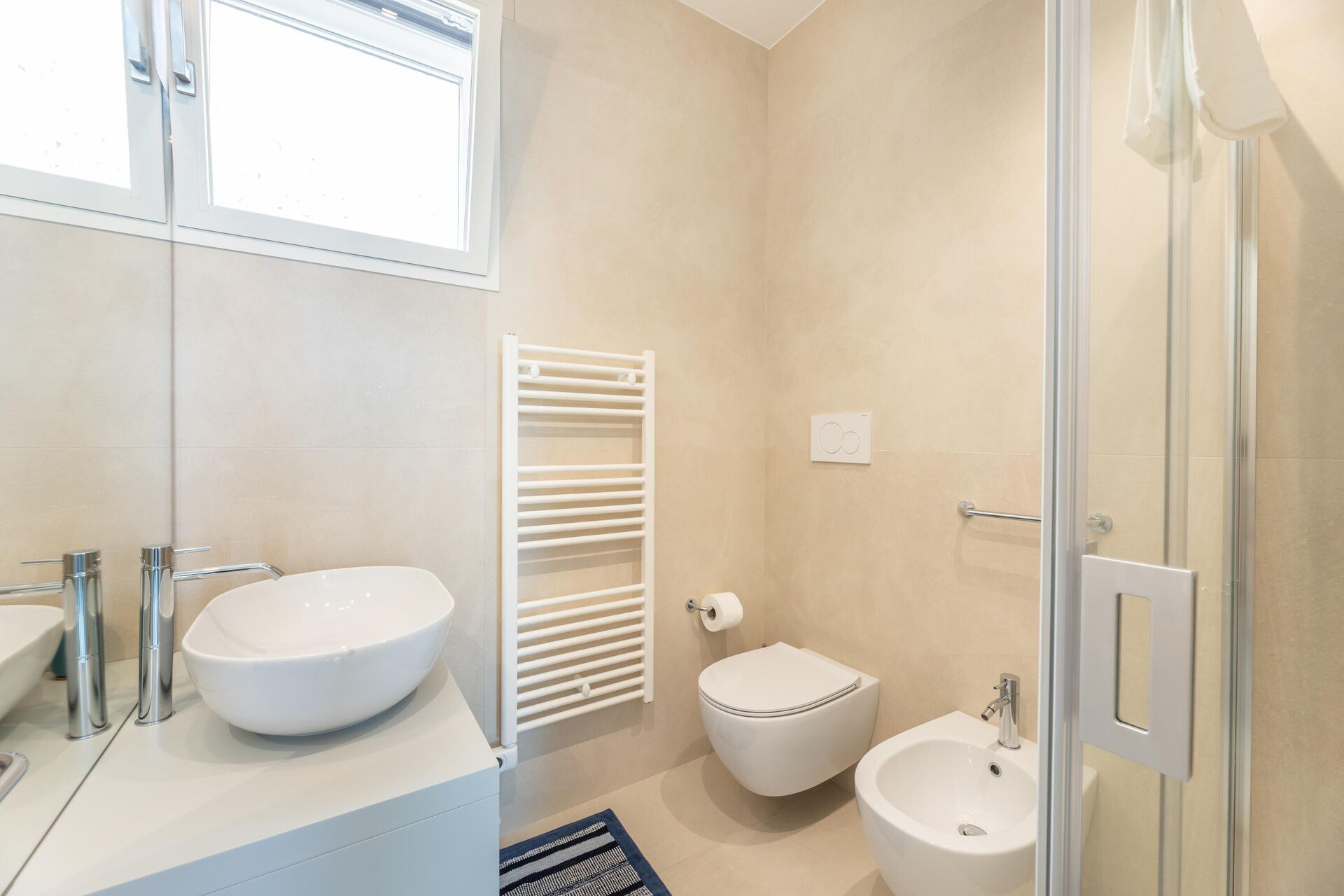 Tweede verdieping (ten opzichte van straatniveau): woonkamer (airconditioning, tv) met eenpersoonsslaapbank, keukenhoek (kookplaat, oven, vriezer, koelkast, vaatwasser, koffiezetapparaat) en eethoek met uitgang naar het schilderachtige terras met uitzicht op zee, slaapkamer met tweepersoonsbed (airconditioning, scherm), slaapkamer met twee eenpersoonsbedden (airconditioning, scherm) met uitgang naar het terras, badkamer met douche.