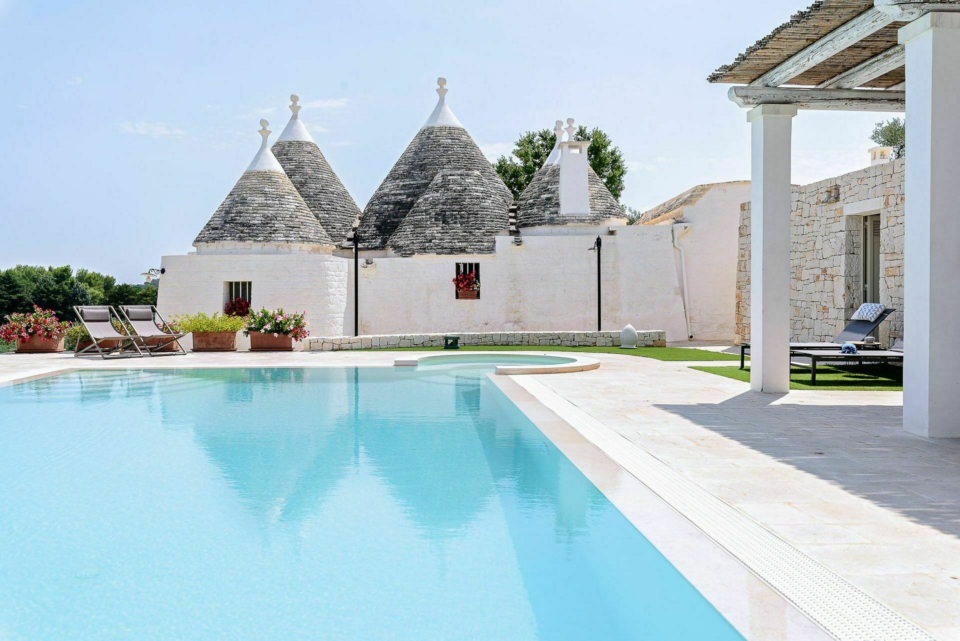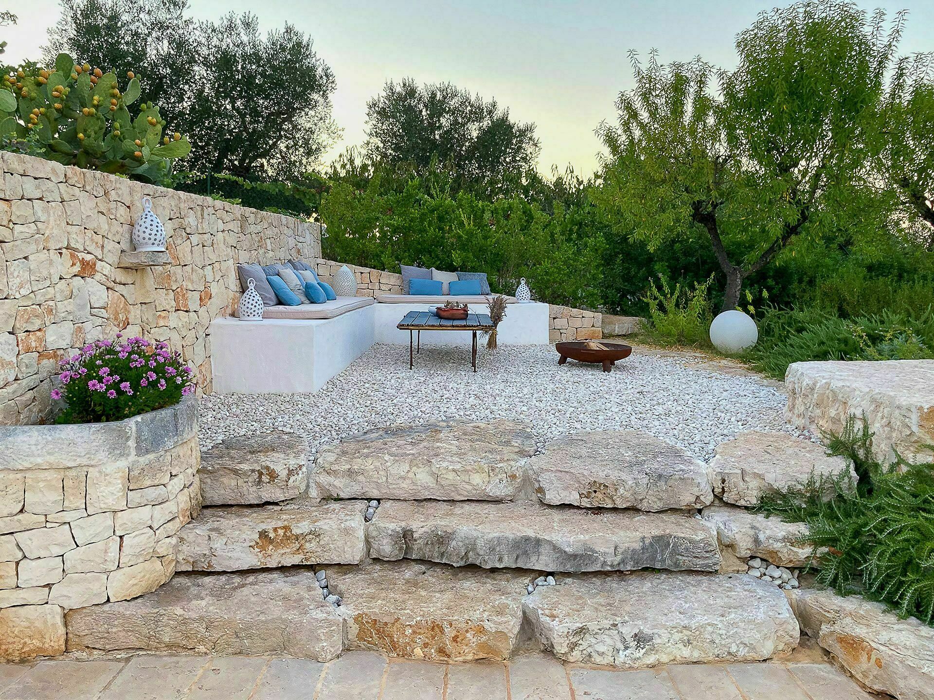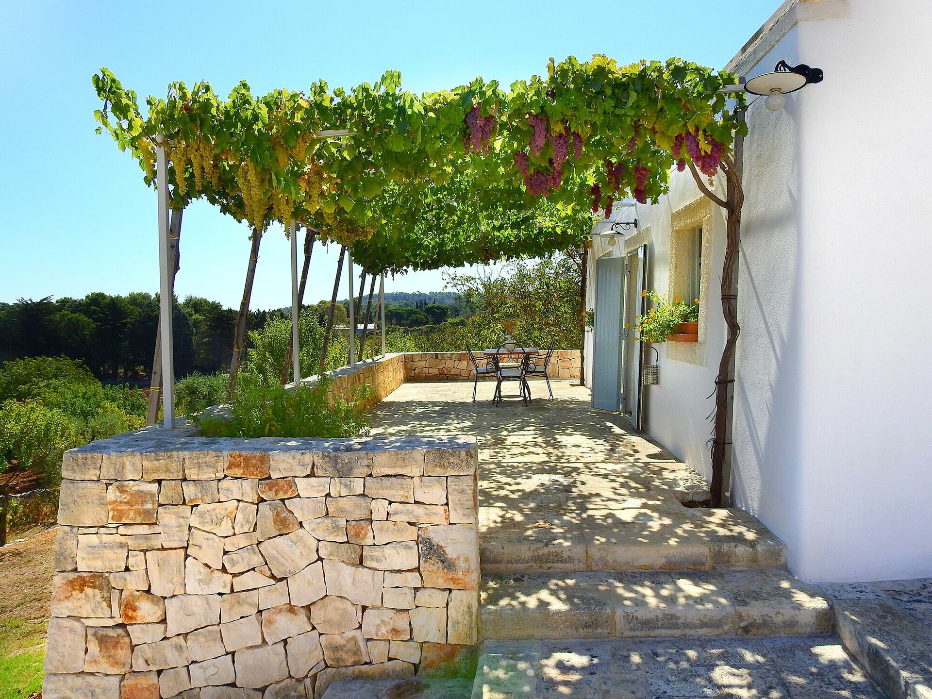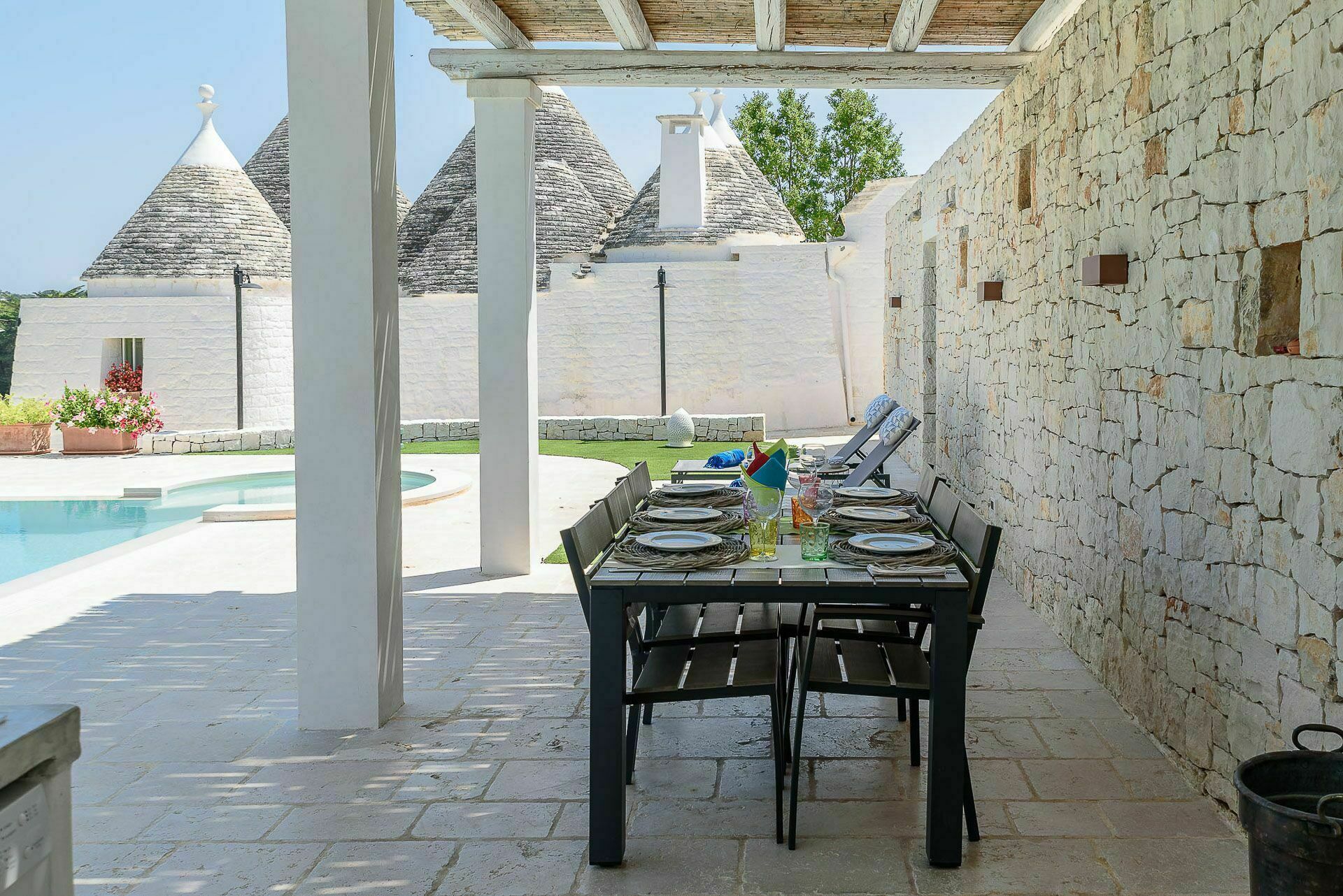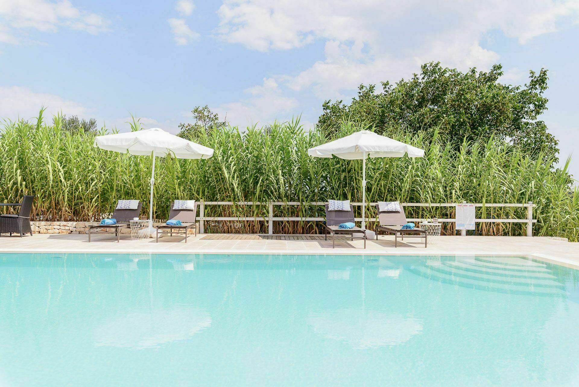 Een grote, goed onderhouden tuin omringt het pand. Achter de villa ligt een spectaculair zoutwaterzwembad geflankeerd door een elegant groen gazon. Het zwembad heeft een Romeinse trap voor gemakkelijke toegang en een ruimte met ontspannende massagestralen. Vanaf de ligstoelen bij het zwembad kunt u genieten van de zon en de rust van het Apulische platteland.