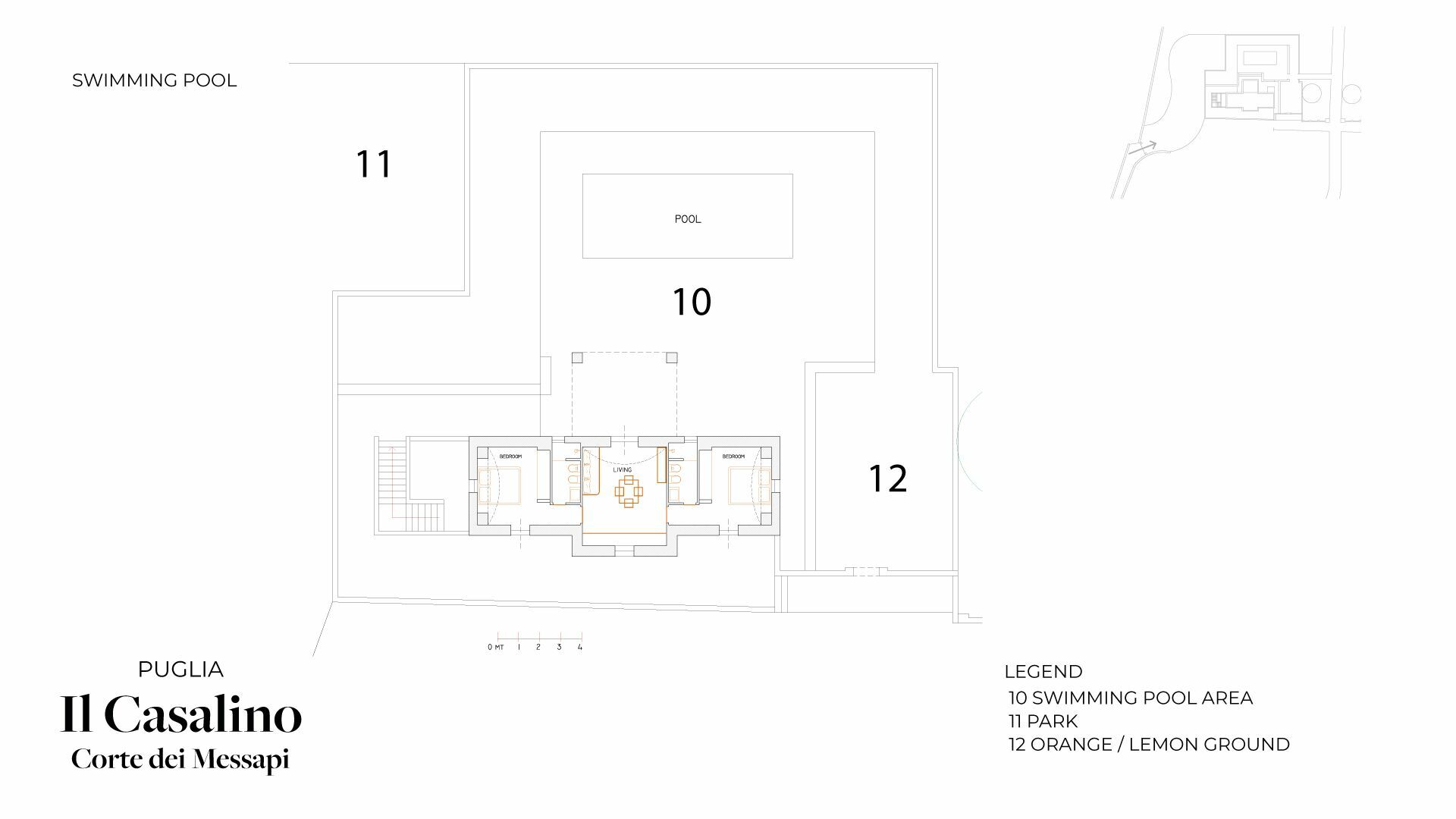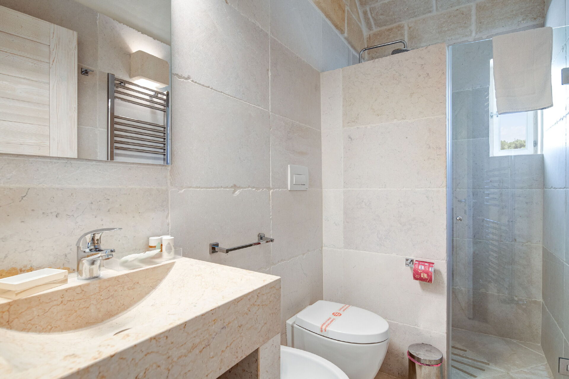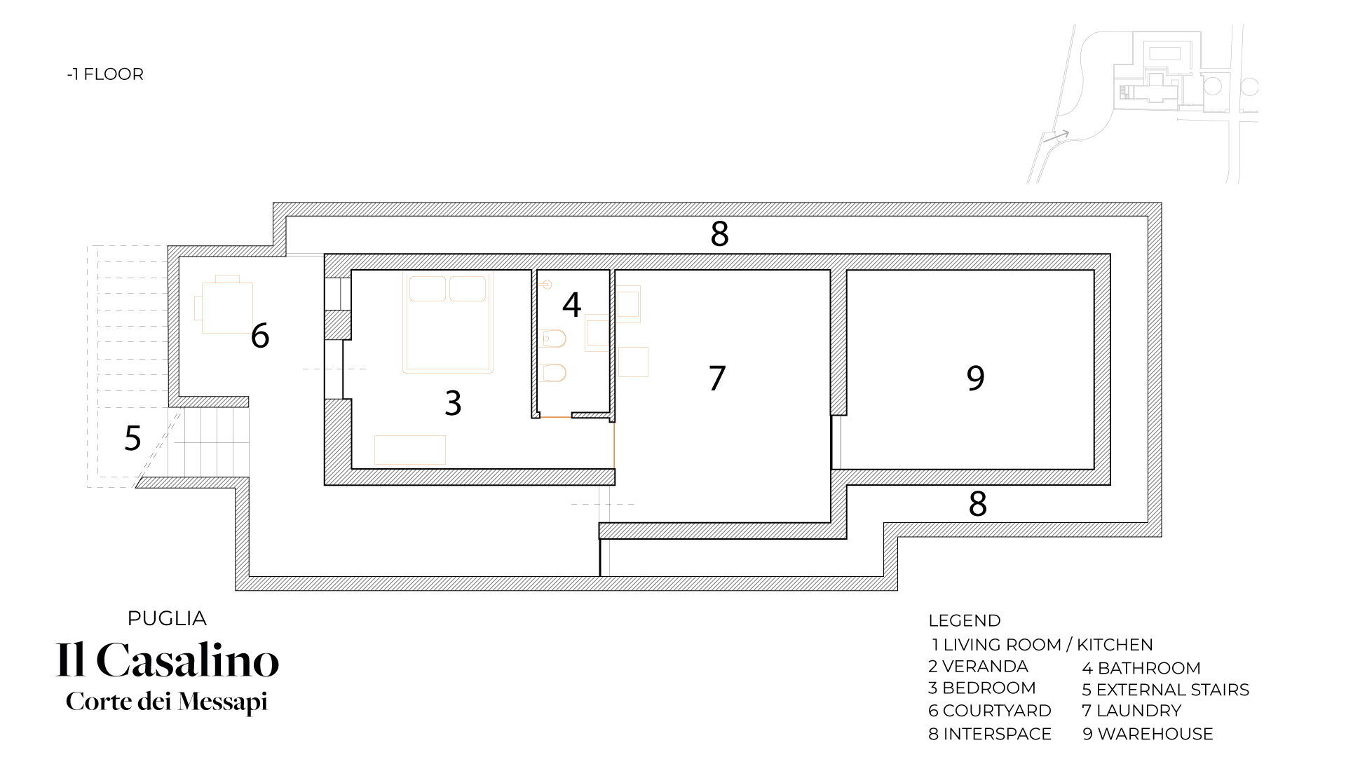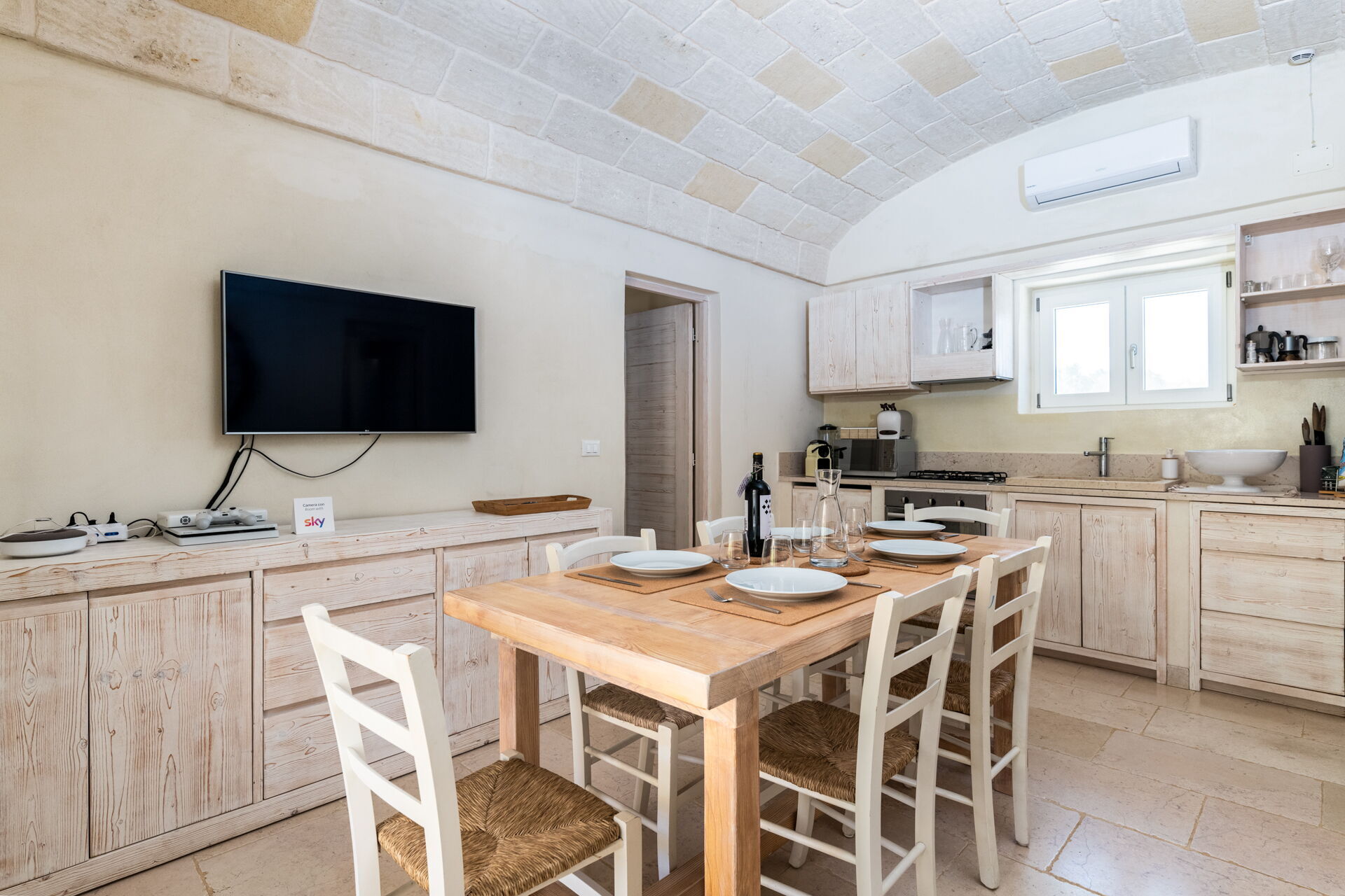 Casalino dei Messapi is geschikt voor maximaal 6 personen. Het bestaat uit twee tweepersoonsslaapkamers op de begane grond en een derde tweepersoonsslaapkamer op de benedenverdieping, die binnen niet met elkaar verbonden is.