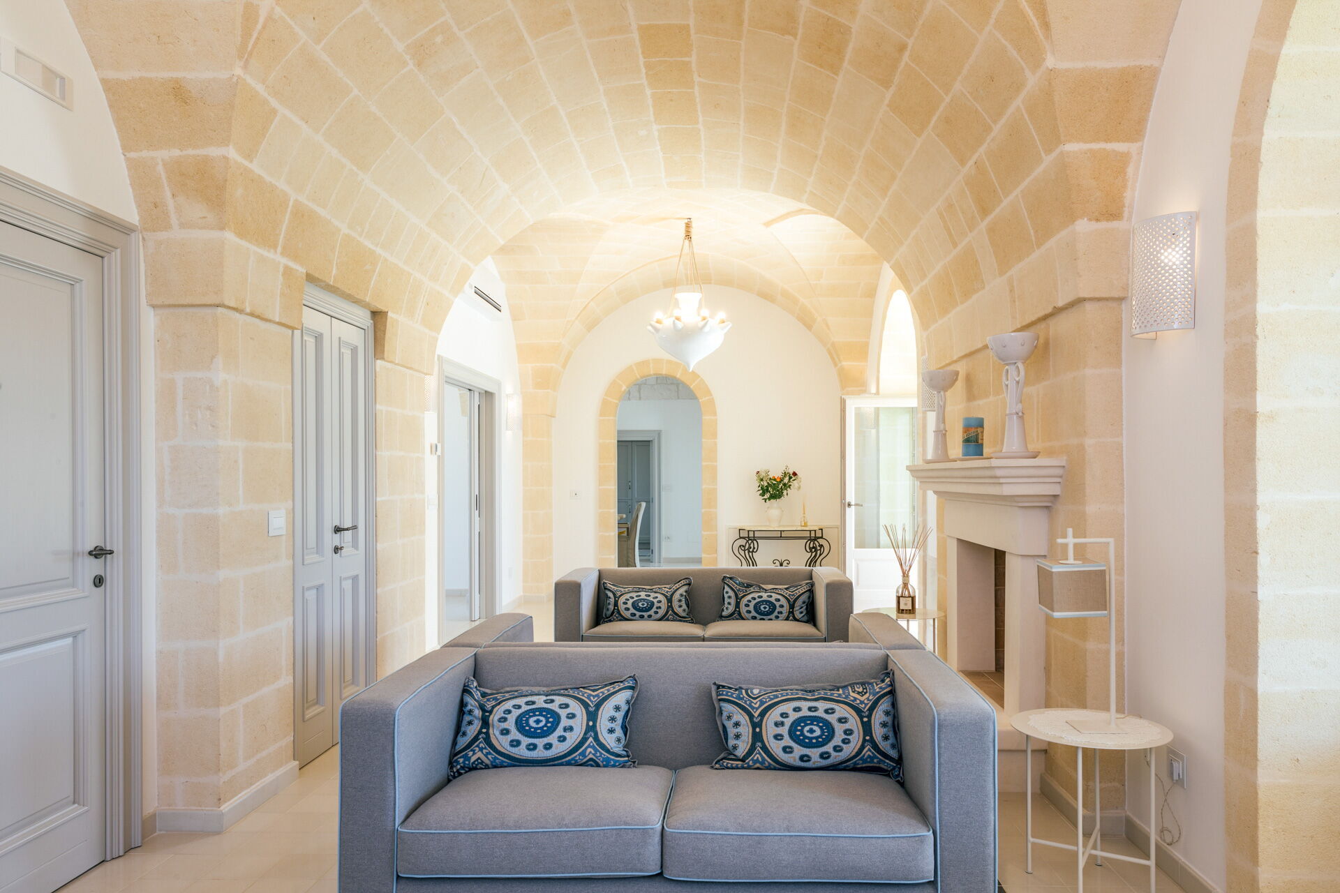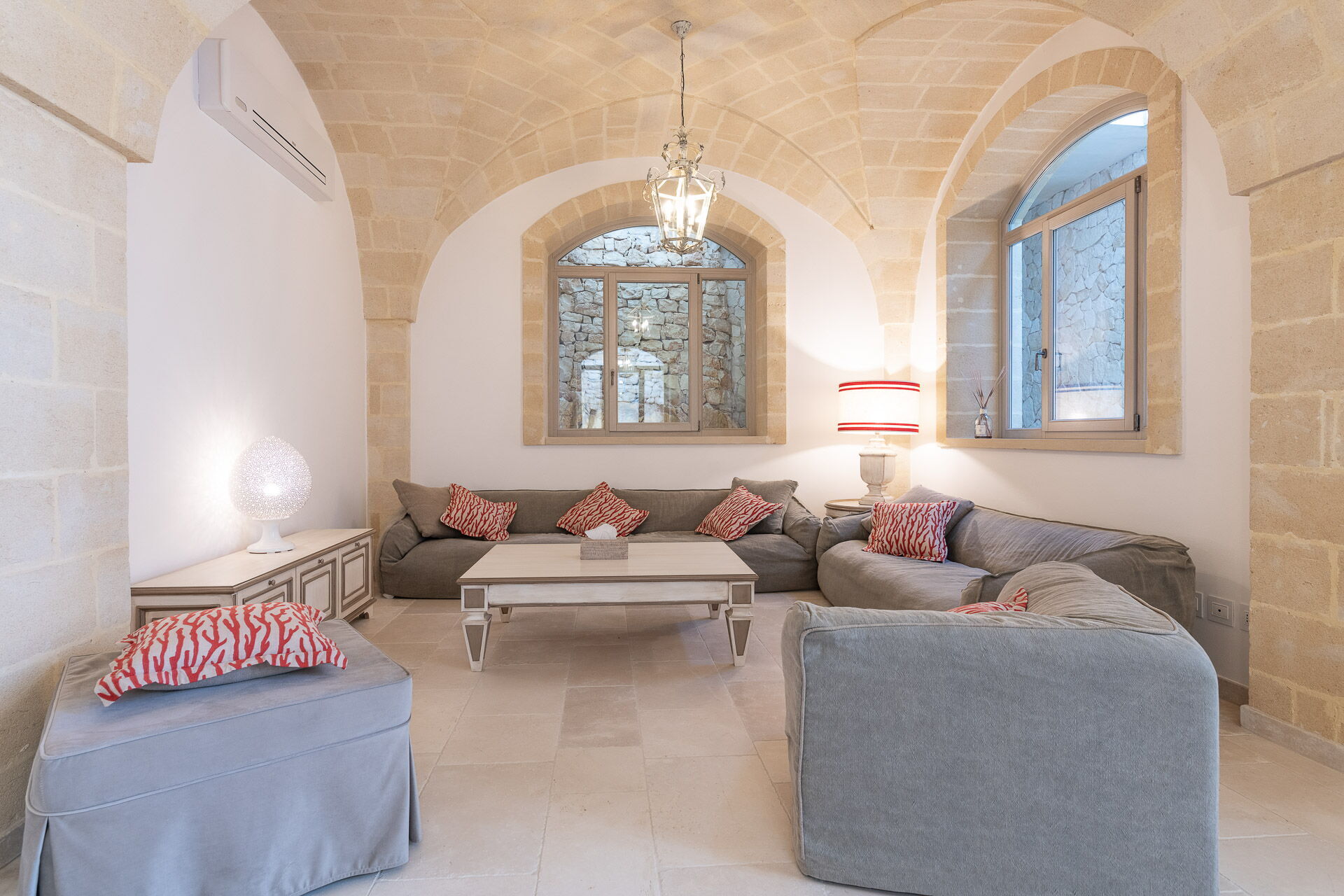 Het moderne interieur is goed ingericht, met tinten en stijl die zorgvuldig zijn gekozen om de kenmerken van de oude interne structuur te versterken. Het prachtige pand ligt in een goed onderhouden gazon van ongeveer 1 hectare, begrensd door een traditionele kalkmuur. In de grote tuin ligt een elegant zwembad (op aanvraag verwarmd) met ligstoelen en parasols. Een charmant stenen pad verbindt het met de villa.