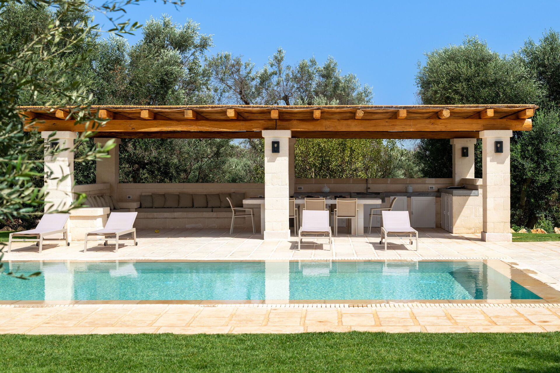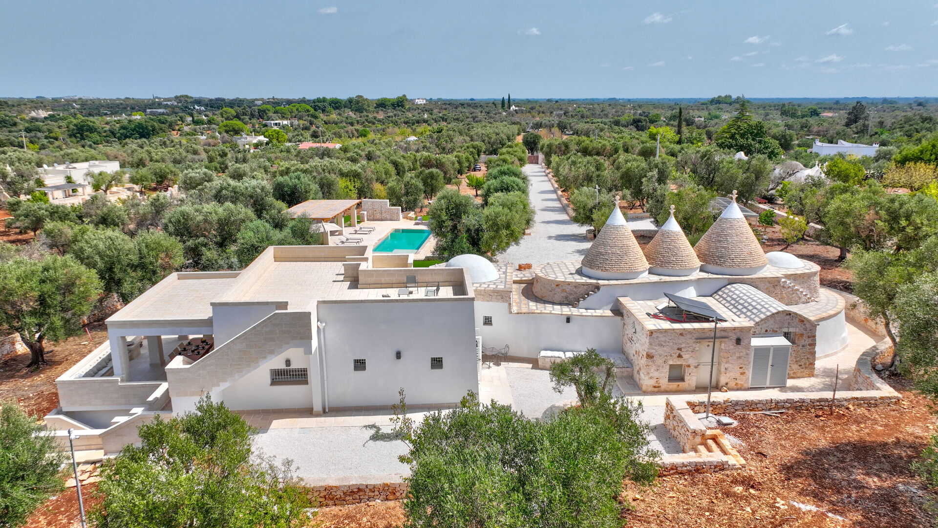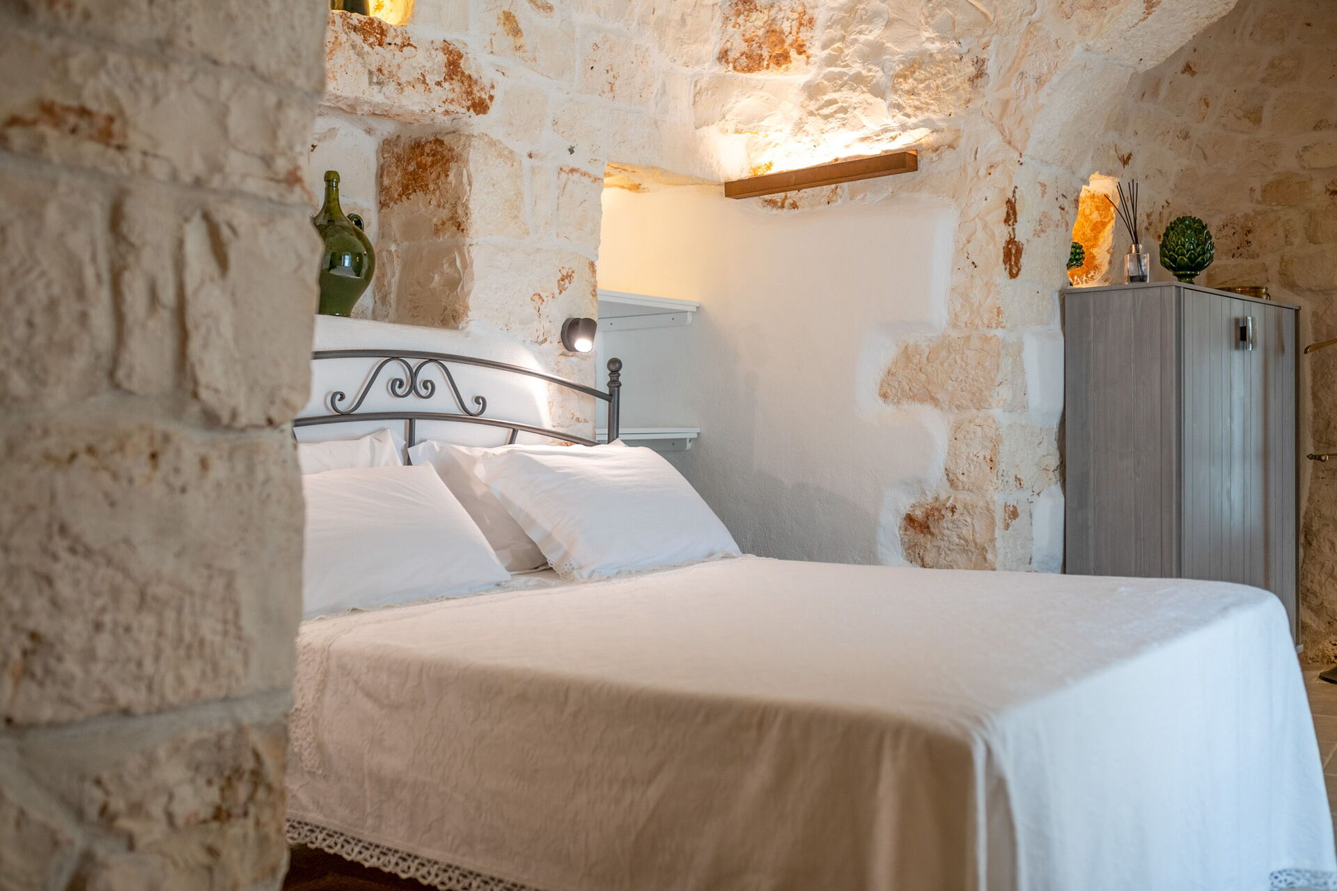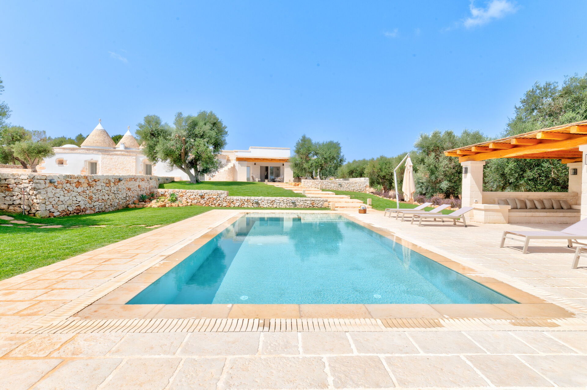 Trulli di Luccio is een trullo met privézwembad te huur voor vakanties in Puglia, op het platteland van de beroemde "witte stad" Ostuni. Dit karakteristieke traditionele Apulische verblijf ligt midden in een prachtige landelijke omgeving tussen eeuwenoude olijfbomen; als u op zoek bent naar een vakantie vol rust en natuur, dan is dit pand perfect voor u. Binnen is het smaakvol en met eenvoud ingericht, waarbij een contrast is gecreëerd tussen de klassieke stijl en traditionele materialen zoals lokale steen en hout. De gezellige ruimtes zijn van alle gemakken voorzien en bieden plaats aan maximaal 6 personen dankzij de 3 slaapkamers. Buiten beschikt het pand, naast een prachtig zwembad voor exclusief gebruik, over grote ruimtes om buiten van uw vakantie te genieten: een grote veranda bij het zwembad met buitenkeuken, barbecue en een fijne ontspanningsruimte staan volledig ter beschikking van de gasten. Trulli di Luccio is strategisch gelegen op slechts 8 km van de prachtige stad Ostuni en door deze villa te huren kunt u gemakkelijk de belangrijkste toeristische bestemmingen in de omgeving verkennen: van de stranden van Baia dei Camerini tot het natuurreservaat Torre Guaceto en beroemde historische centra zoals Alberobello, Locorotondo, Carovigno en Polignano a Mare.