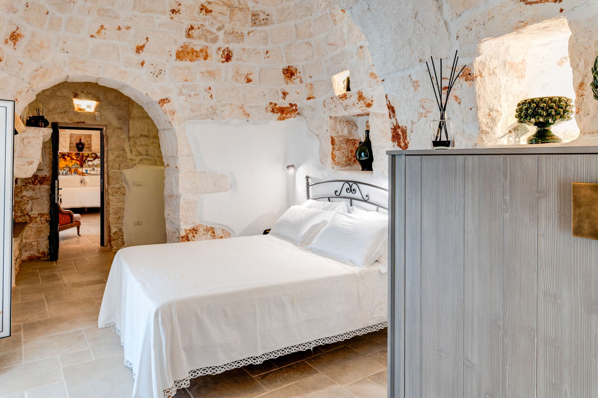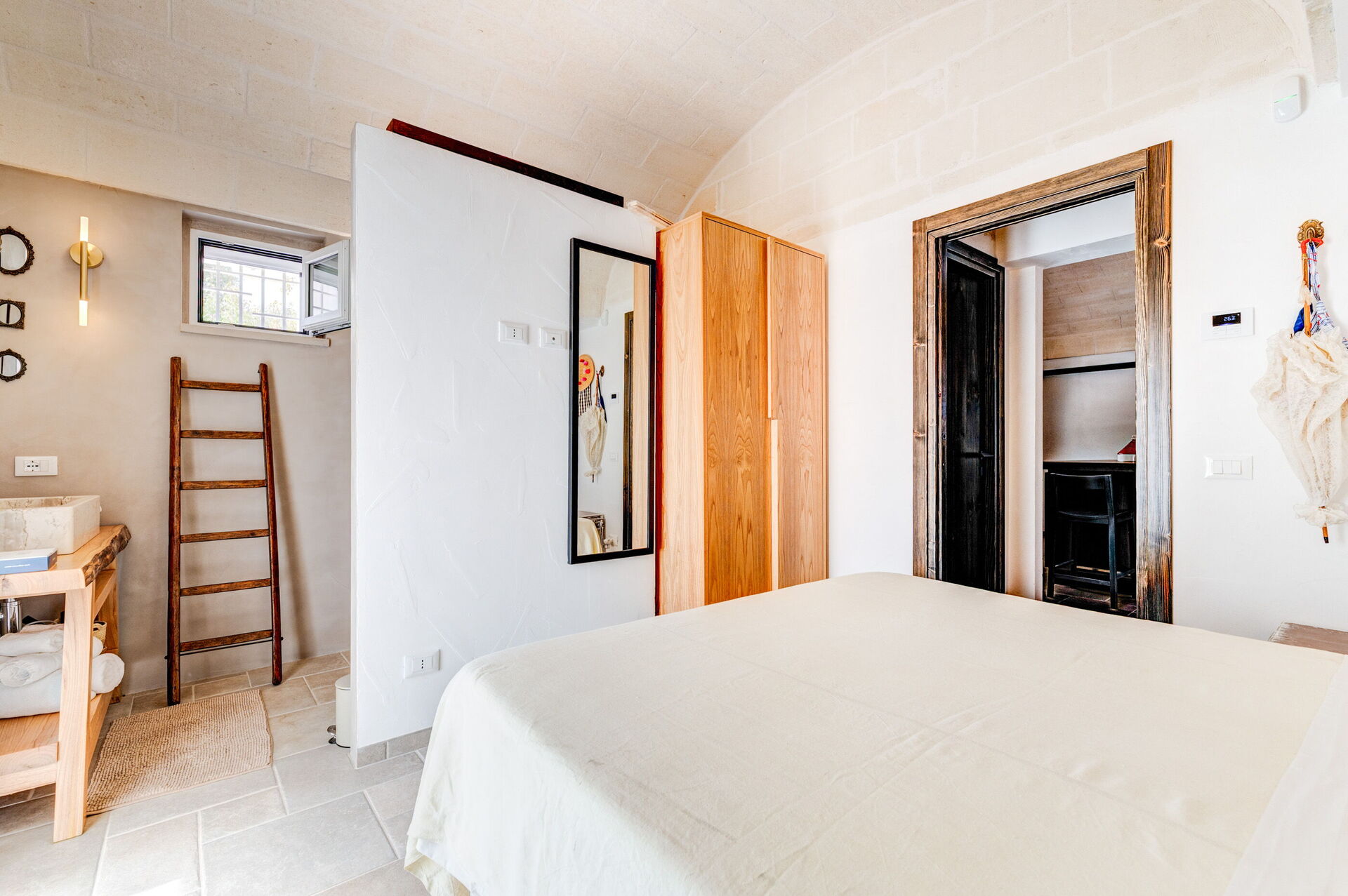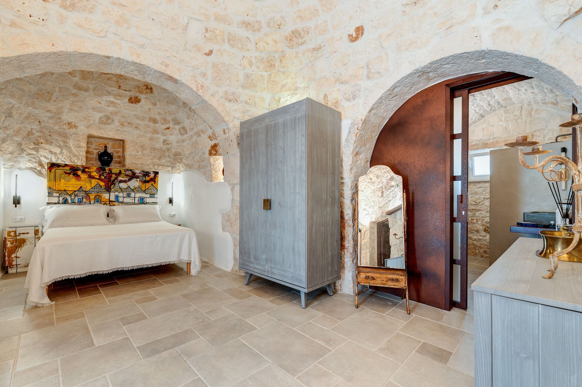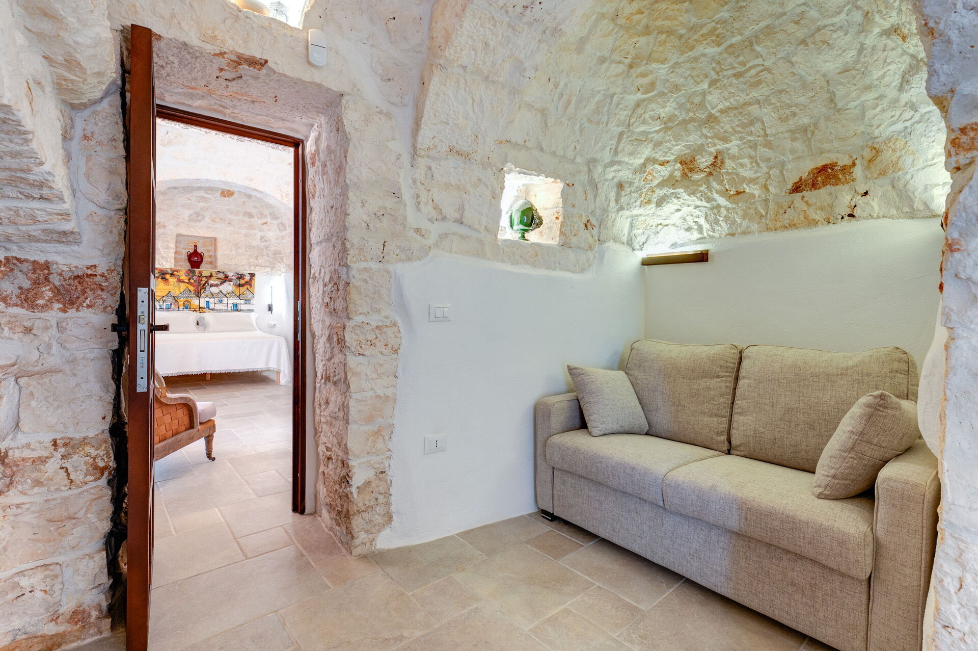 Trulli di Luccio is een trullo met privézwembad te huur voor vakanties in Puglia, op het platteland van de beroemde "witte stad" Ostuni. Dit karakteristieke traditionele Apulische verblijf ligt midden in een prachtige landelijke omgeving tussen eeuwenoude olijfbomen; als u op zoek bent naar een vakantie vol rust en natuur, dan is dit pand perfect voor u. Binnen is het smaakvol en met eenvoud ingericht, waarbij een contrast is gecreëerd tussen de klassieke stijl en traditionele materialen zoals lokale steen en hout. De gezellige ruimtes zijn van alle gemakken voorzien en bieden plaats aan maximaal 6 personen dankzij de 3 slaapkamers. Buiten beschikt het pand, naast een prachtig zwembad voor exclusief gebruik, over grote ruimtes om buiten van uw vakantie te genieten: een grote veranda bij het zwembad met buitenkeuken, barbecue en een fijne ontspanningsruimte staan volledig ter beschikking van de gasten. Trulli di Luccio is strategisch gelegen op slechts 8 km van de prachtige stad Ostuni en door deze villa te huren kunt u gemakkelijk de belangrijkste toeristische bestemmingen in de omgeving verkennen: van de stranden van Baia dei Camerini tot het natuurreservaat Torre Guaceto en beroemde historische centra zoals Alberobello, Locorotondo, Carovigno en Polignano a Mare.