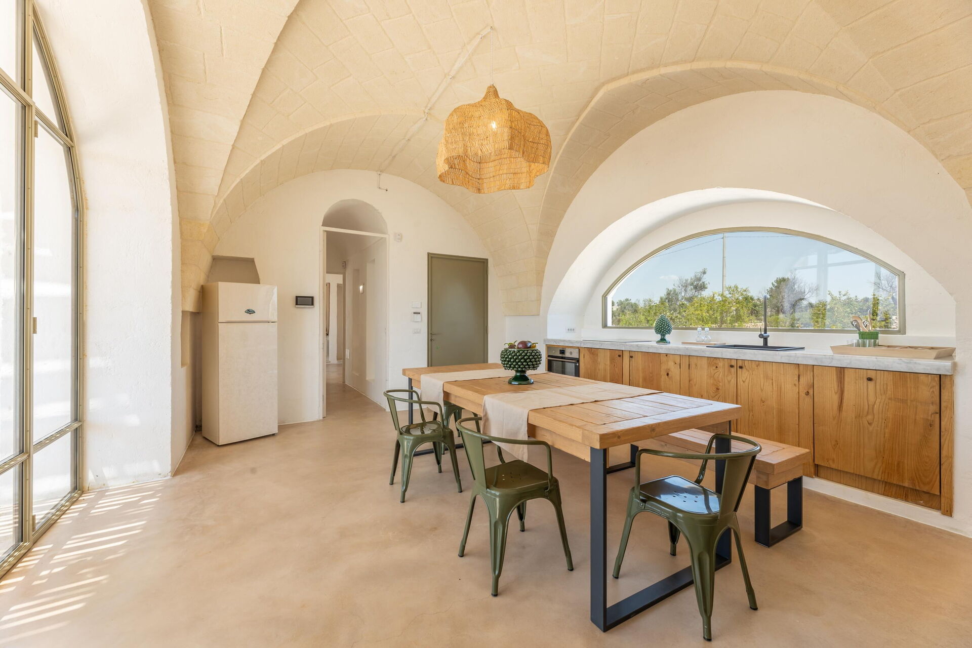 Het vakantiehuis heeft traditionele gewelfde plafonds en zichtbare stenen muren, die typerend zijn voor deze regio. Alle kamers zijn licht en uitgerust met alle moderne gemakken. Het huis is ingericht in een eenvoudige, moderne landelijke stijl.