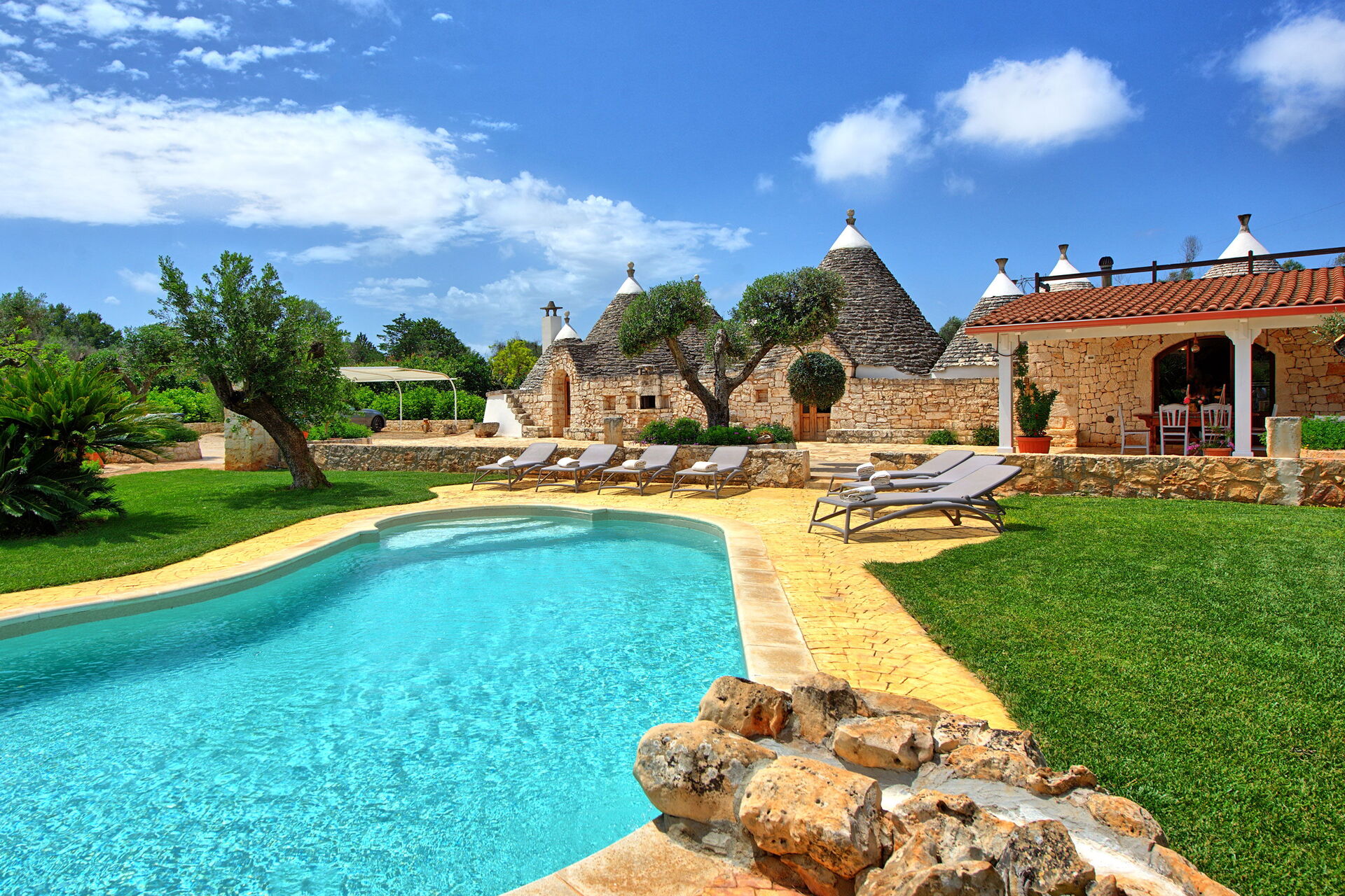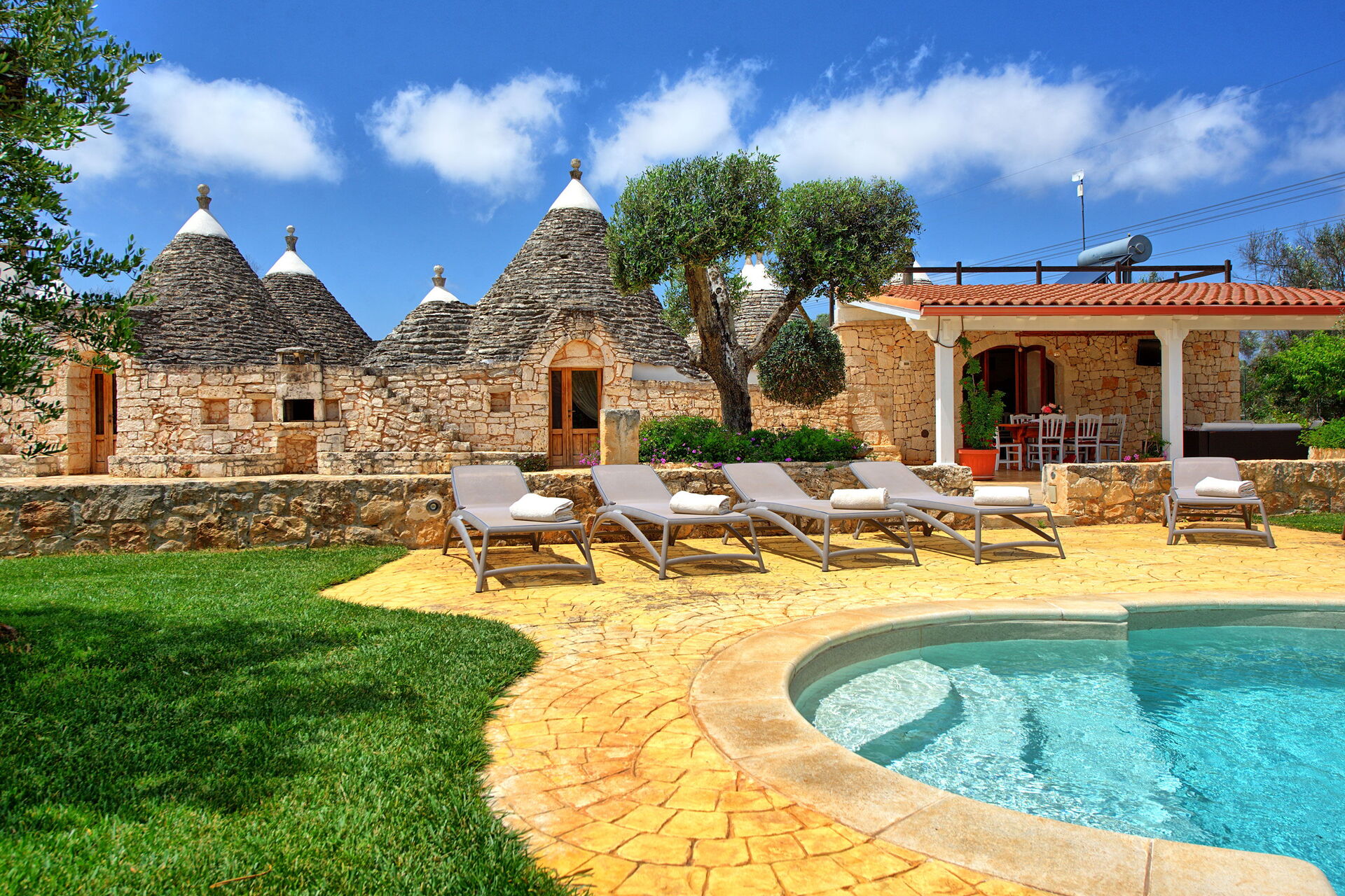 Karakteristieke Trullo, verbouwd als vakantieverblijf, in Puglia met privé zwembad en grote perfect onderhouden tuin; dit schitterende huis bestaat uit 11 kegelvormige daken, die binnen zijn verbonden teneinde één karakteristiek huis van 145m2 met 4 slaapkamers te creëren.
