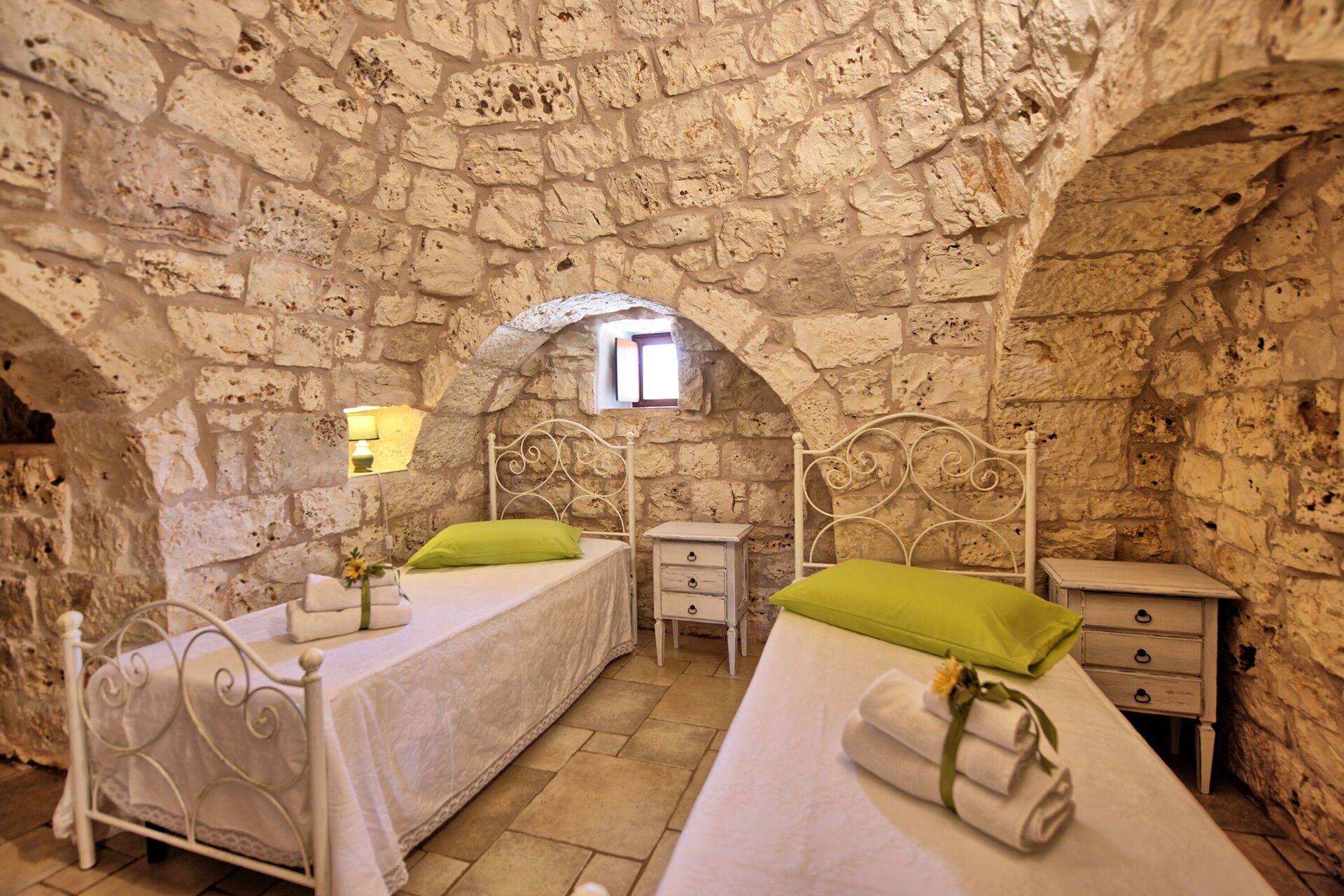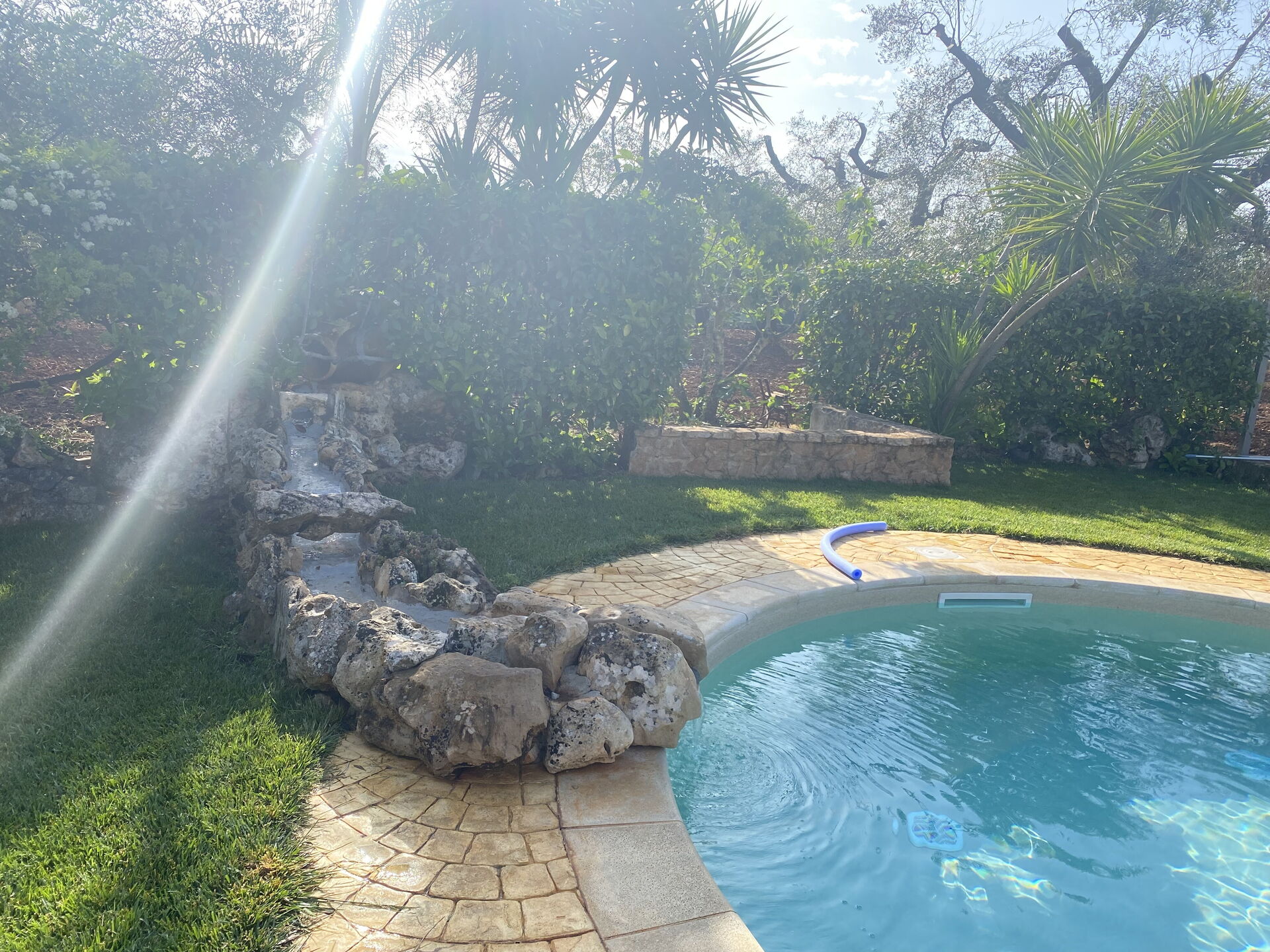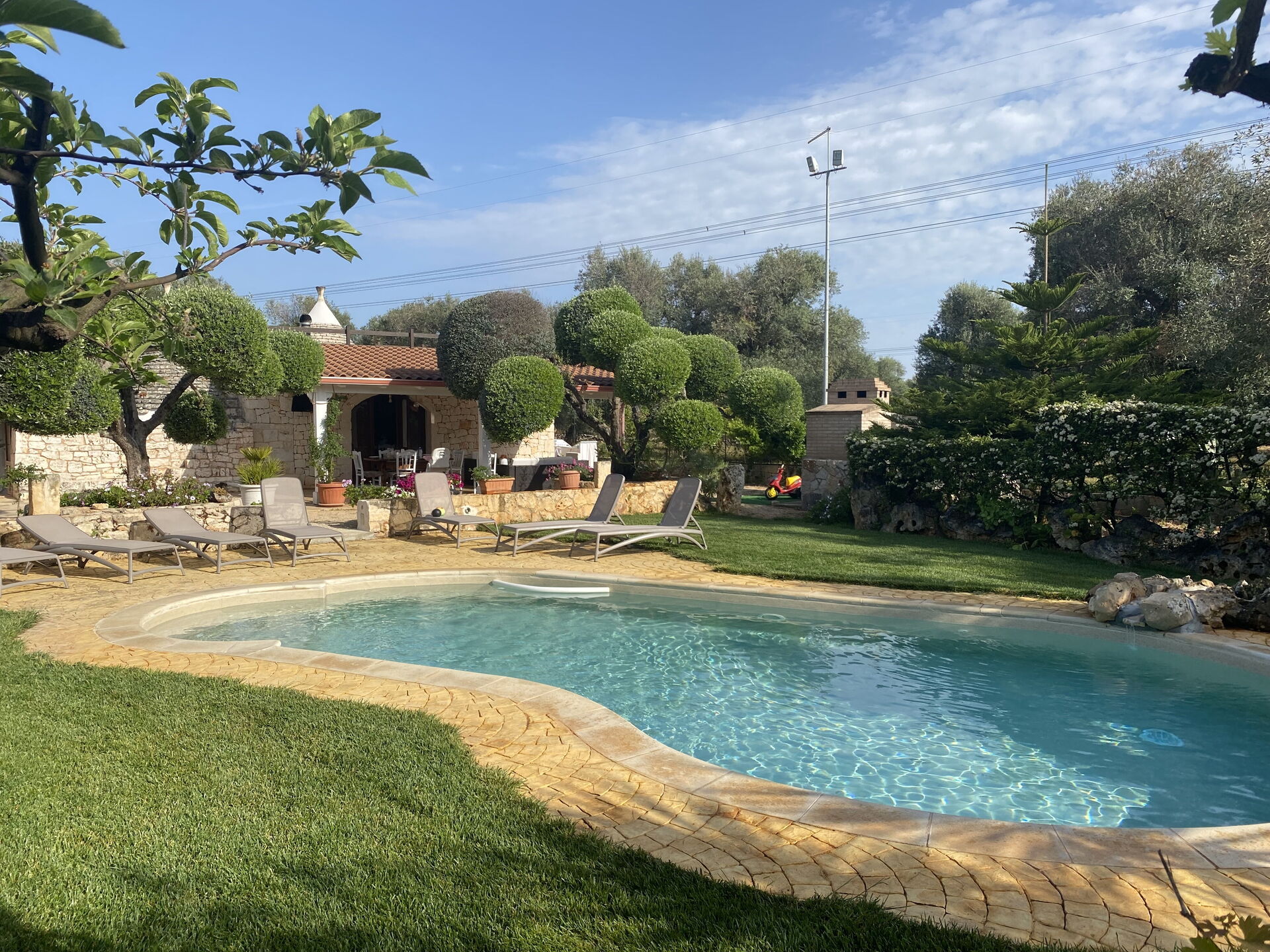 Den Gästen dieses einzigartigen Trullo steht zur Verfügung: 3 Schlafzimmer und 2 Bäder für 6/7 Personen. Ausgestatteter und eingezäunter Garten. Klimaanlage in jedem Schlafzimmer und in den Wohnzimmern. Privates Schwimmbad zum exklusiven Gebrauch der Gäste. Aussendusche neben dem Schwimmbad, Überdachte und ausgestattete Terrasse mit Tisch, Stühlen, TV, Barbecue und Holzofen. Internetzugang (W-LAN) gratis. Parkplatz