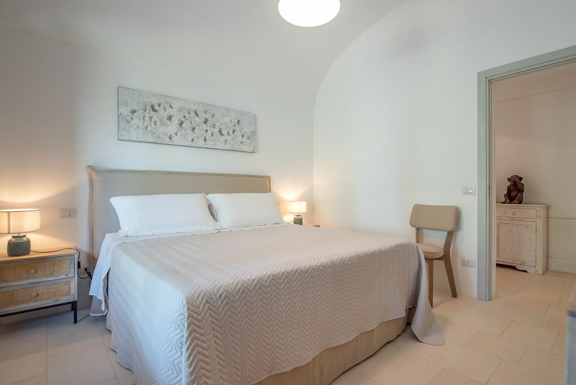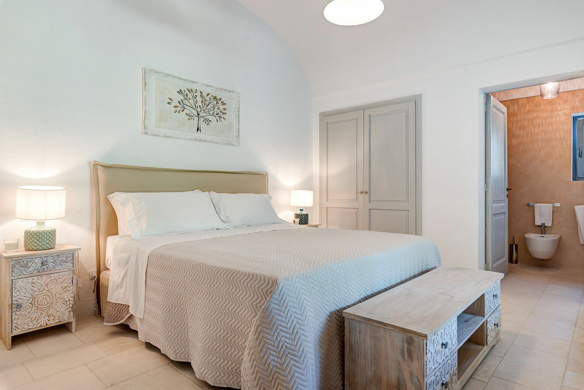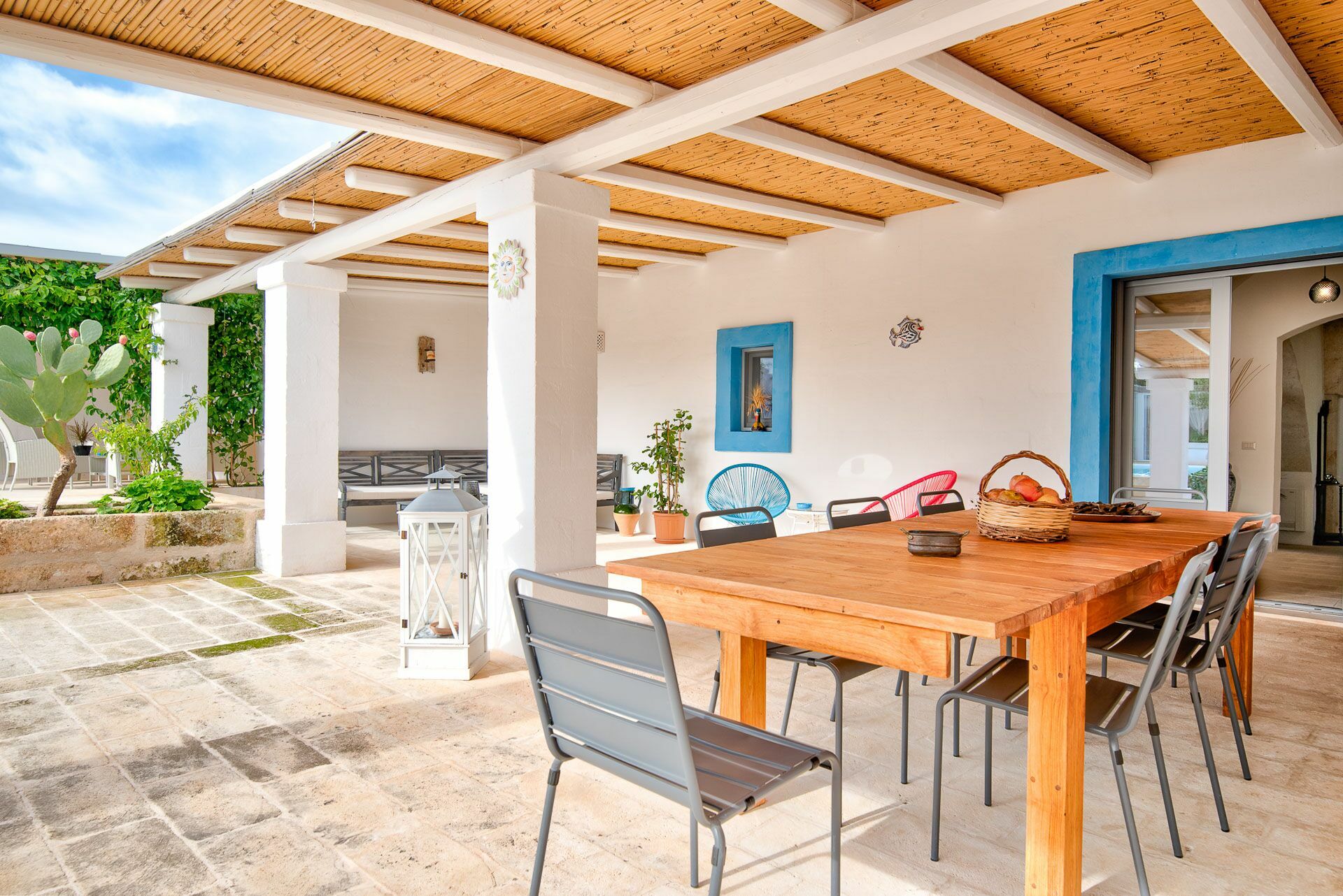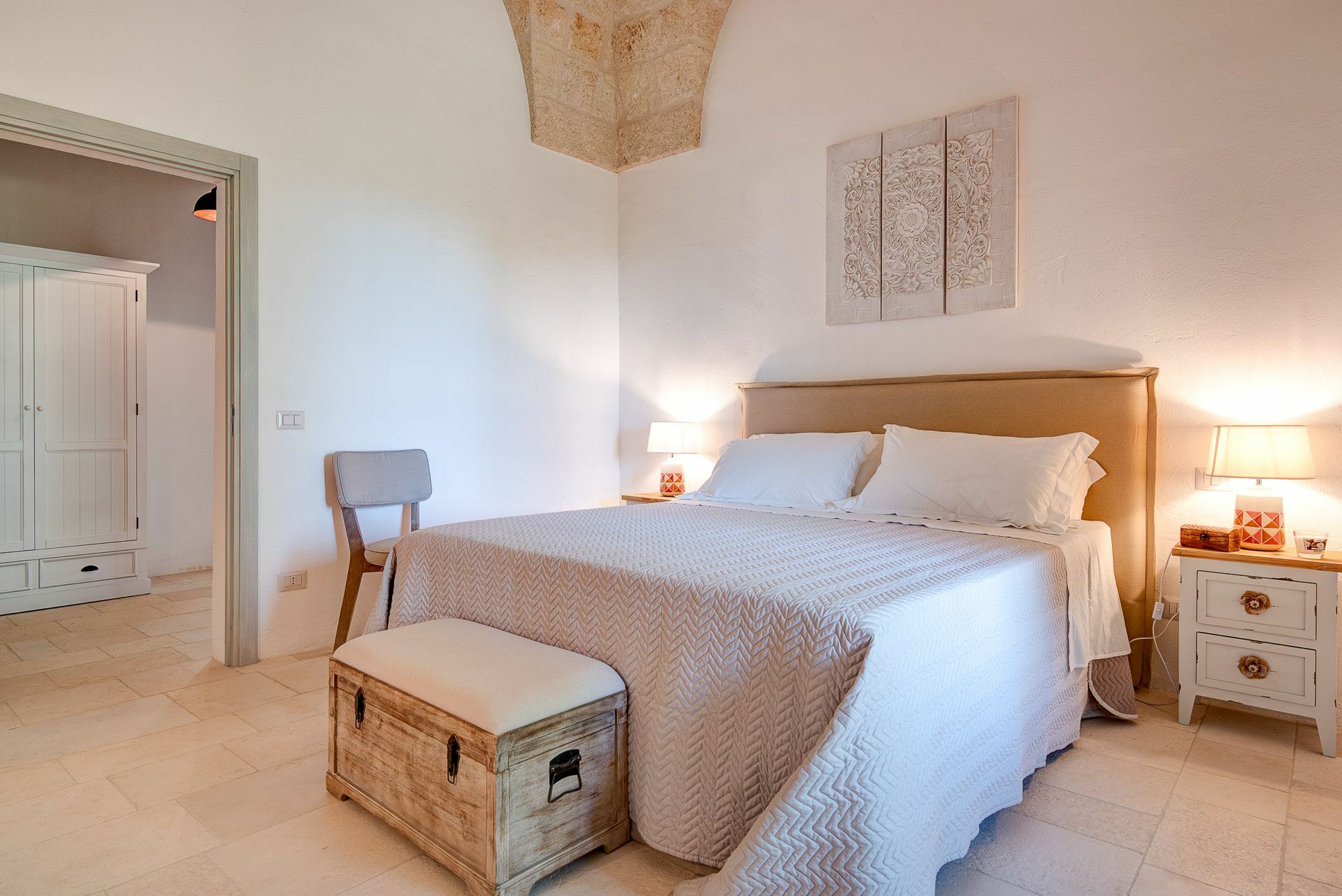 Het interessante interieur van de vakantiewoning is een perfecte mix van hedendaags design en landelijke architectuur. Met uitnodigende, functionele ruimtes en 5 tweepersoonsslaapkamers is de villa geschikt voor maximaal 10 personen. Het interieur is licht en goed verdeeld: dankzij de grote woonruimtes met gewelfde plafonds van tufsteen staan zelfs regenachtige dagen het genieten van tijd samen met vrienden en familie niet in de weg.