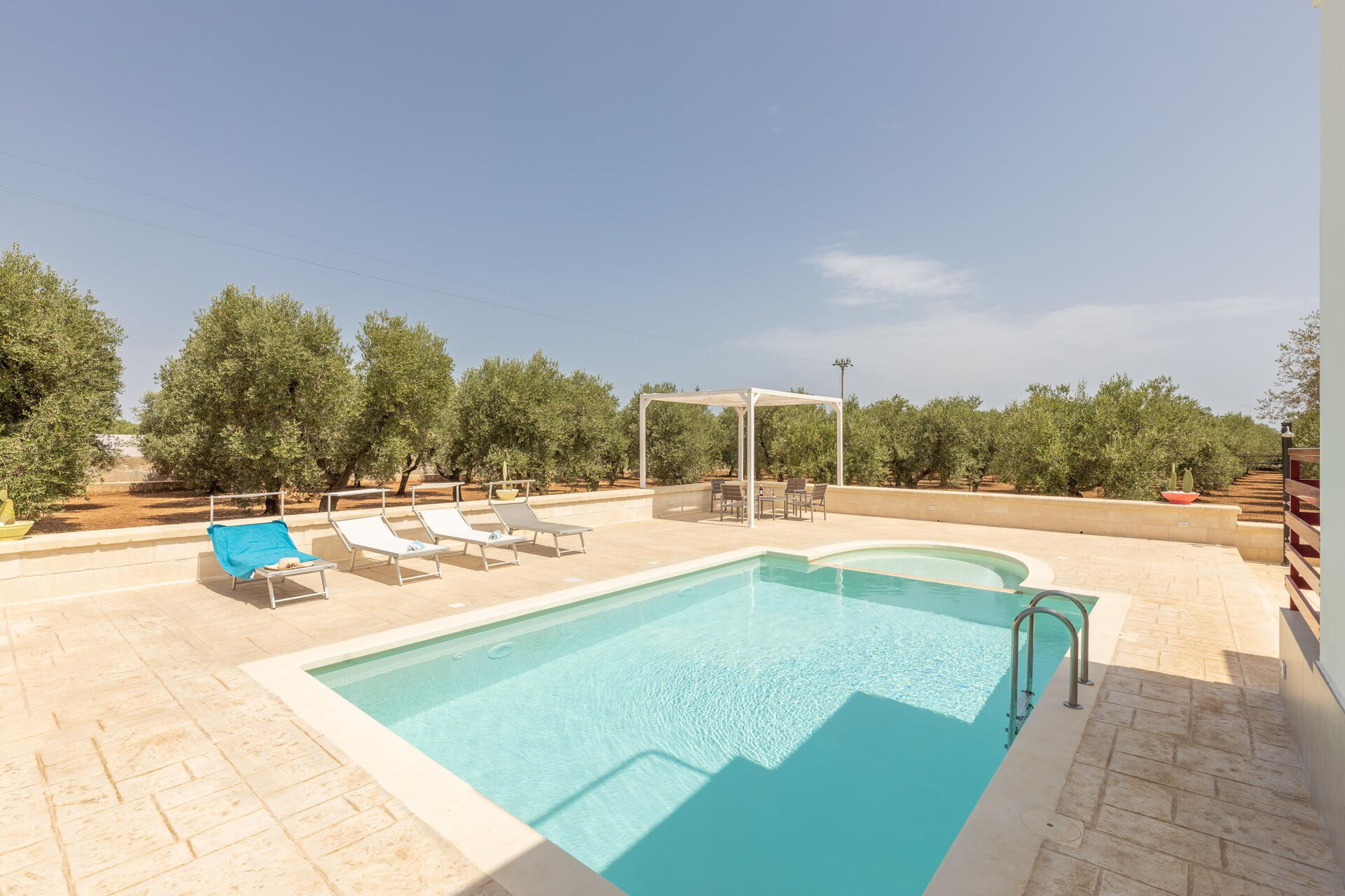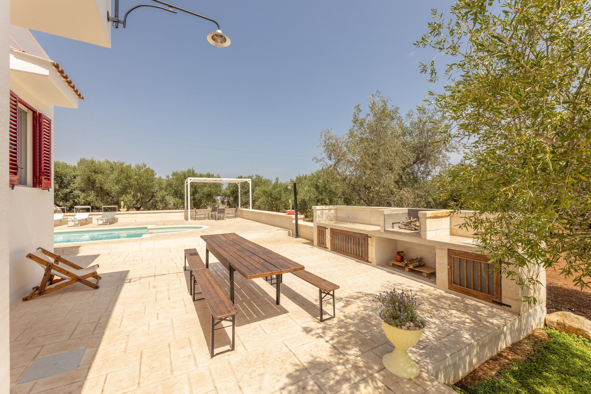 De schilderachtige buitenruimtes hebben tal van gemeubileerde ruimtes waar u tijd kunt doorbrengen met familie of vrienden. Eet buiten terwijl u geniet van een fantastisch uitzicht op de olijfbomen, of ontspan bij het zwembad of op de ligweide. Ter beschikking van de gasten is er ook een tuin met eeuwenoude olijfbomen en mediterraan struikgewas.