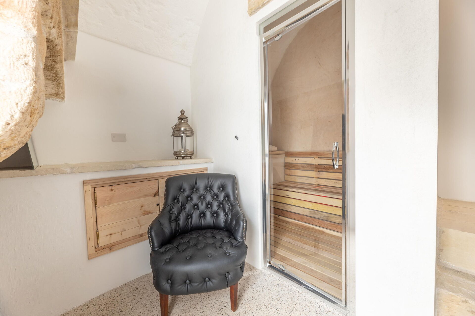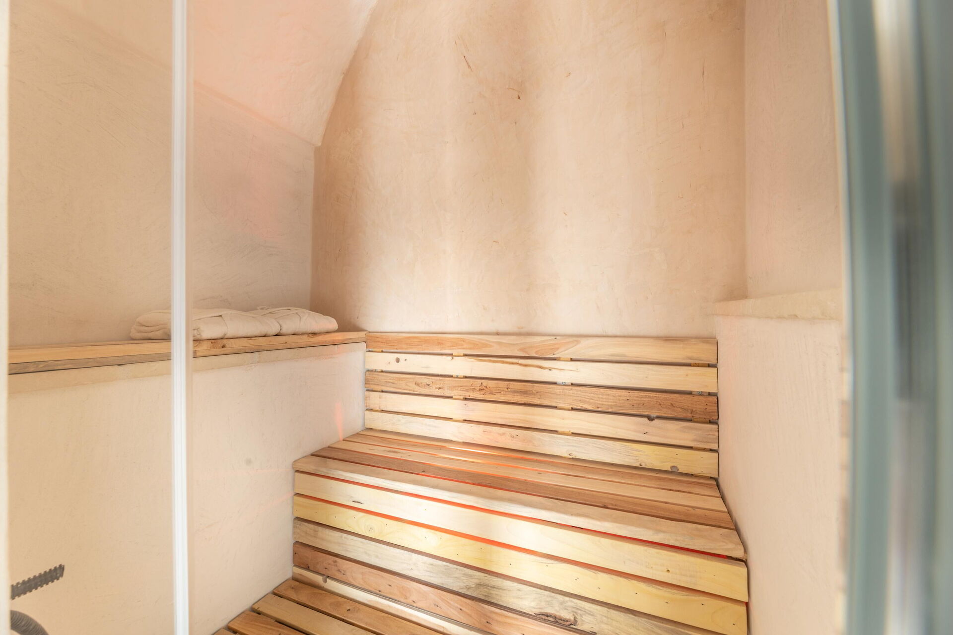 Ontspannen is eigenlijk waar het in deze woning om draait: naast het privézwembad is er ook een kleine sauna.