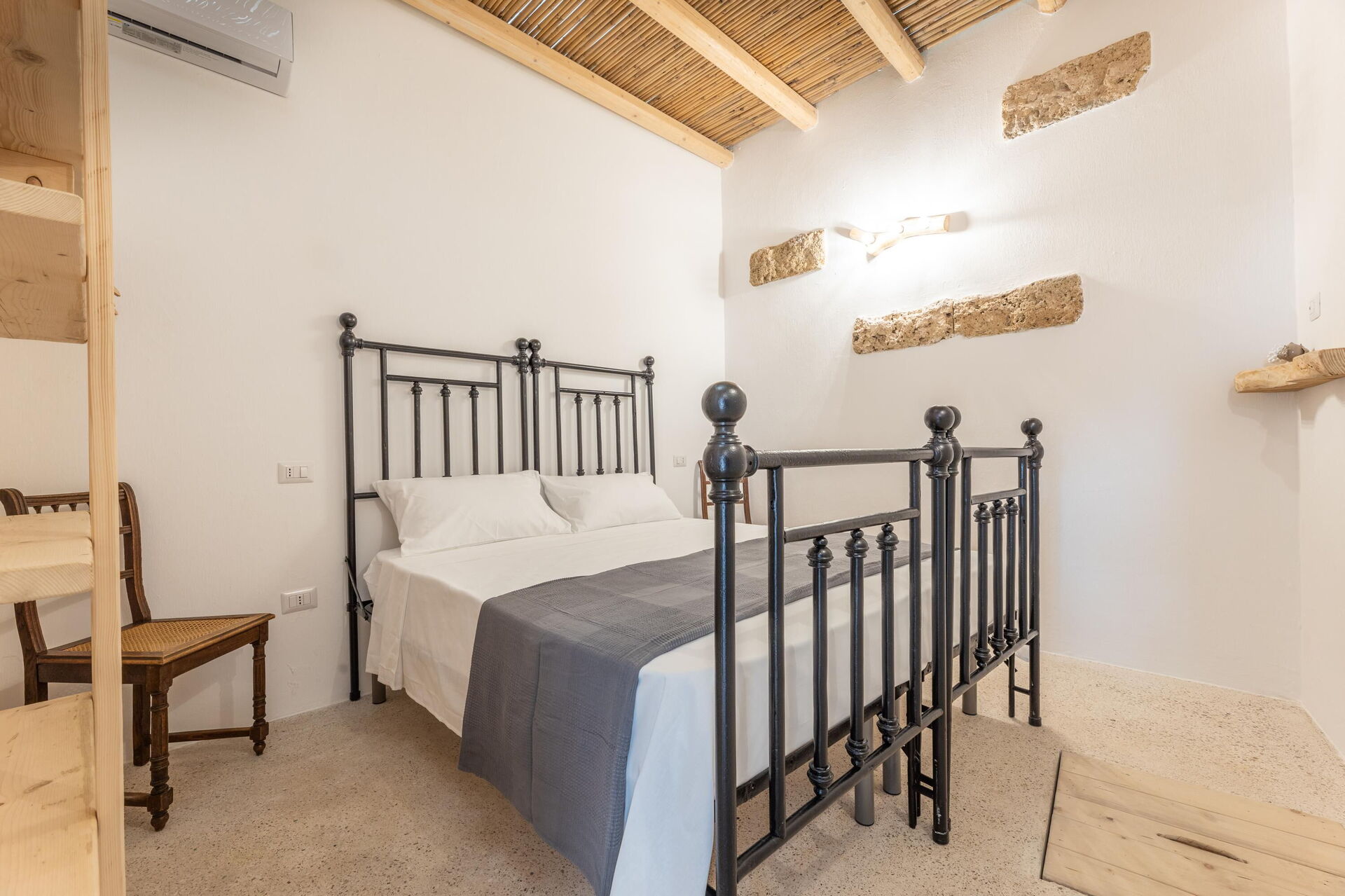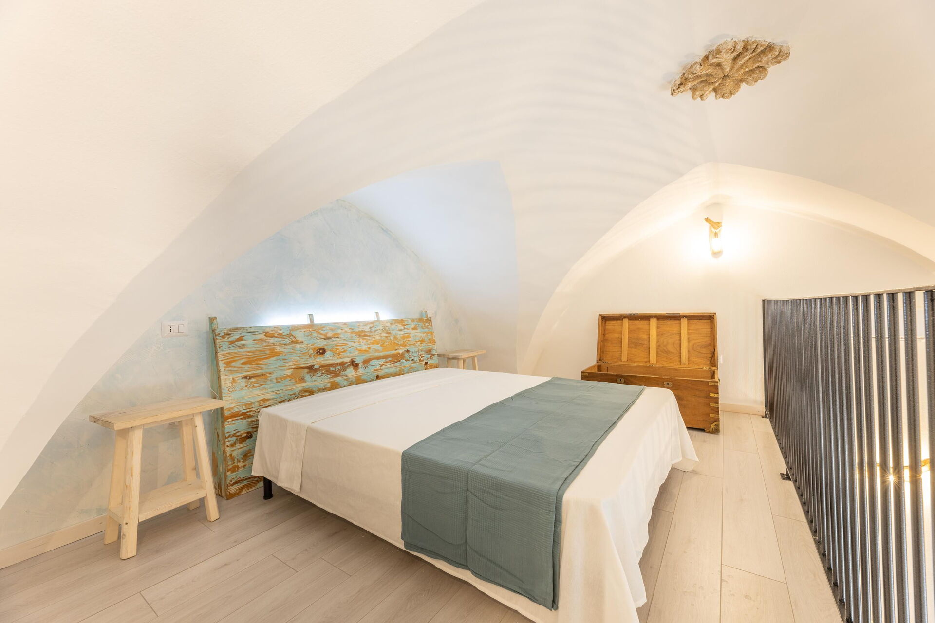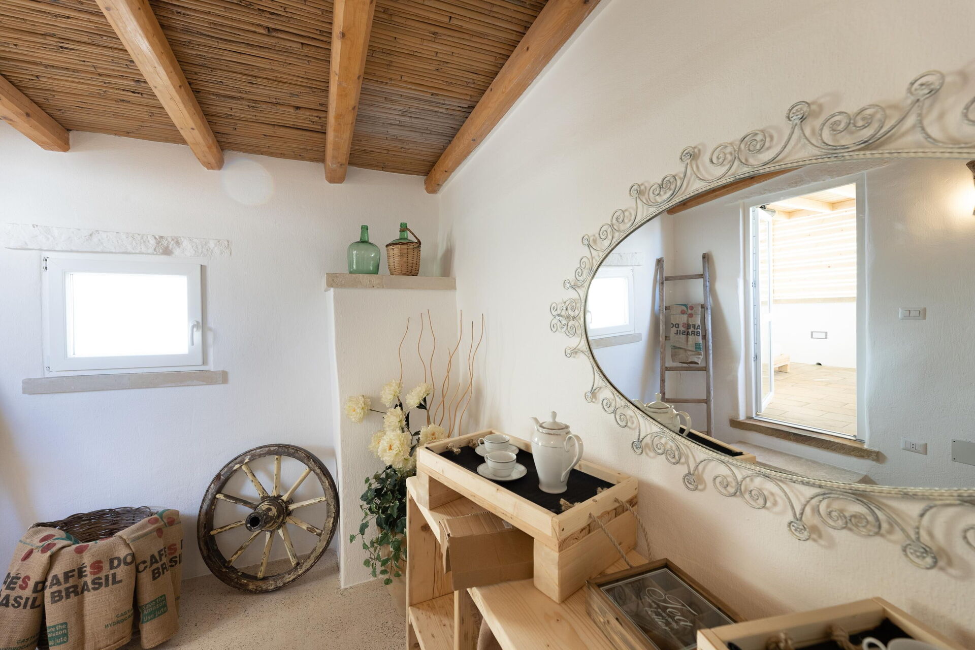 Het interieur van deze vakantiewoning in Puglia is voorzien van hout en steen, traditionele materialen uit Salento. De witte kleur, gewelfde plafonds en stenen aan de muur geven je het gevoel dat je in een traditioneel landhuis bent, ook al ben je midden in het stadscentrum.