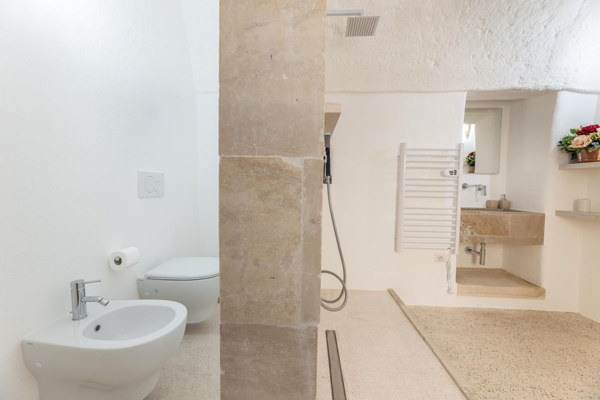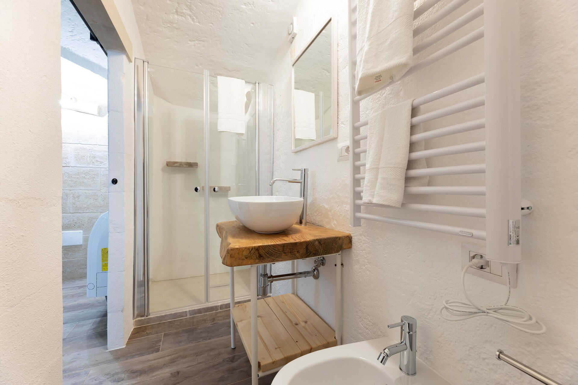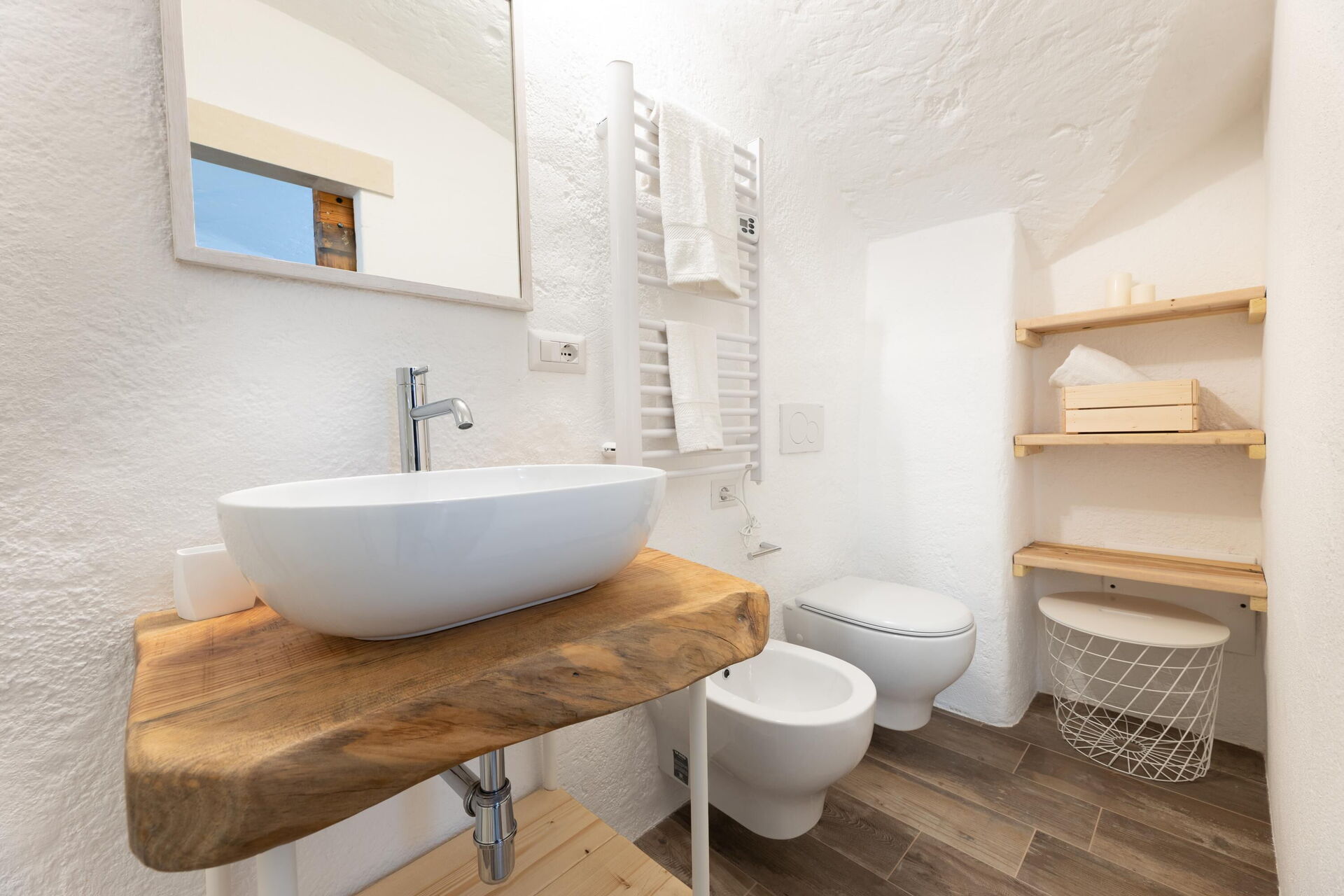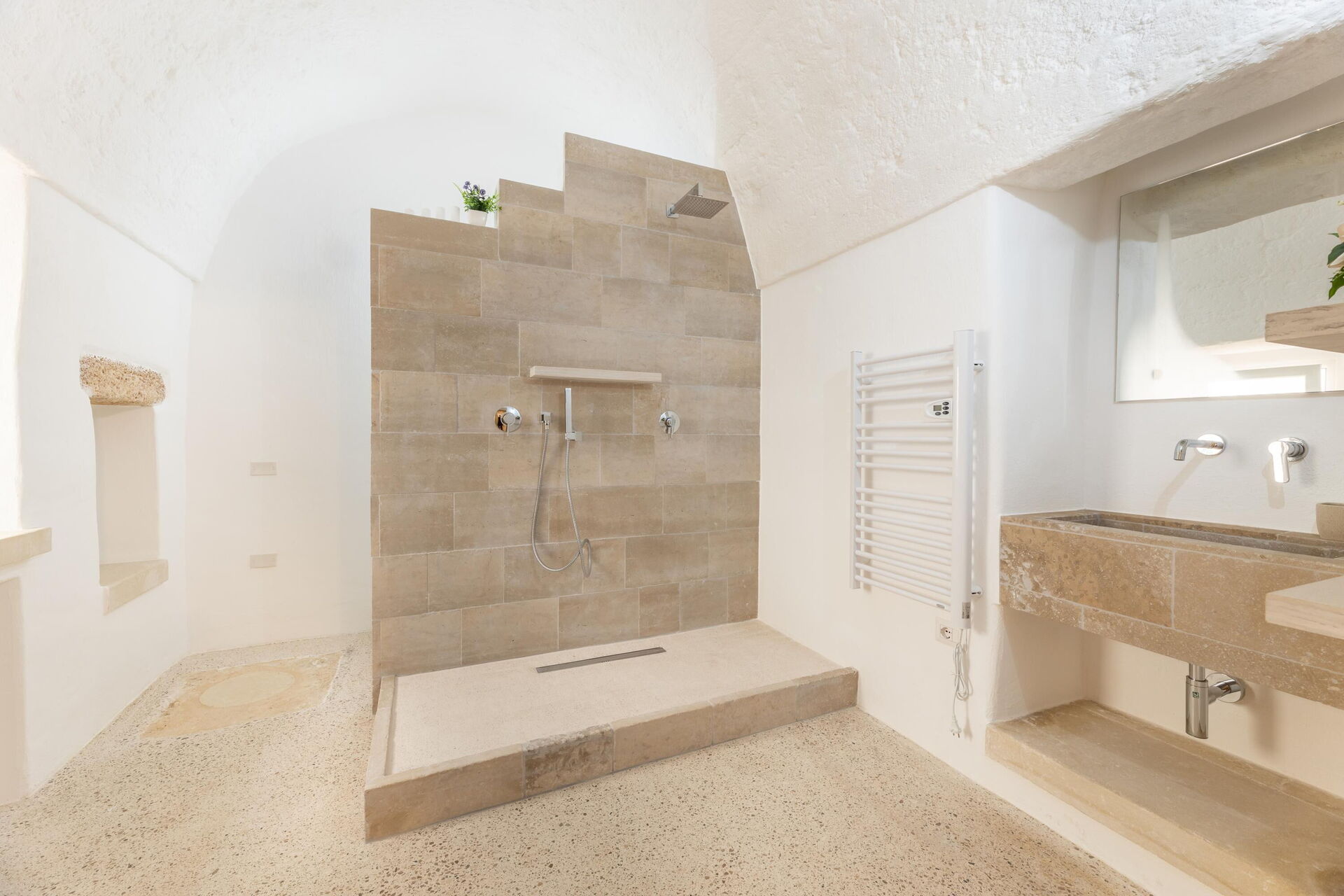 Het interieur van deze vakantiewoning in Puglia is voorzien van hout en steen, traditionele materialen uit Salento. De witte kleur, gewelfde plafonds en stenen aan de muur geven je het gevoel dat je in een traditioneel landhuis bent, ook al ben je midden in het stadscentrum.
