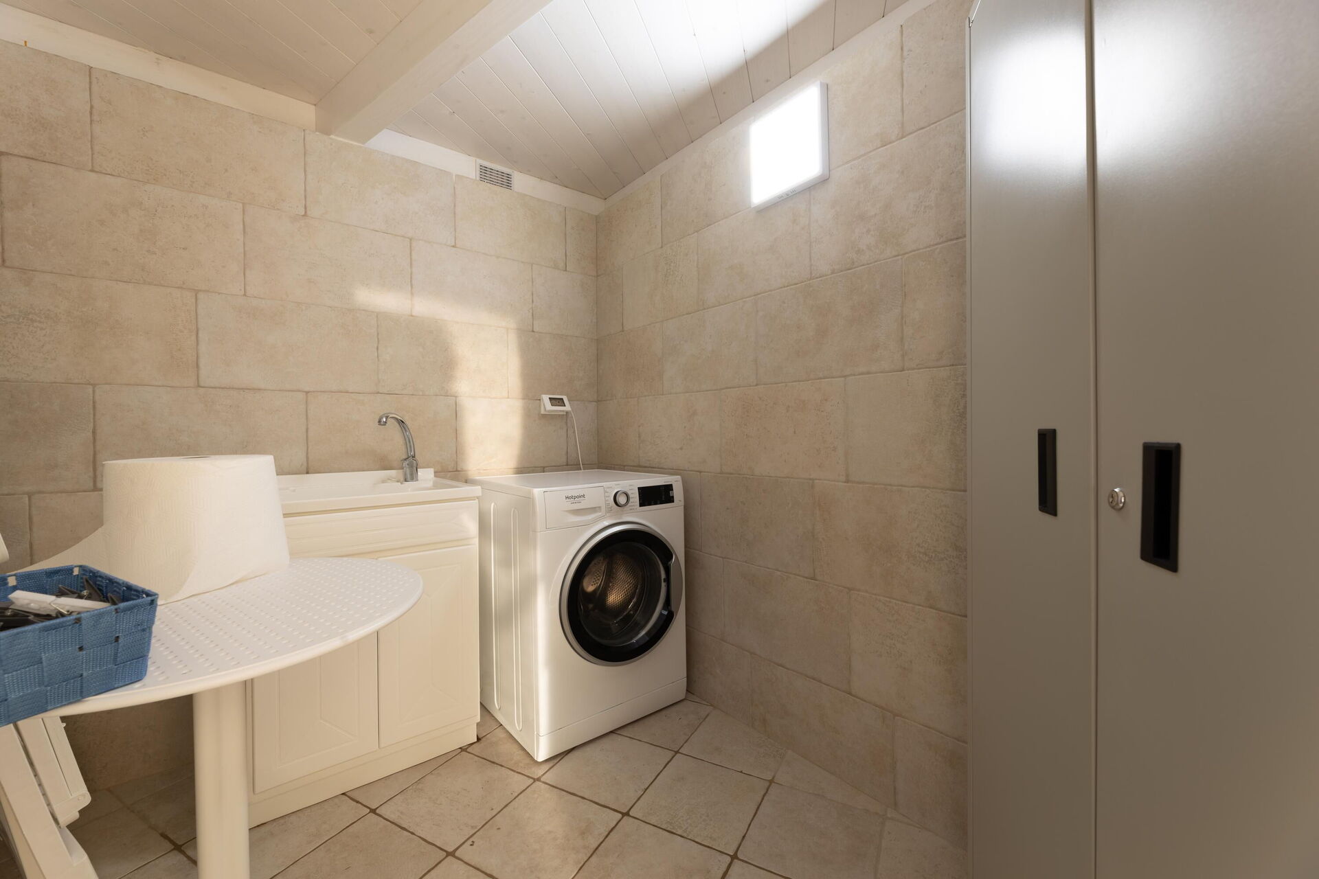 Begane grond: wasruimte met wasmachine.