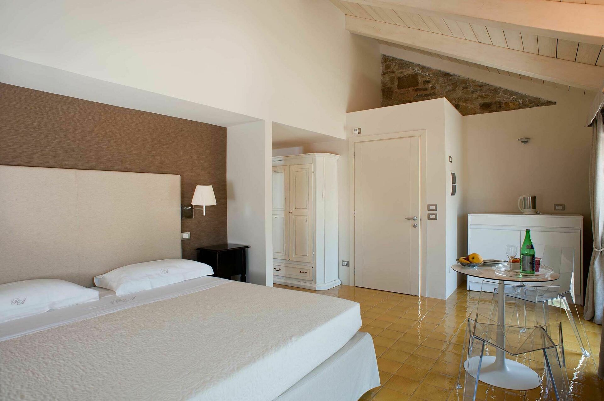 Dankzij een zorgvuldige restauratie die is uitgevoerd met behulp van traditionele technieken en materialen, biedt het verfijnde interieurs die de charme van weleer perfect combineren met modern comfort. Naast de acht luxe slaapkamers, allemaal met kitchenette en ensuite badkamer, hebben gasten die de hele villa huren ook de beschikking over een ruime woon/eetkamer, een heerlijke keuken met open haard, mooie panoramische terrassen en het zwembad.