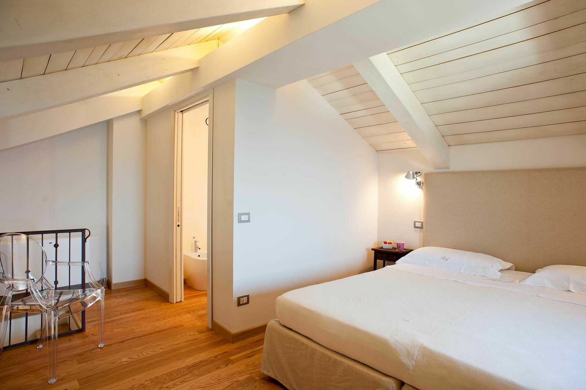 Eerste verdieping: 1 suite met woonkamer, tweepersoonsbed, en-suite badkamer met douche en vide met 2 eenpersoonsbedden met badkamer met ligbad, 1 suite met woonkamer, eenpersoonsslaapbank, en-suite badkamer met douche, terras en loft met een tweepersoonsbed en badkamer, 1 tweepersoonskamer met en-suite badkamer met douche, 1 tweepersoonskamer met en-suite badkamer met douche en terras.