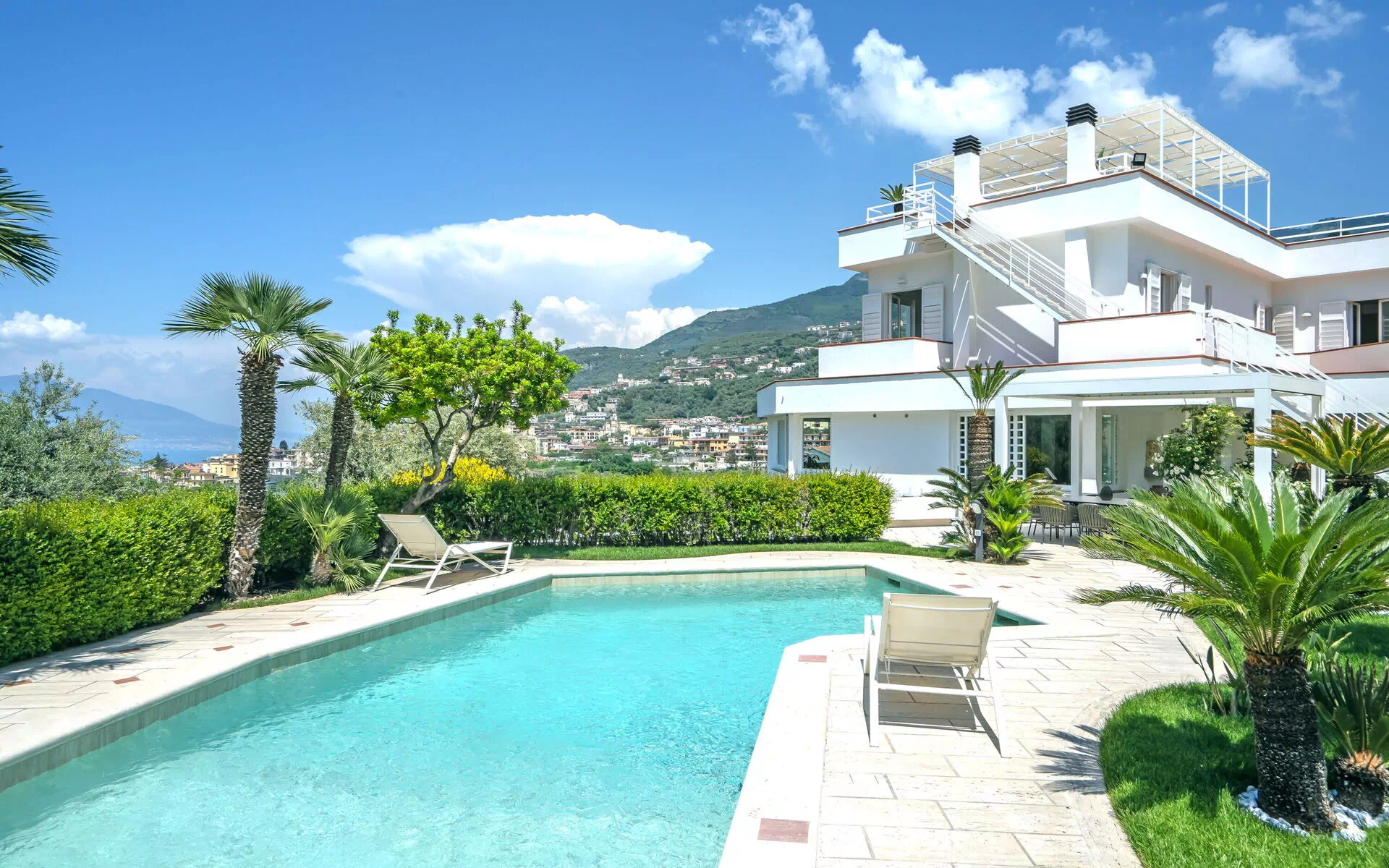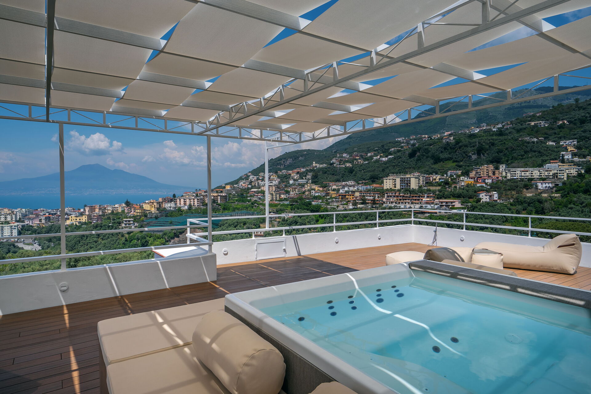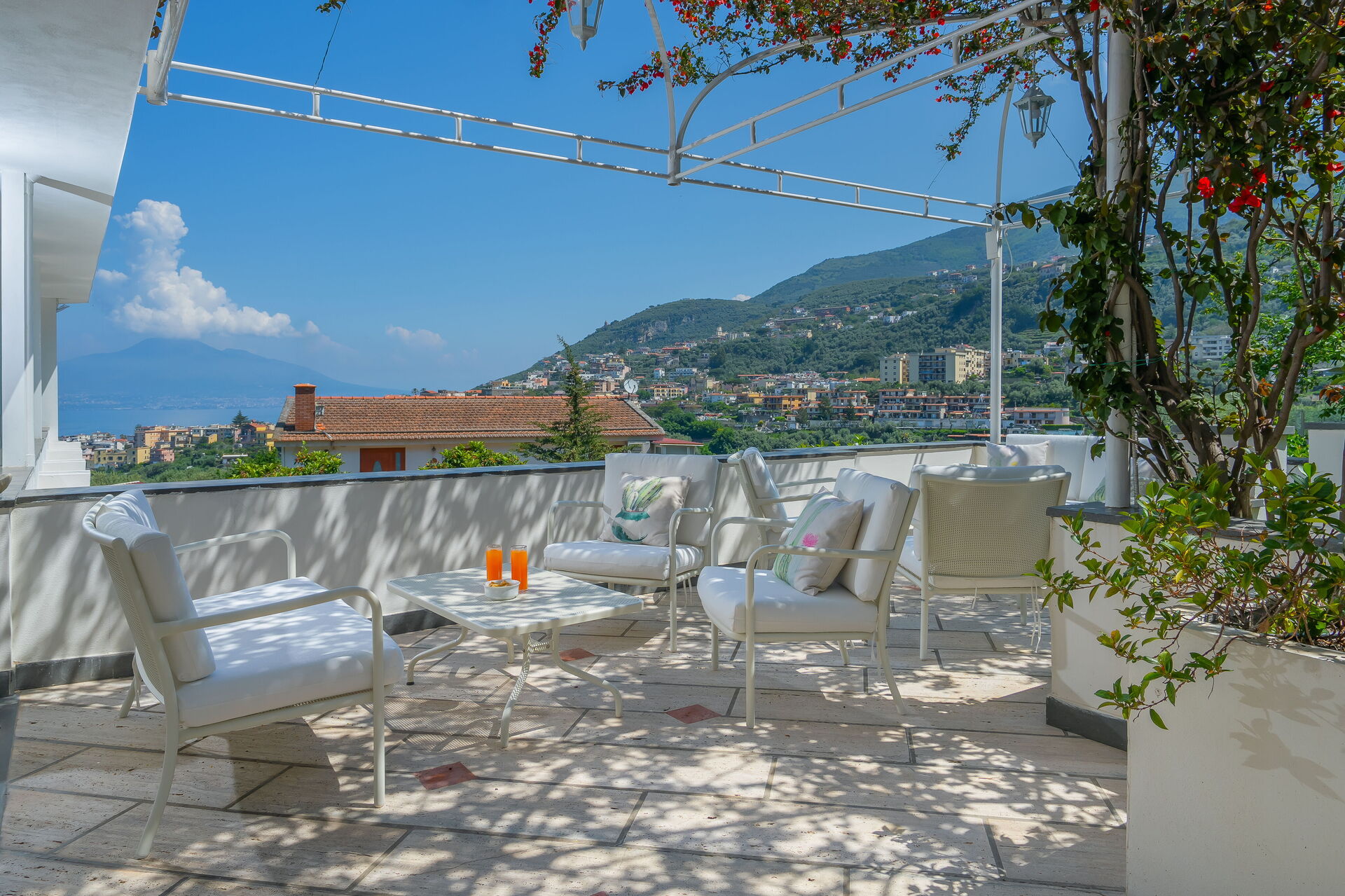 Vanuit deze elegante villa aan de kust van Amalfi kunt u de Golf van Napels en de prachtige Vesuvius bewonderen, en dicht bij enkele van de beroemdste en mooiste plekken ter wereld, zoals Sorrento, Positano en Amalfi. De stad Seiano, met allerlei winkels, ligt op minder dan 1 km afstand. De zee en de handige "Circumvesuviana"-spoorlijn die Napels en Sorrento verbindt, zijn net zo dichtbij.