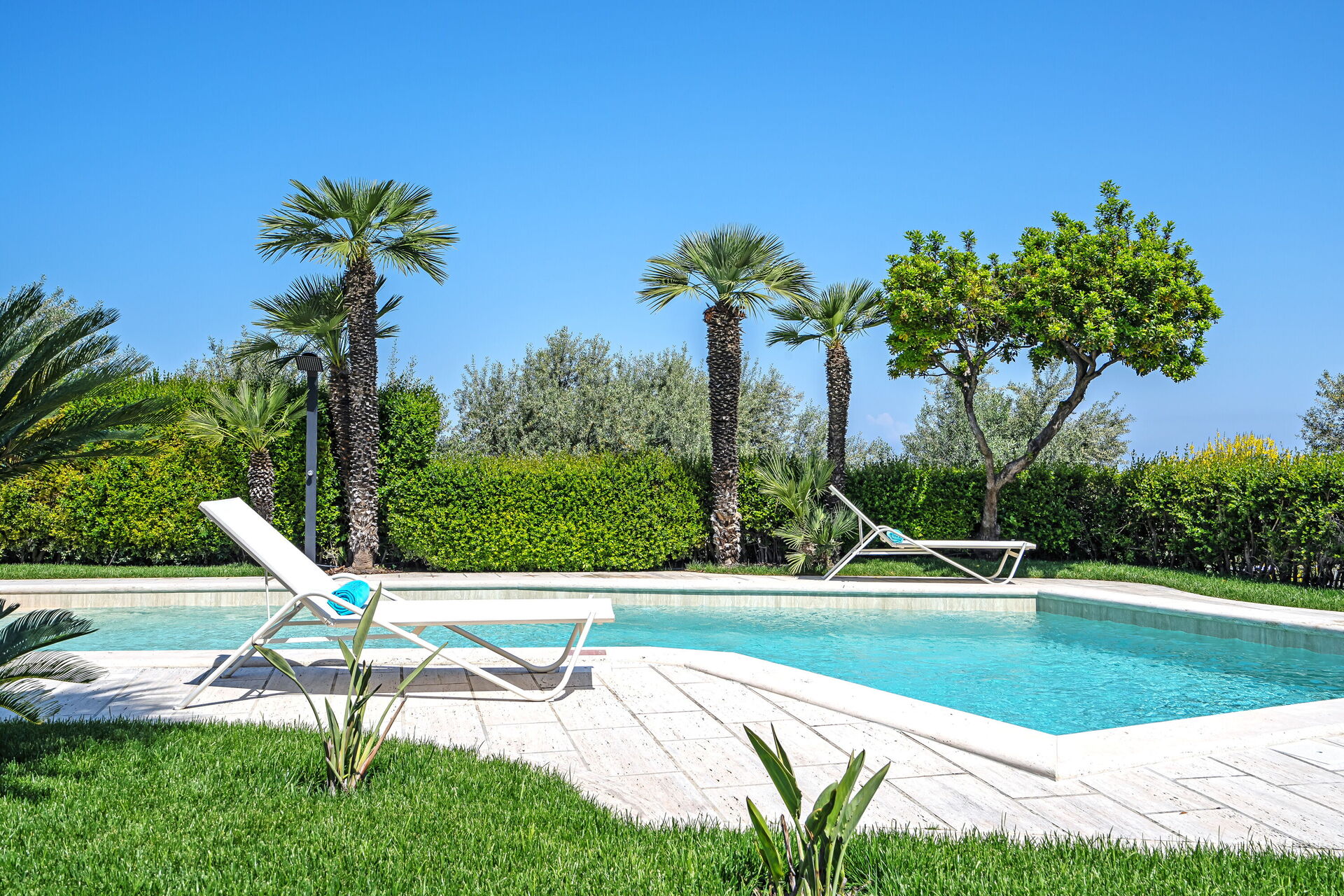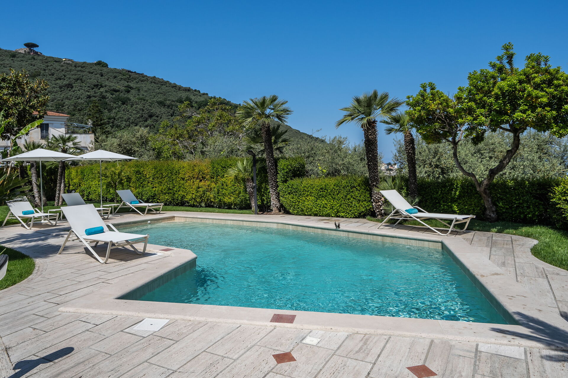 - privé zwembad (L-vormig; minimale diepte: 1 meter; maximale diepte: 2,2 meter)
