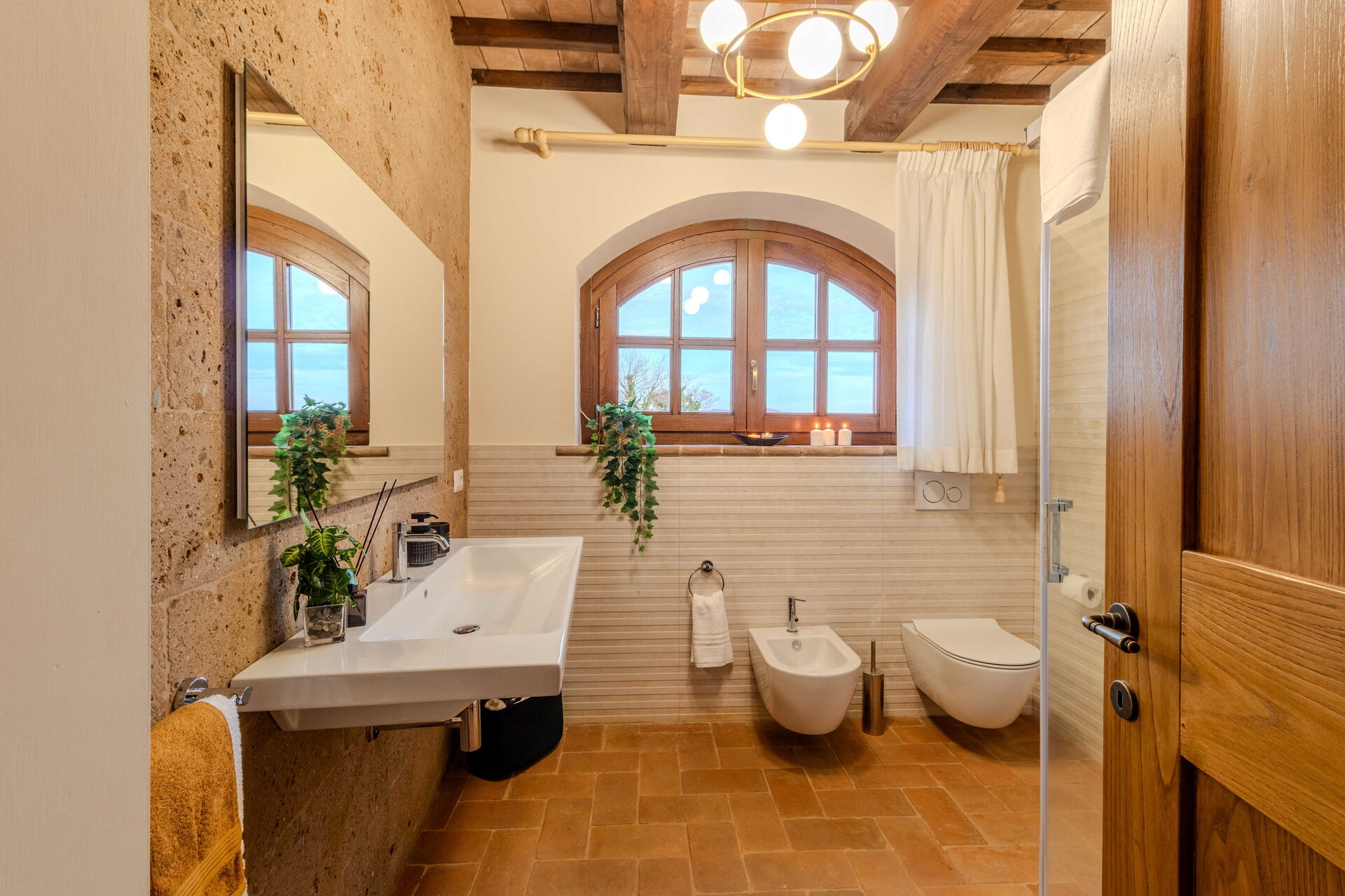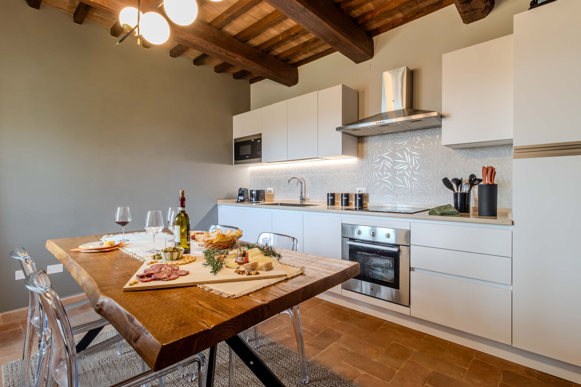 Tenuta Poggio Guiano is opgedeeld in 5 wooneenheden die binnenshuis niet met elkaar verbonden zijn, evenals een bijgebouw met een grote lounge waar iedereen samen kan ontspannen. Daarnaast is er een gemeenschappelijke ruimte met keuken en eetgedeelte waar alle gasten kunnen koken en samen kunnen eten. Met in totaal 10 slaapkamers en 7 badkamers biedt Tenuta Poggio Guiano plaats aan maximaal 20 personen.