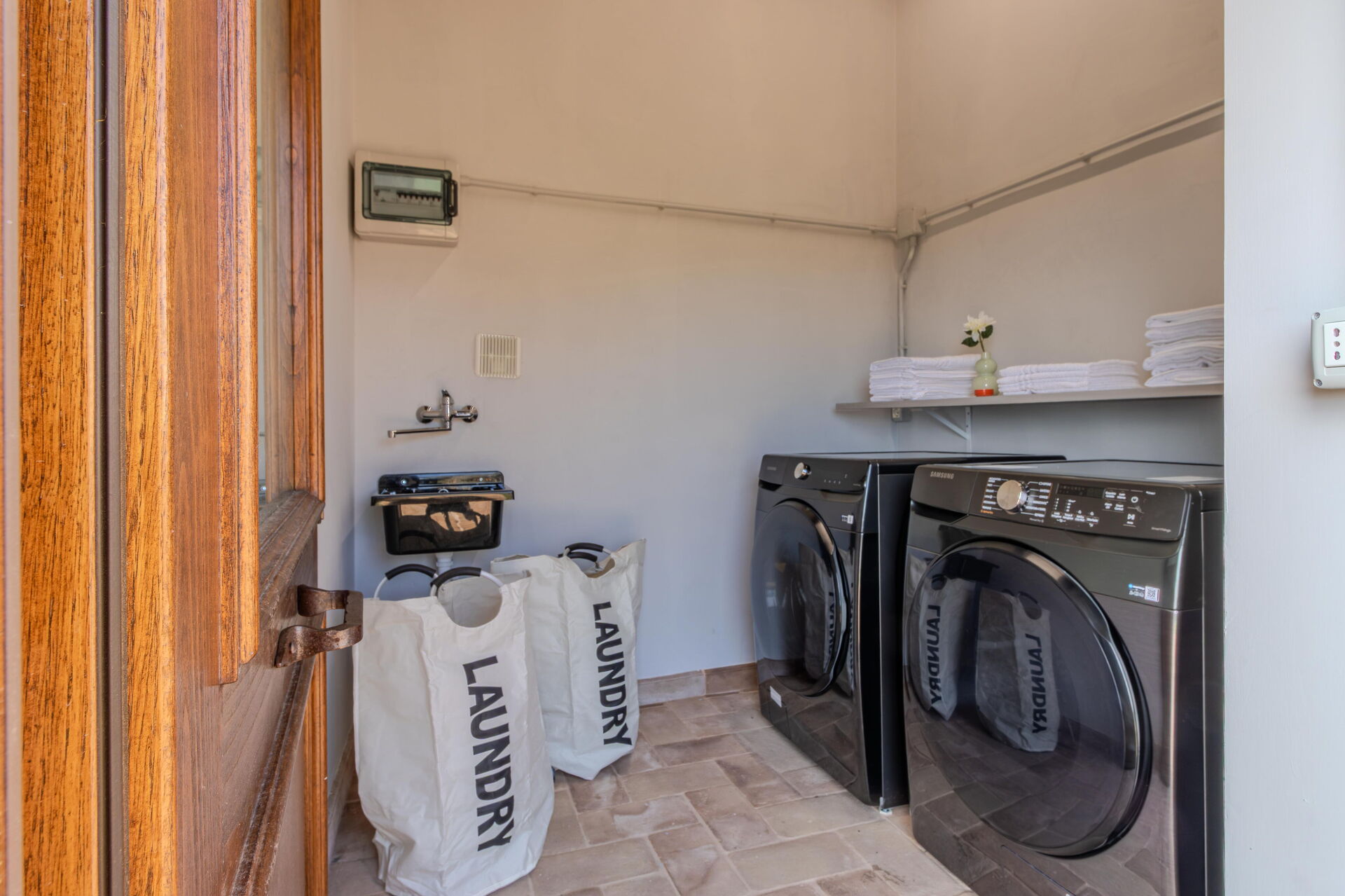 Begane grond (toegankelijk vanuit de tuin boven het zwembad en niet intern verbonden met de andere units): uitgerust met wasmachine en droger.