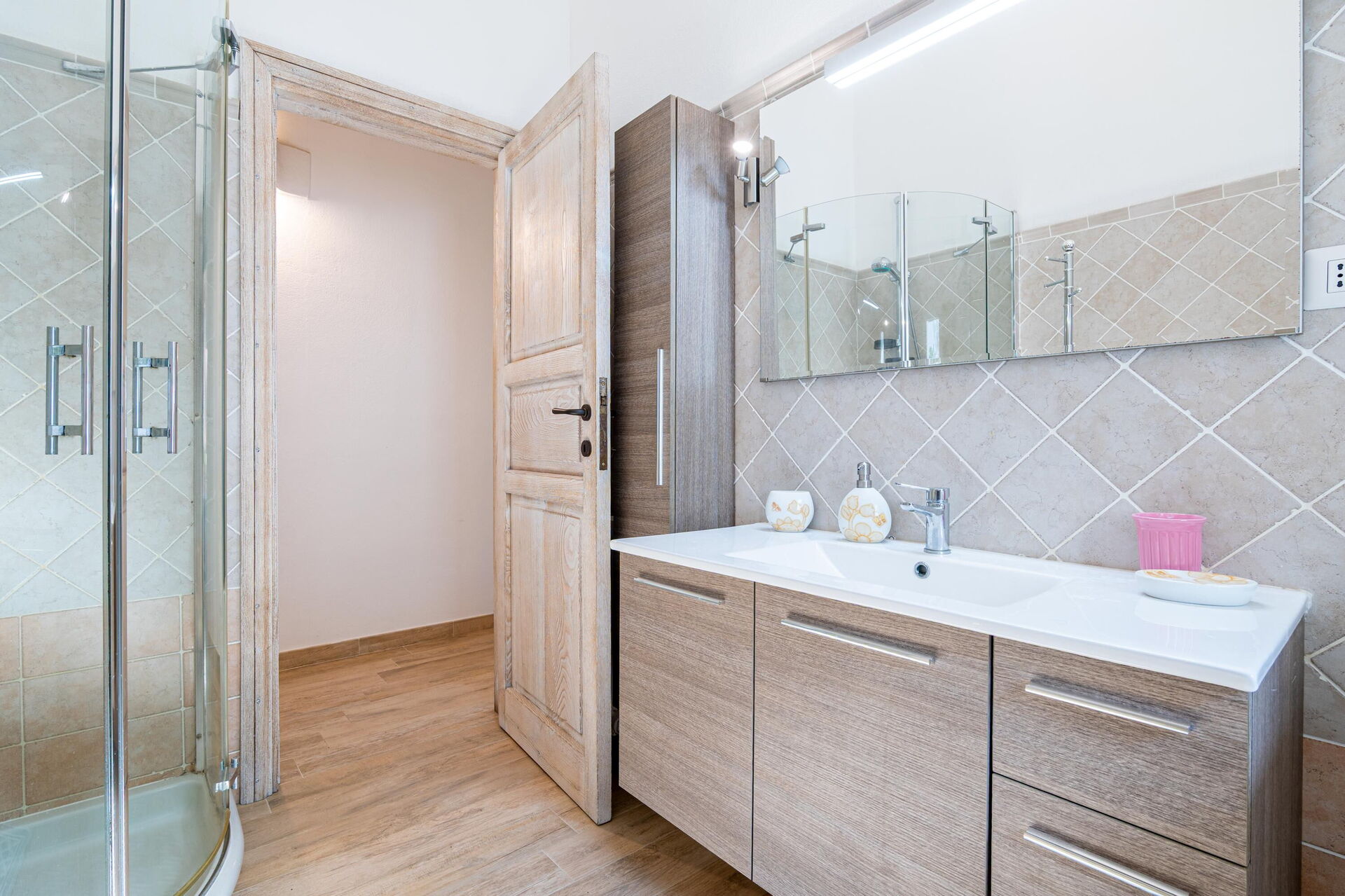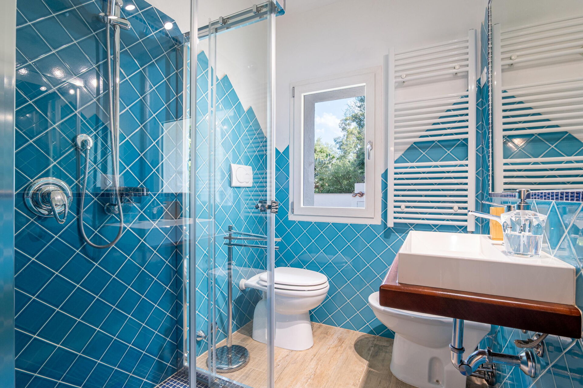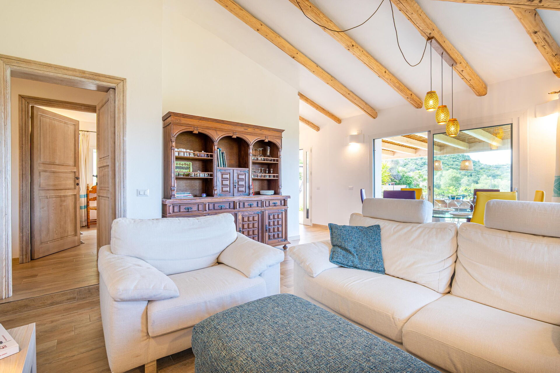 Buiten zijn er diverse schilderachtige plekken waar u samen met familie of vrienden kunt ontspannen – van het terras met eettafel en stoelen tot het ruime zwembadgedeelte met zeezicht, perfect voor onvergetelijke momenten in de zon op Sardinië.