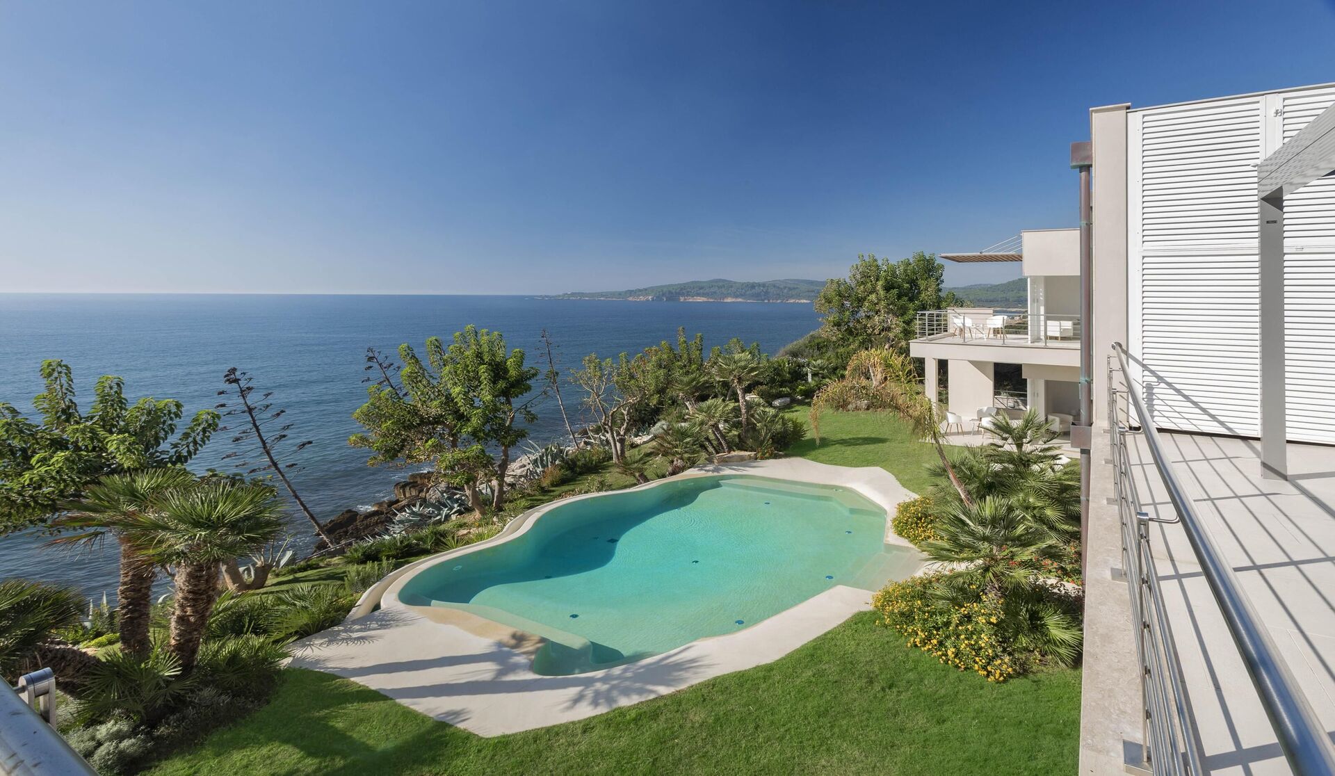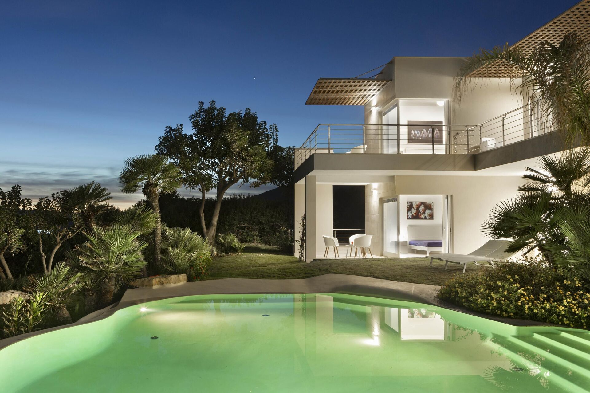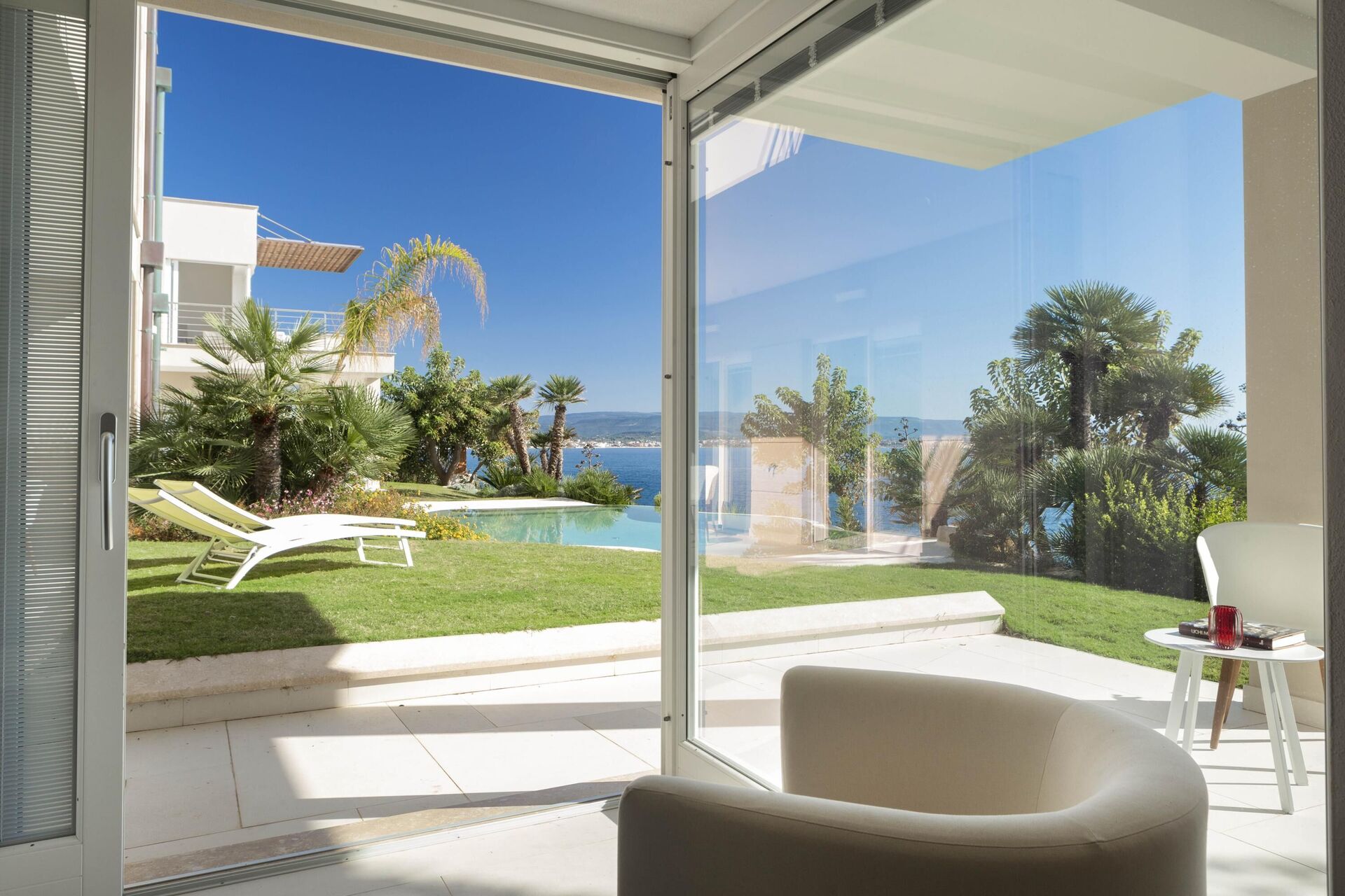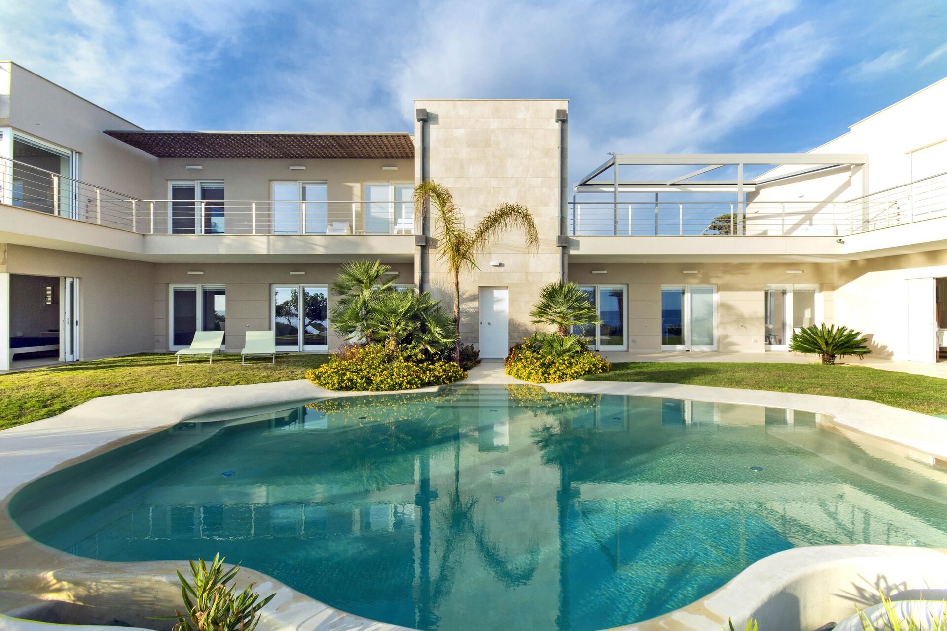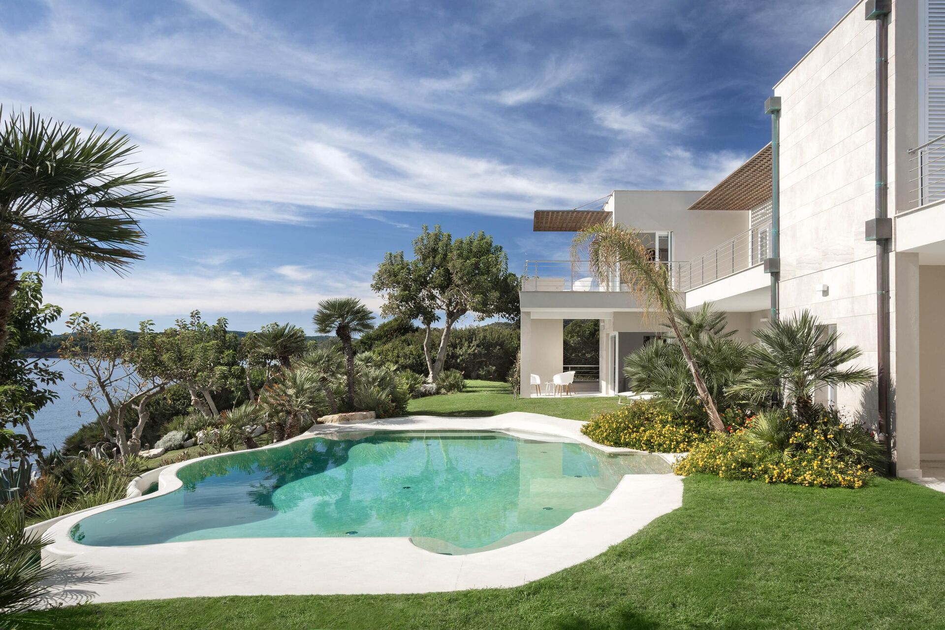 Alle slaapkamers op de begane grond hebben directe toegang tot de tuin en het zwembad. Alle slaapkamers op de eerste verdieping hebben directe toegang tot het terras.