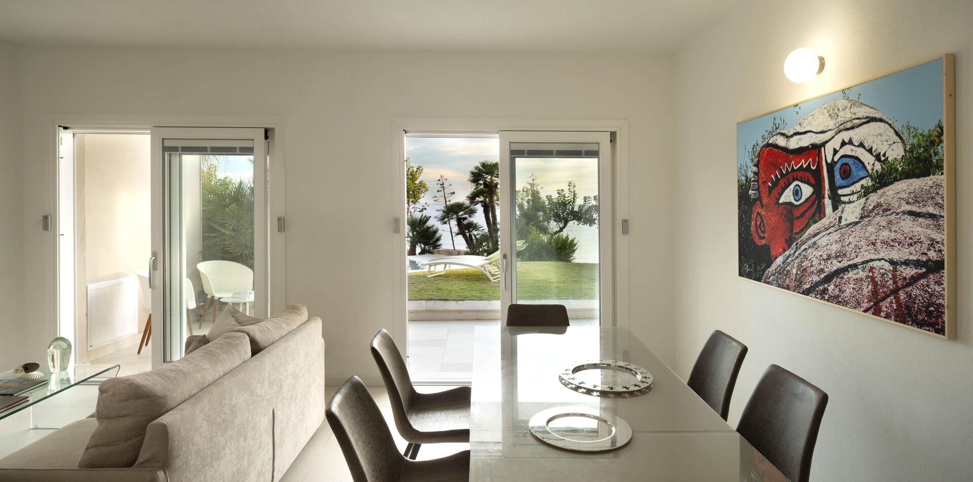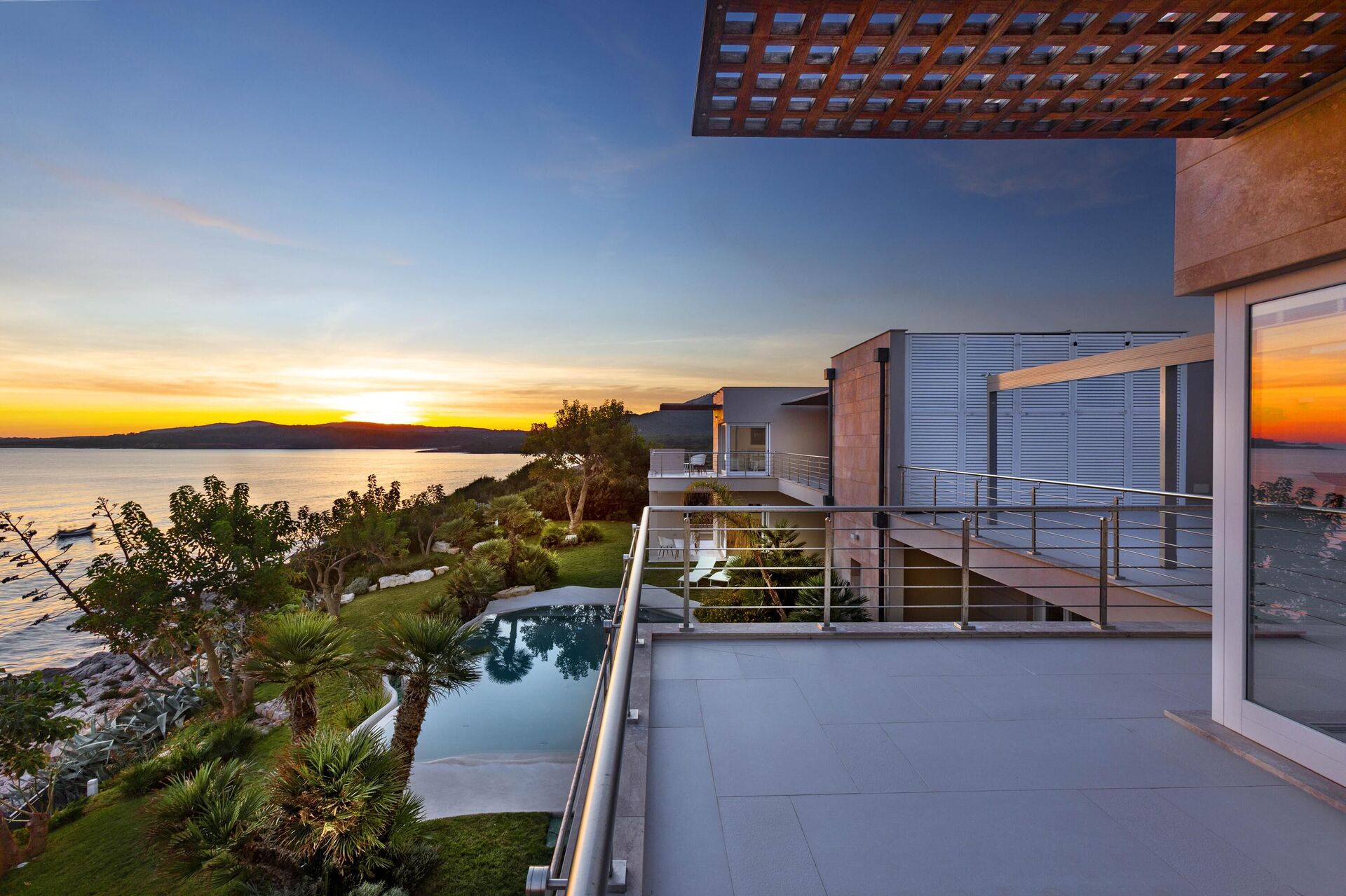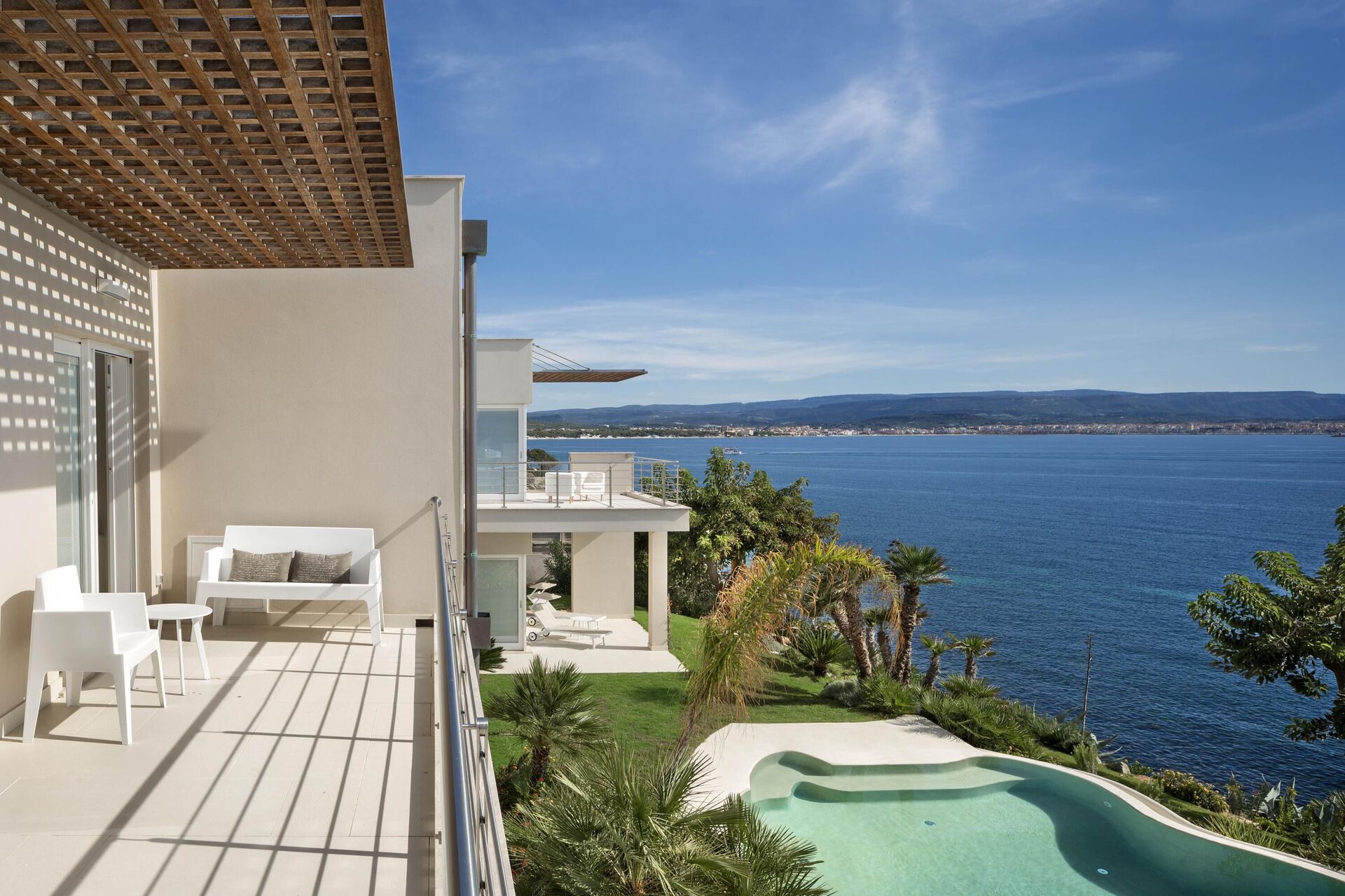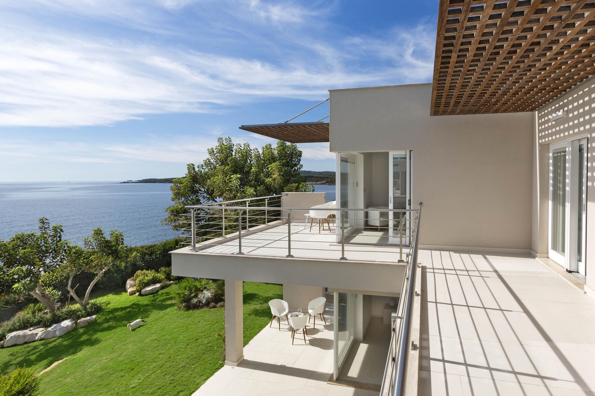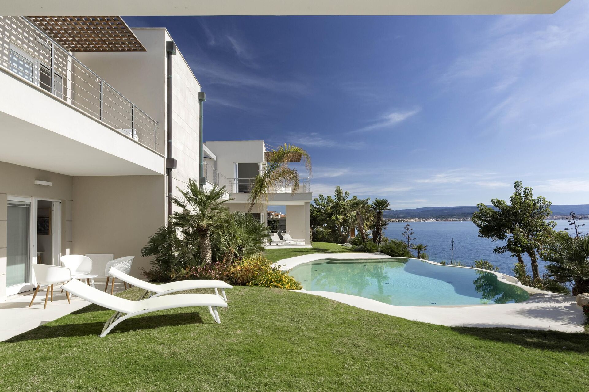 Alle slaapkamers op de begane grond hebben directe toegang tot de tuin en het zwembad. Alle slaapkamers op de eerste verdieping hebben directe toegang tot het terras.