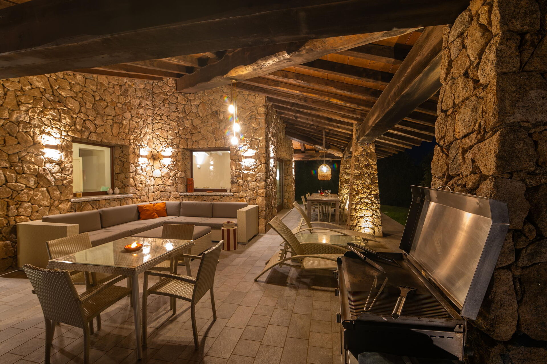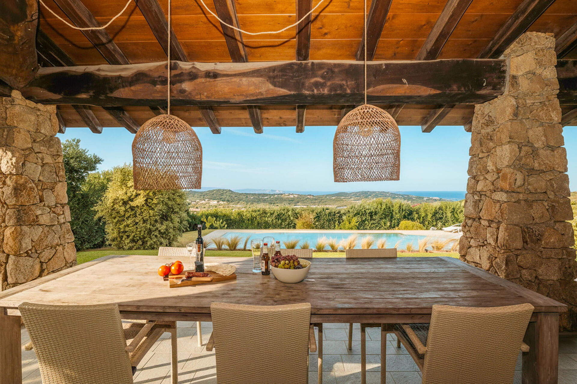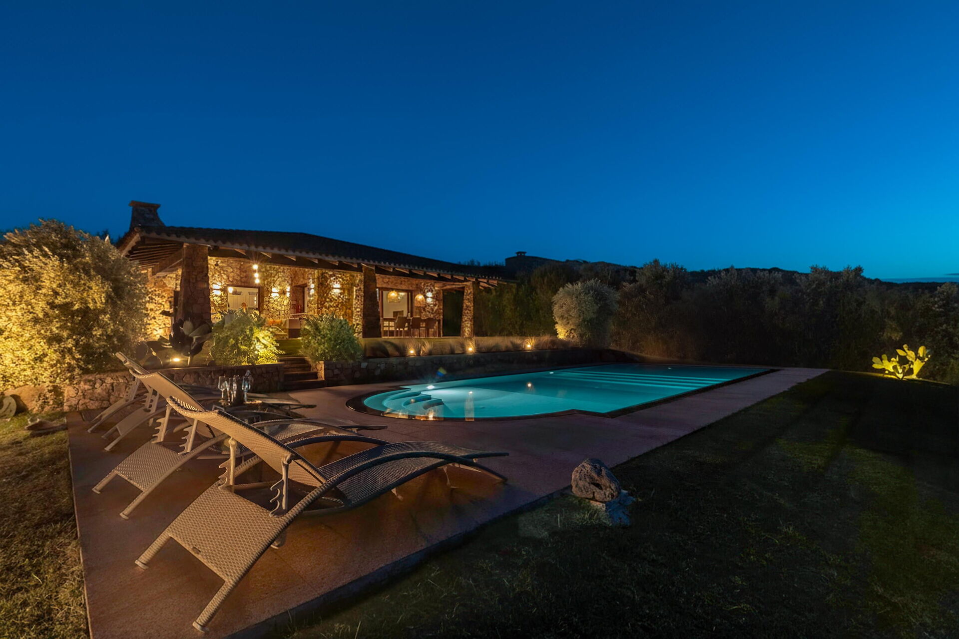 Buiten zijn er verschillende plekken met panoramisch uitzicht. Geniet van een maaltijd in de open lucht op de veranda met tafel en stoelen, of beleef onvergetelijke momenten onder de Sardijnse zon bij het grote zwembad met zeezicht.