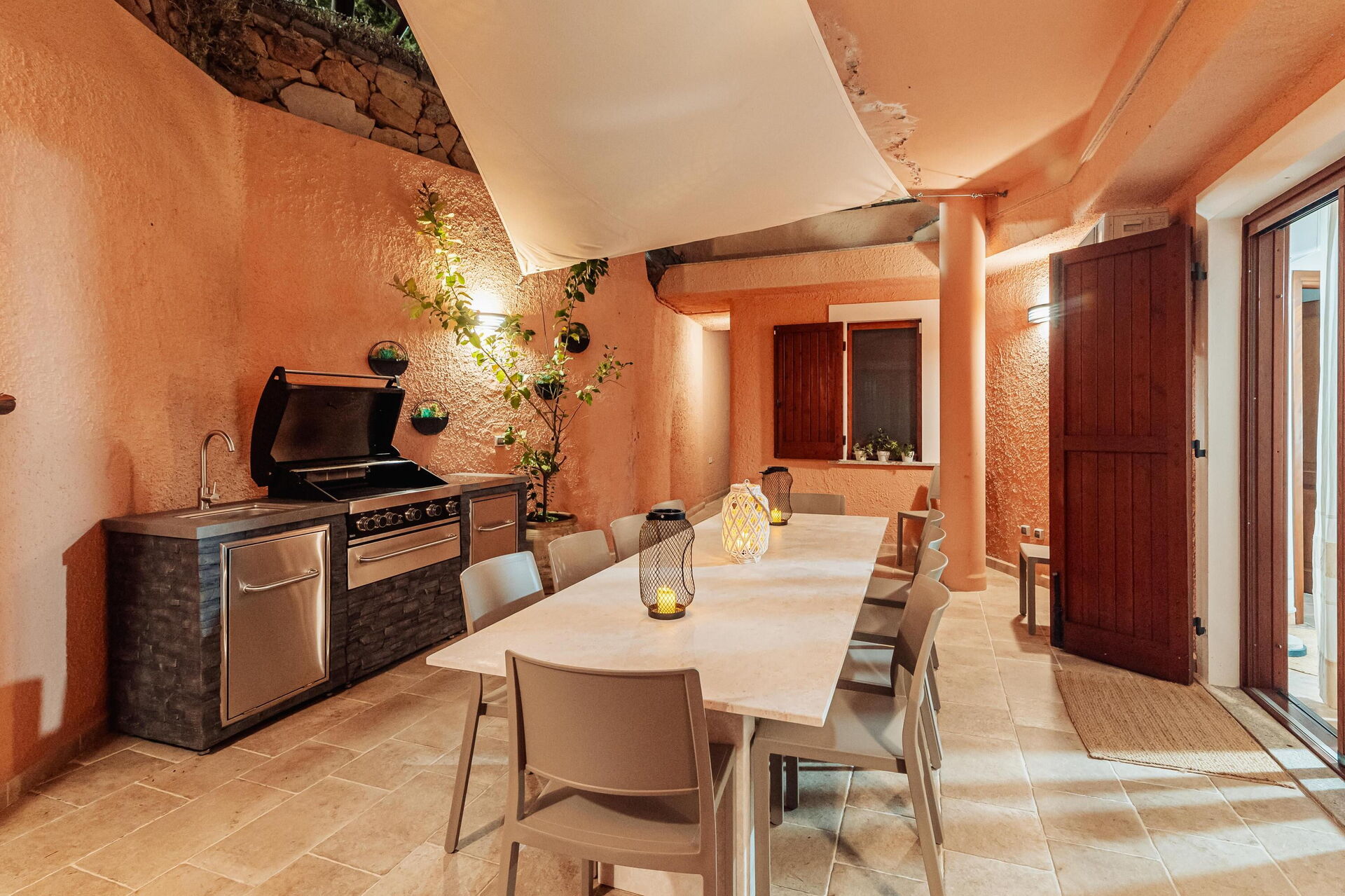 Zowel de eetkamer als de keuken hebben toegang tot het patio met buiten-eetruimte (barbecue, houtgestookte oven).