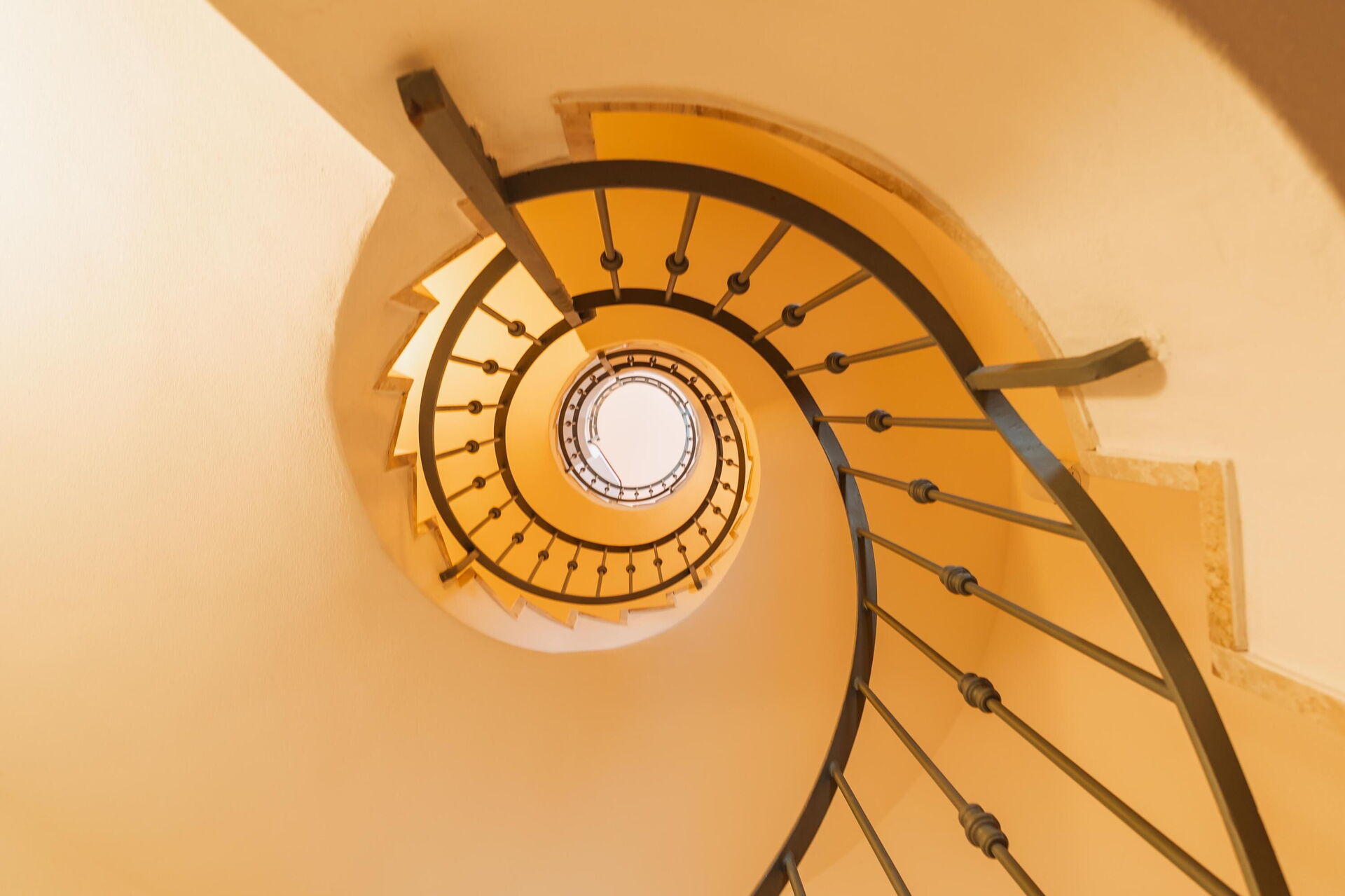 Alle verdiepingen zijn intern met elkaar verbonden via een wenteltrap.