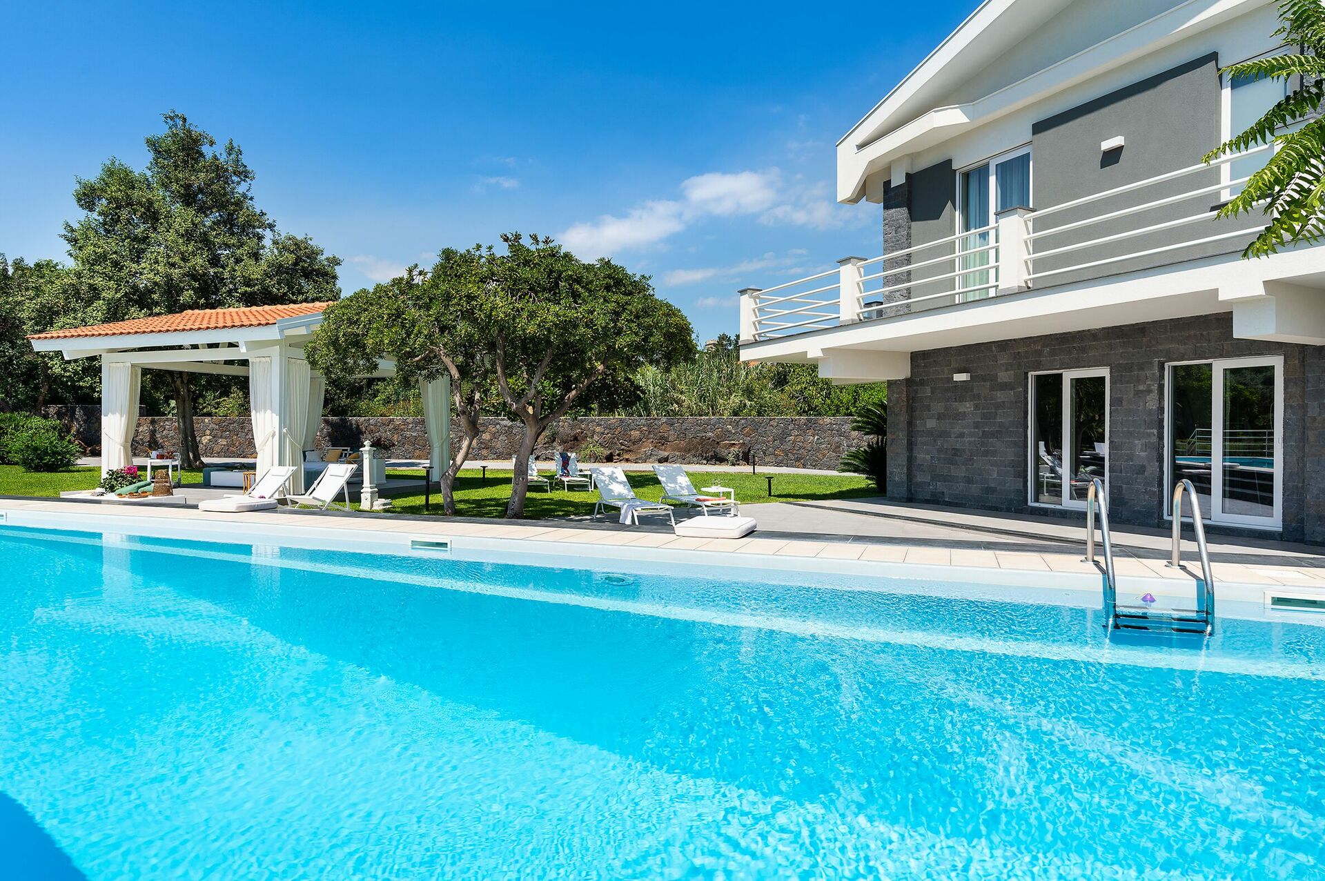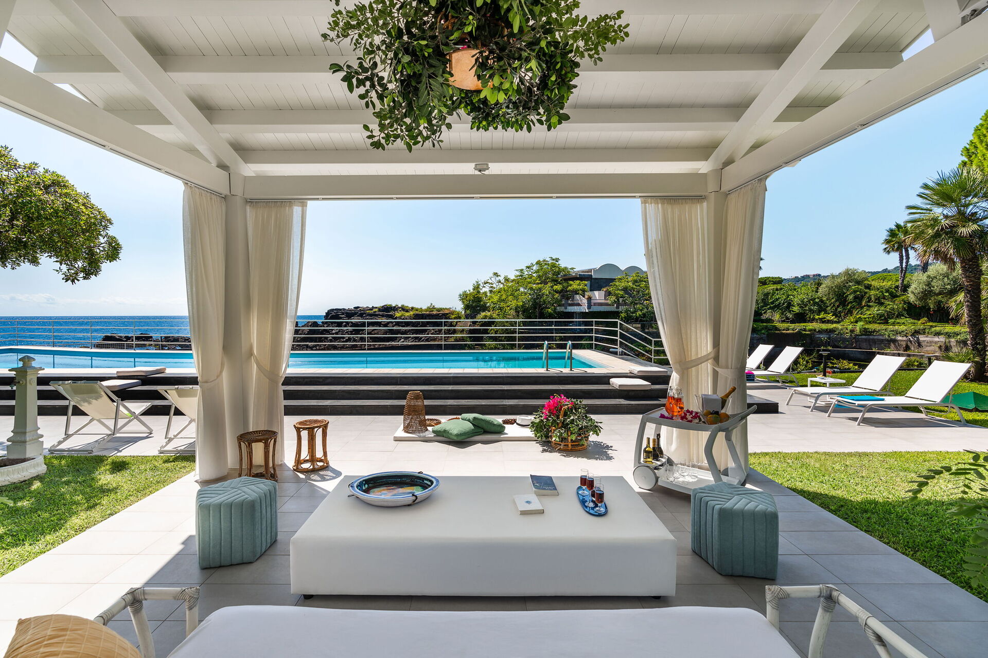 Villa Isabella is een luxe villa aan zee met privézwembad nabij het karakteristieke kustplaatsje Stazzo, tussen Catania en Taormina.