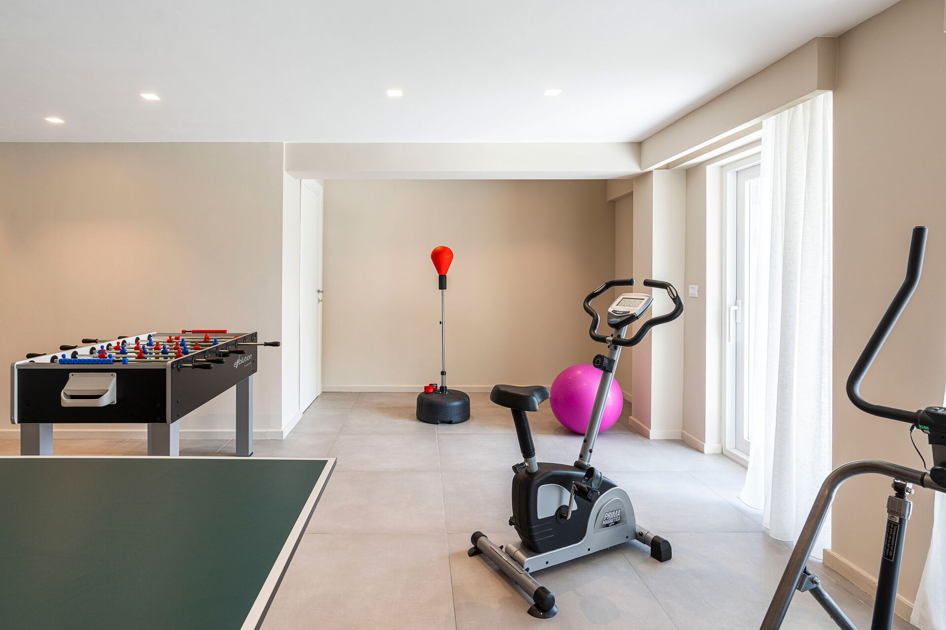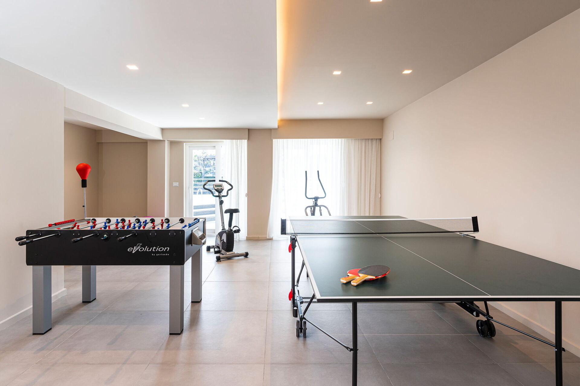 - speelkamer met pingpongtafel, tafelvoetbal en bokszak