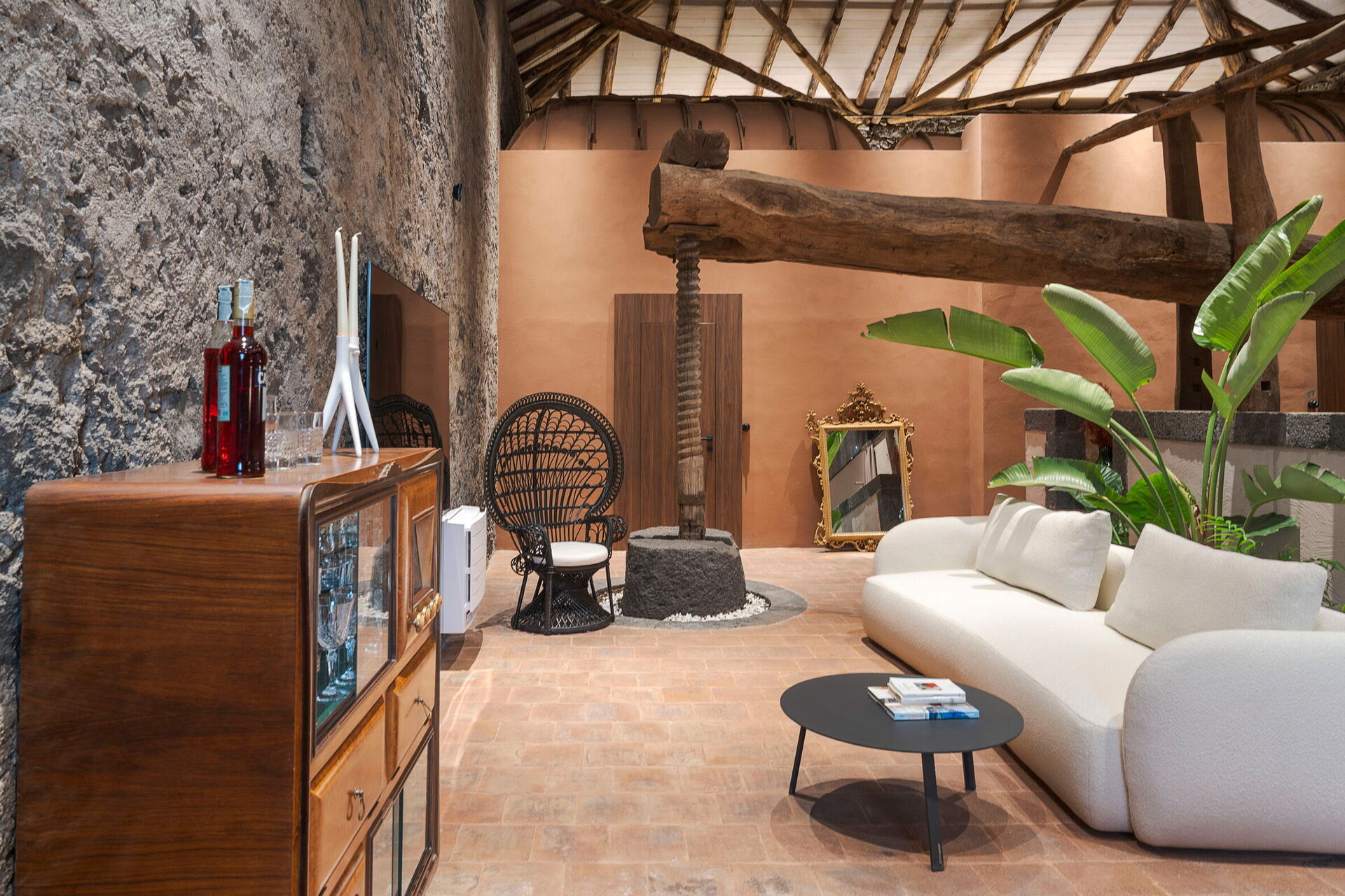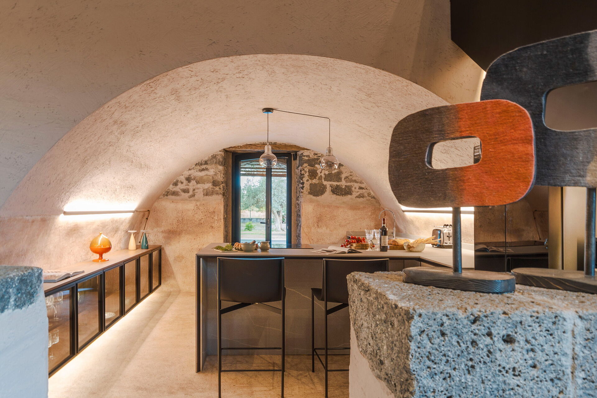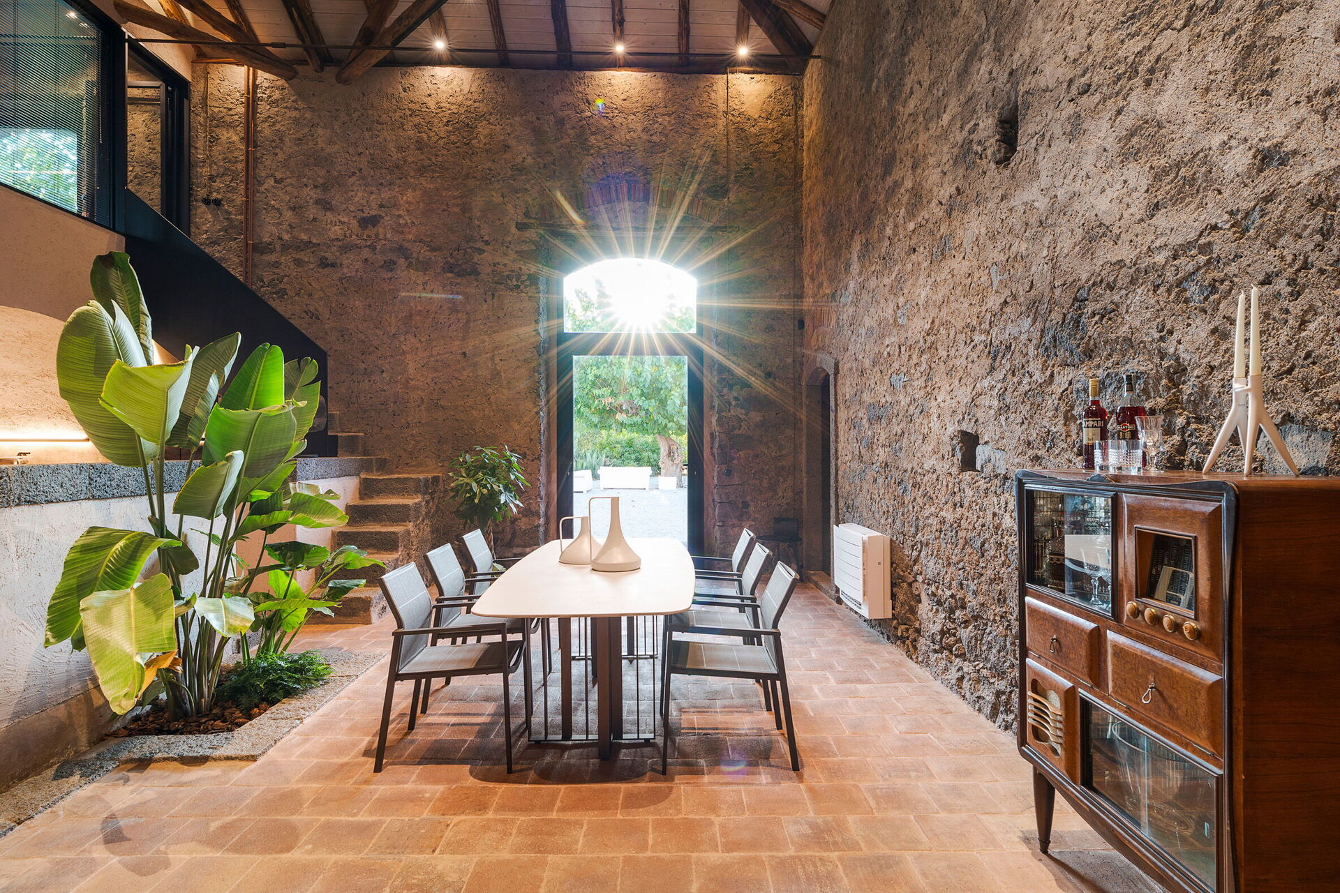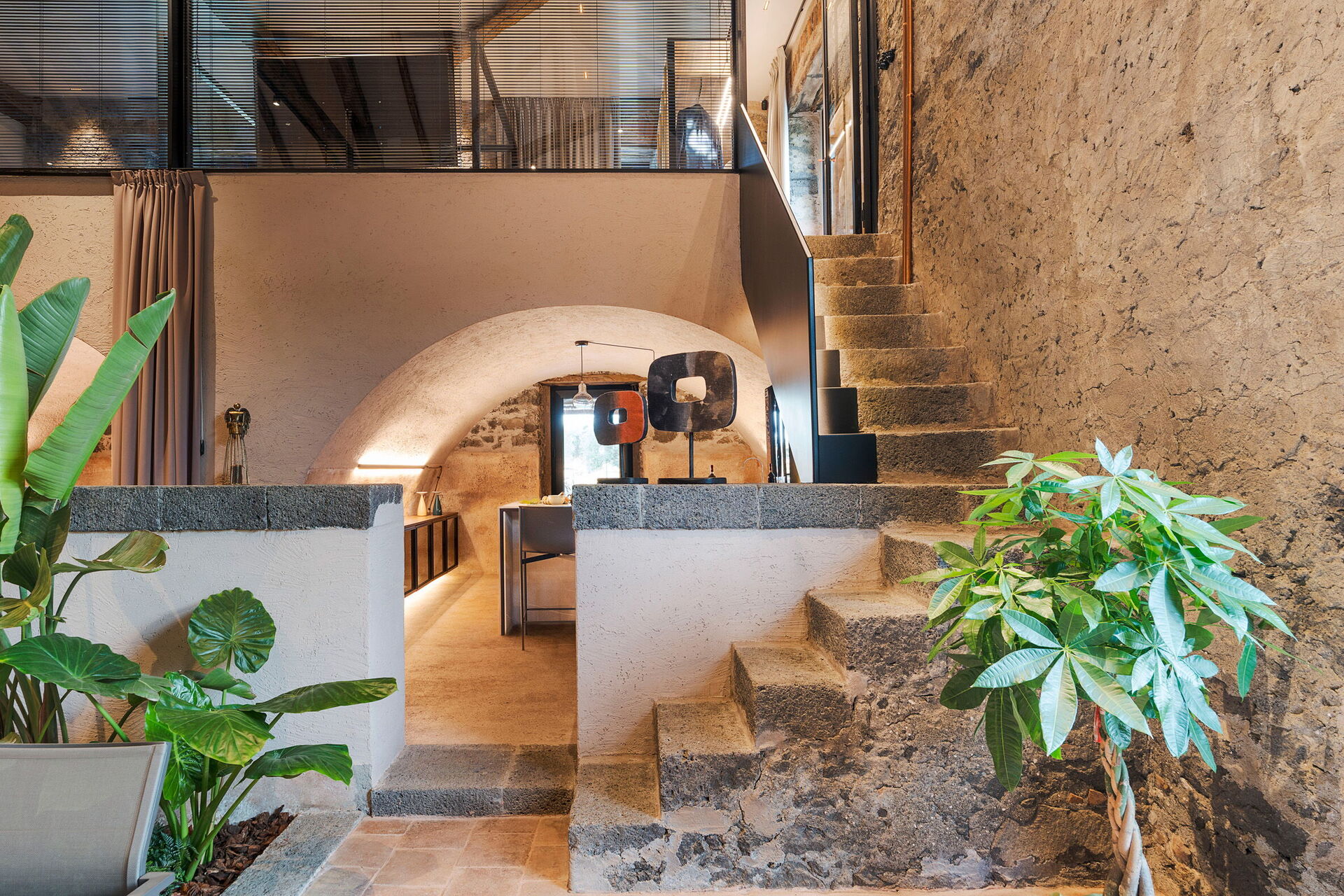 Het huis is smaakvol ingericht met charmante ruimtes en is goed uitgerust met alle voorzieningen. Het meubilair, zowel binnen als buiten, wordt gekenmerkt door materialen zoals steen en hout. Traditionele Siciliaanse architectuur komt in alle ruimtes terug: zichtbare plafondbalken, stenen trappen en grote gewelven in de muren die de verschillende ruimtes van elkaar scheiden.