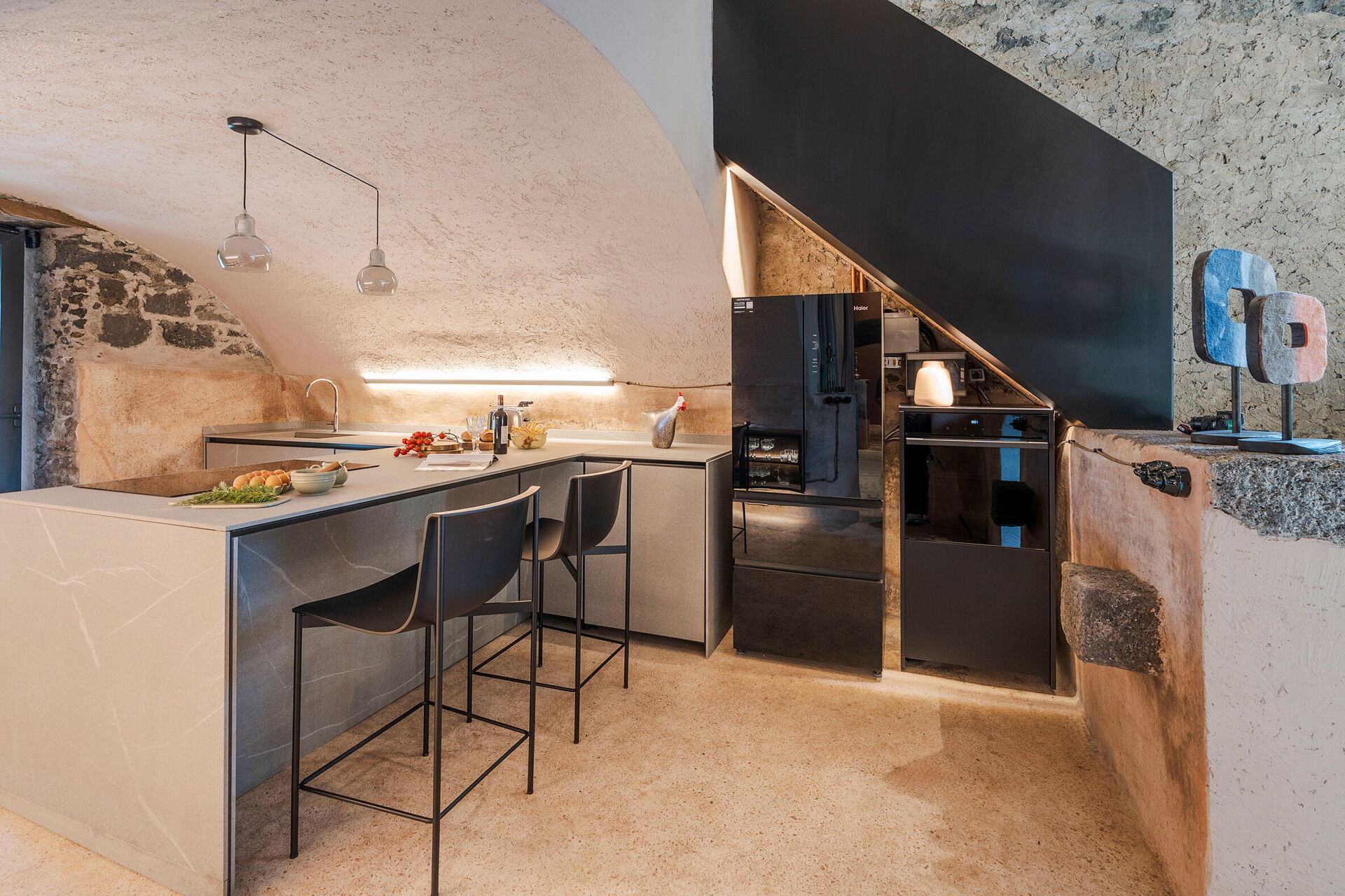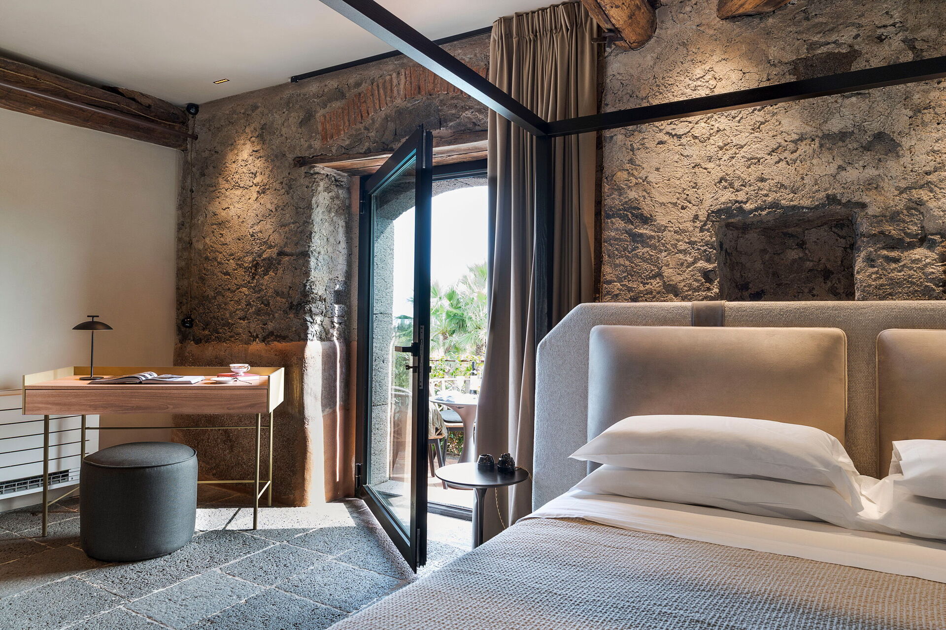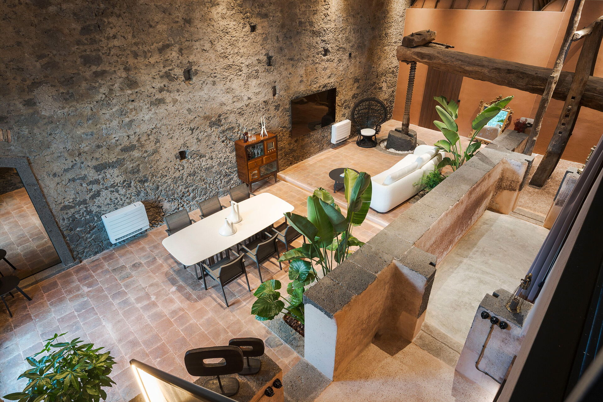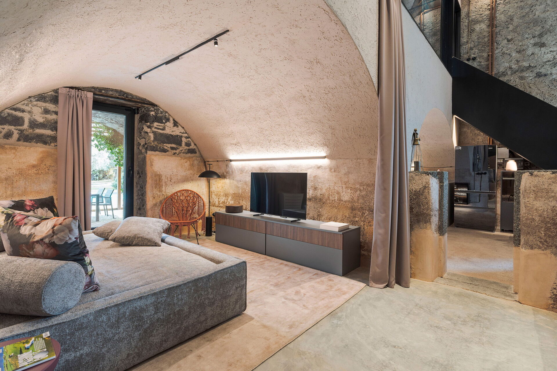 Het huis is smaakvol ingericht met charmante ruimtes en is goed uitgerust met alle voorzieningen. Het meubilair, zowel binnen als buiten, wordt gekenmerkt door materialen zoals steen en hout. Traditionele Siciliaanse architectuur komt in alle ruimtes terug: zichtbare plafondbalken, stenen trappen en grote gewelven in de muren die de verschillende ruimtes van elkaar scheiden.