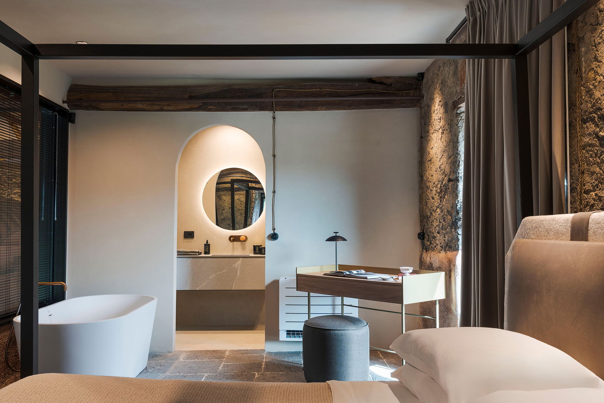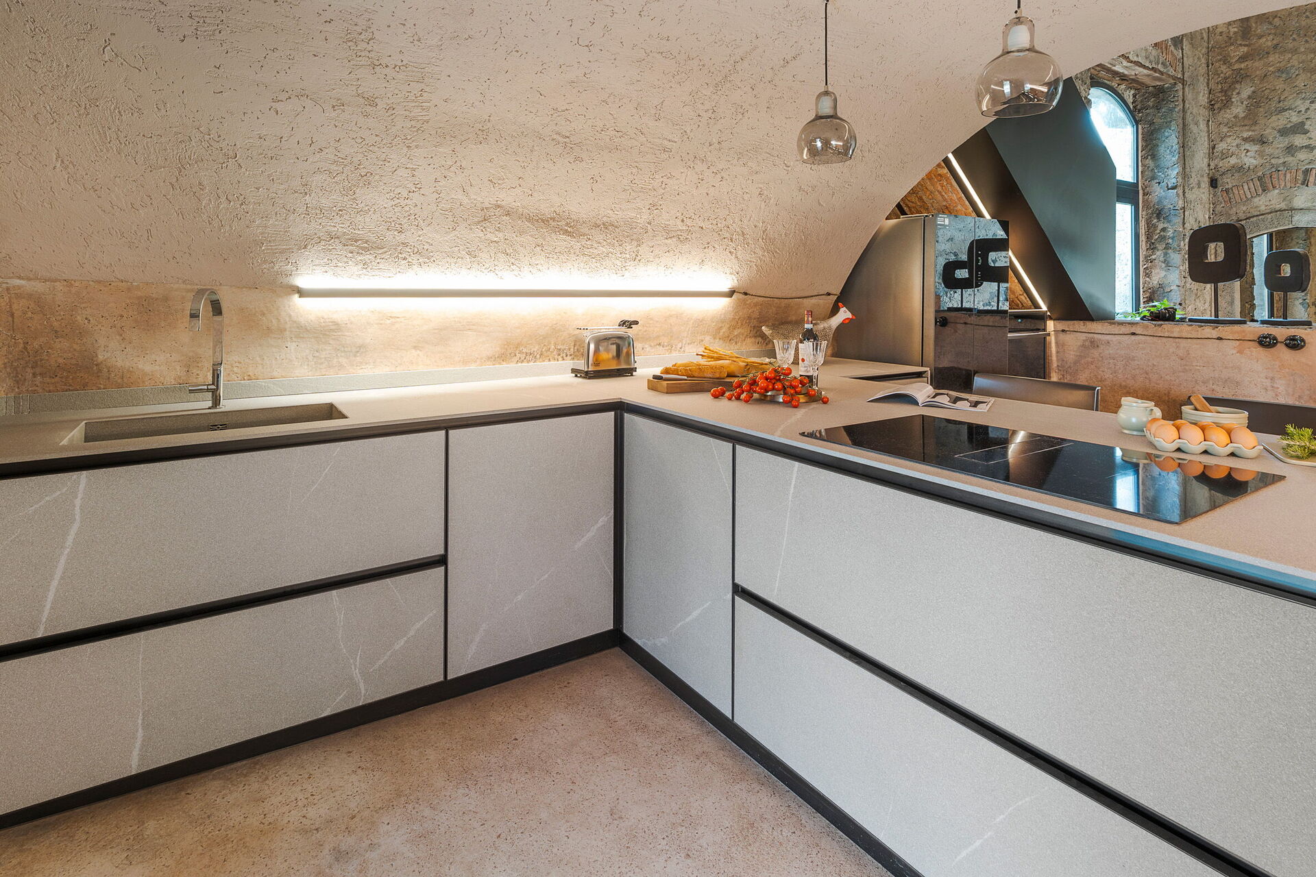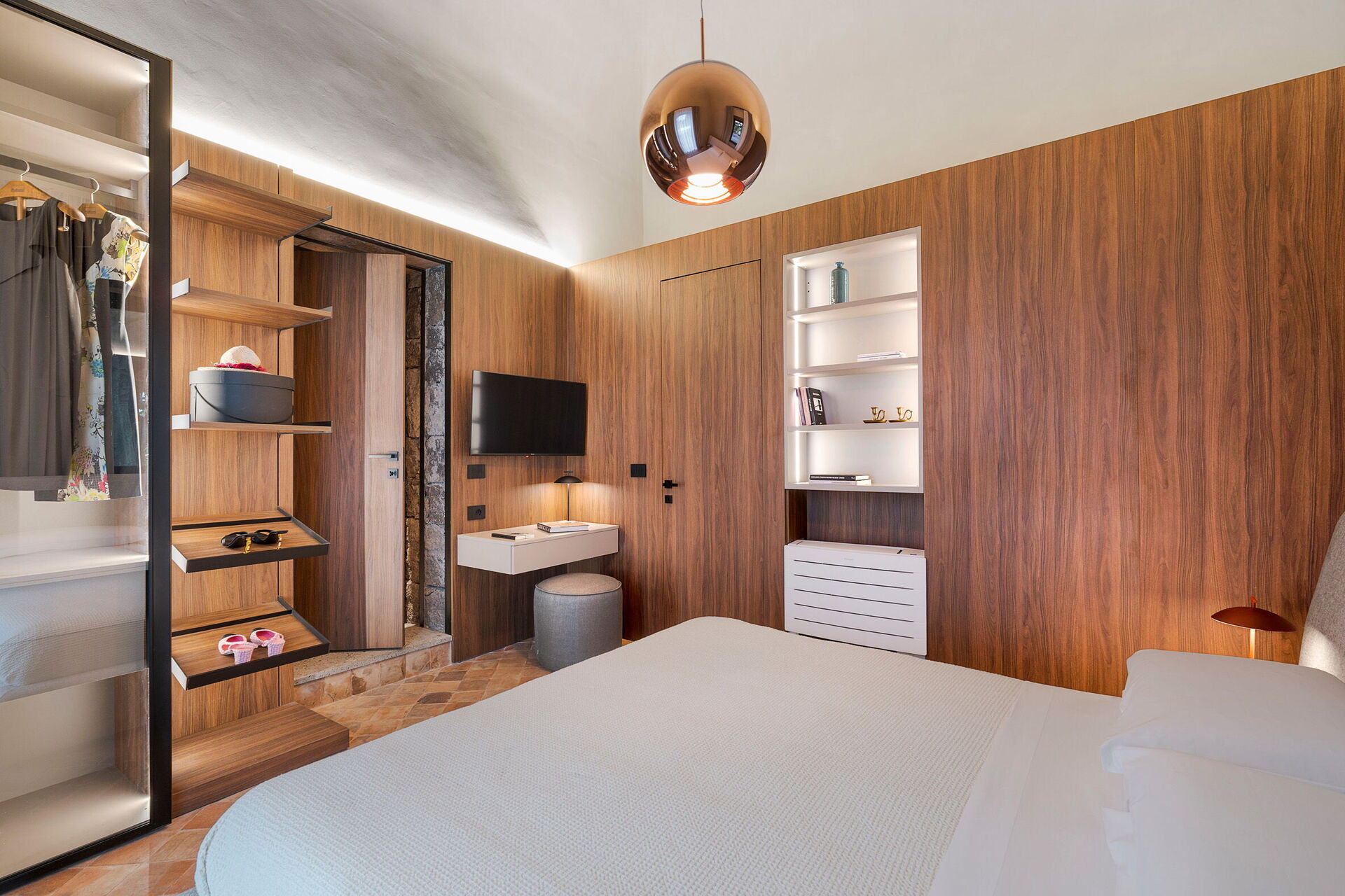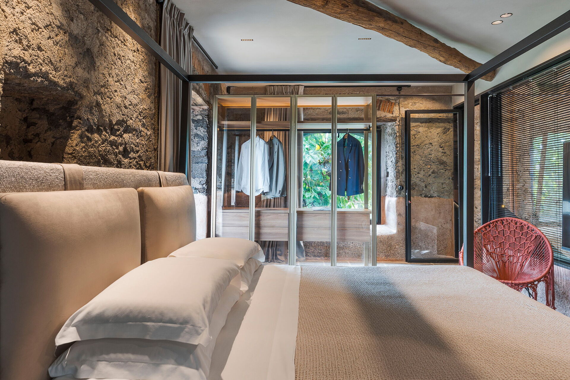Het huis is smaakvol ingericht met charmante ruimtes en is goed uitgerust met alle voorzieningen. Het meubilair, zowel binnen als buiten, wordt gekenmerkt door materialen zoals steen en hout. Traditionele Siciliaanse architectuur komt in alle ruimtes terug: zichtbare plafondbalken, stenen trappen en grote gewelven in de muren die de verschillende ruimtes van elkaar scheiden.