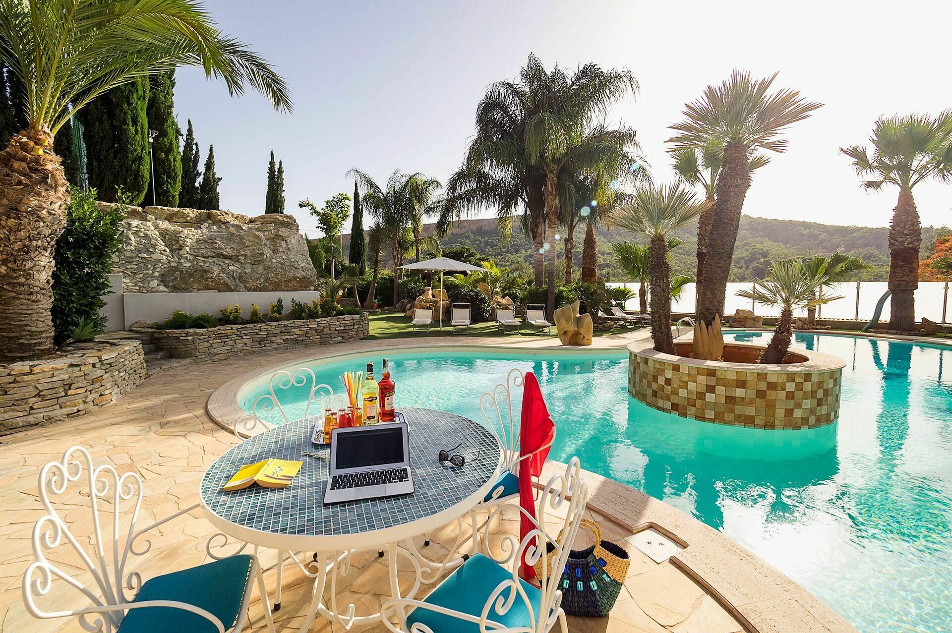 Het zwembad heeft de vorm van een klavertje en in de rotsen is een heerlijke jacuzzi geplaatst.
