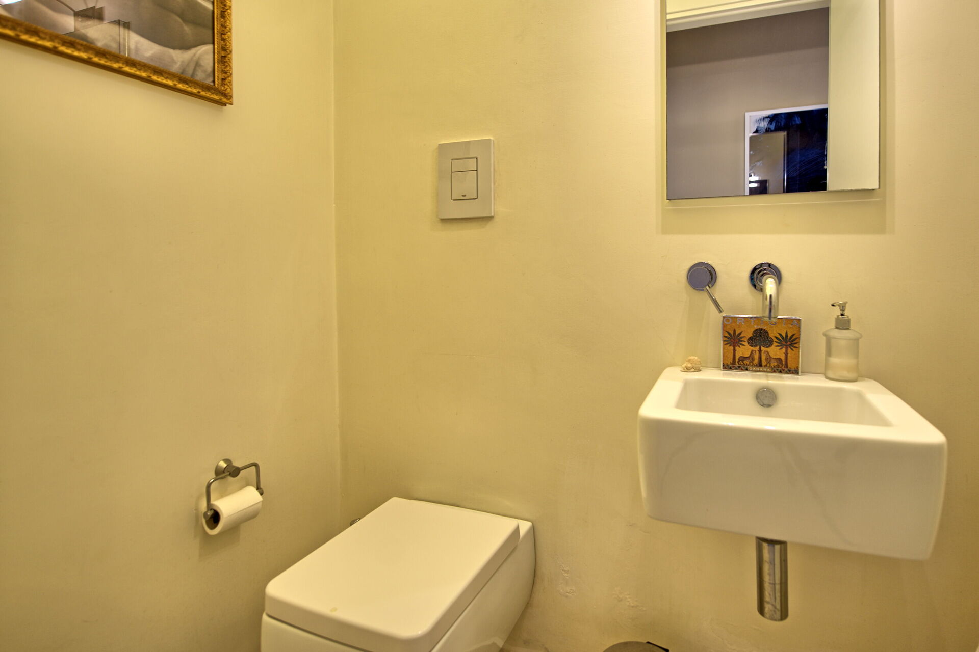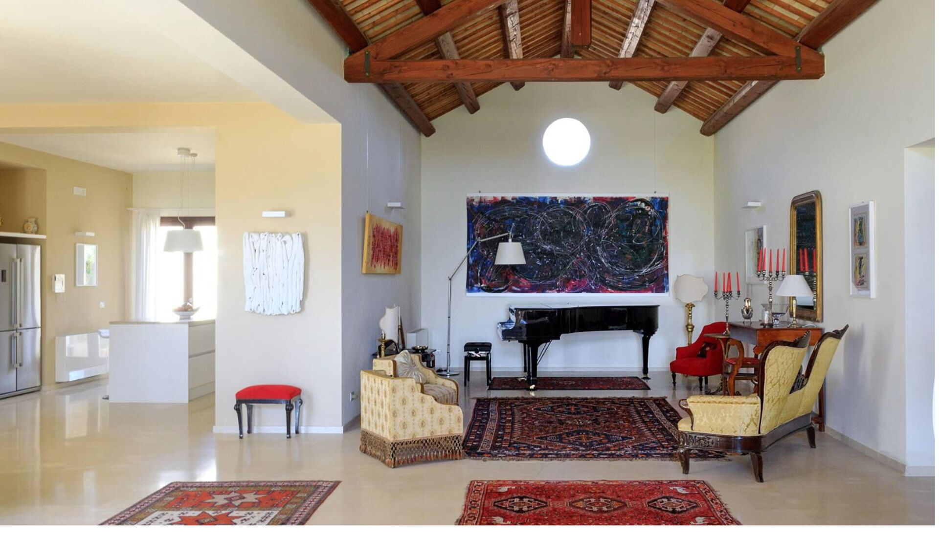 Het huis ligt in een weelderige, goed onderhouden tuin en heeft een elegant, gastvrij interieur. Het is zorgvuldig ingericht met een prettige combinatie van stijlen, met elementen als moderne kunstwerken, marmeren vloeren, modern meubilair en designverlichting.