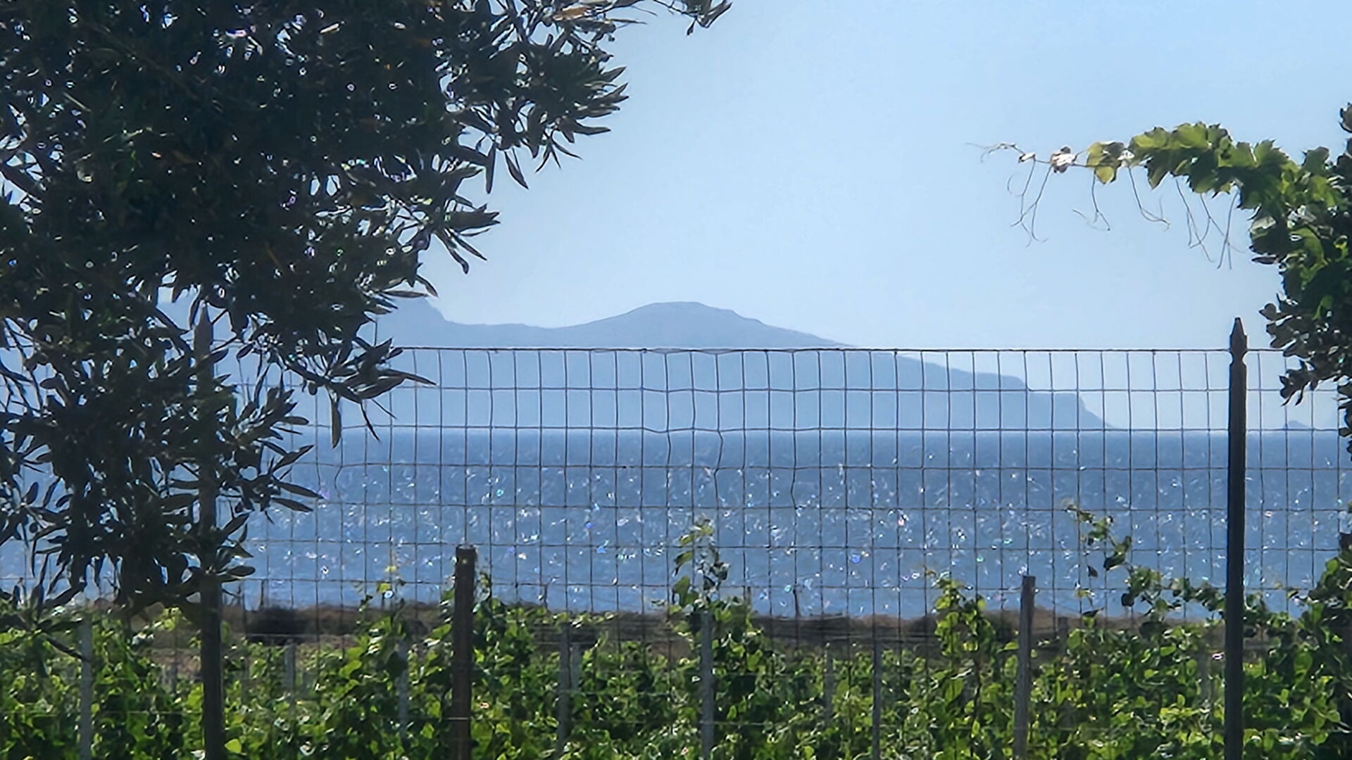 - terras met prachtig uitzicht op de zee, de Egadische Eilanden en de wijngaard