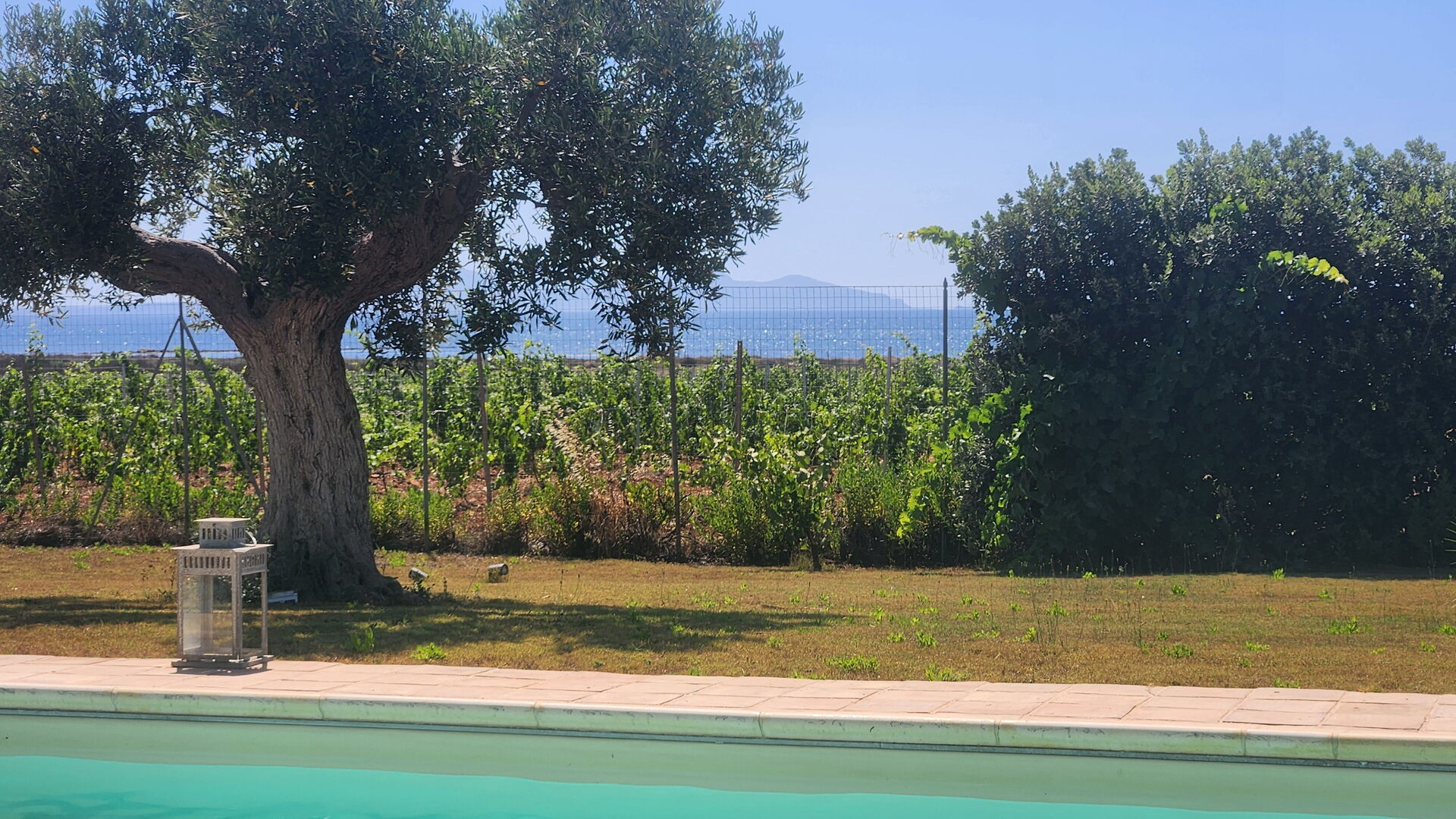 Deze exclusieve vakantievilla ligt naast een wijngaard en heeft een adembenemend panoramisch uitzicht op zee vanaf het zwembad en grote terrassen.