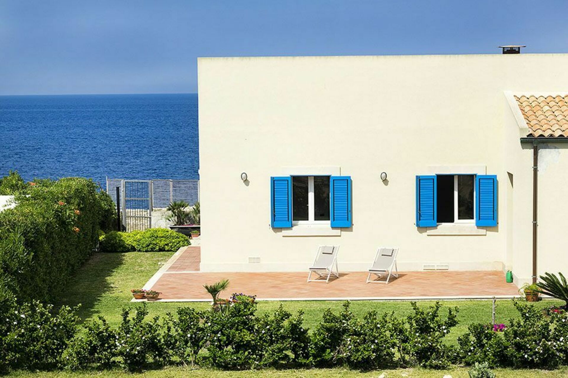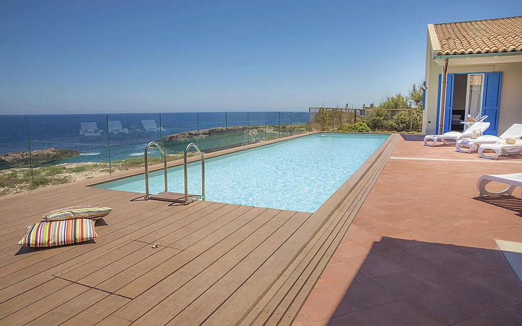 De villa ligt op een klif boven de zee, heeft een groot, uitgerust terras en een goed onderhouden tuin en is ideaal voor een ontspannen vakantie, genietend van de koele zeebries.