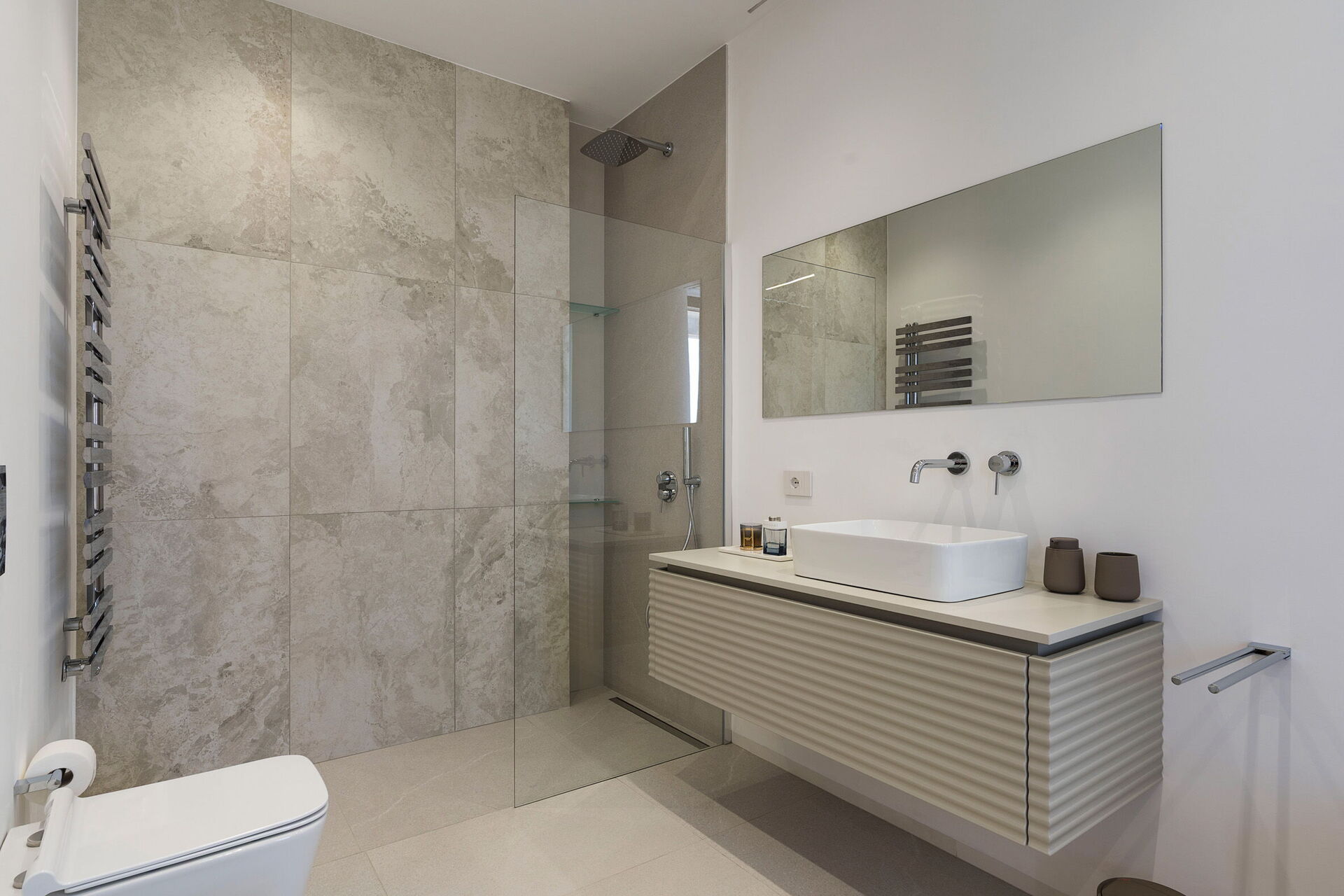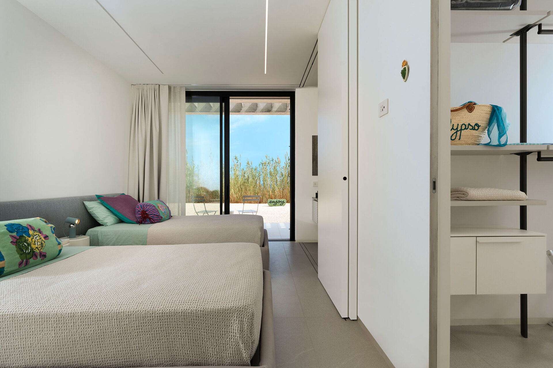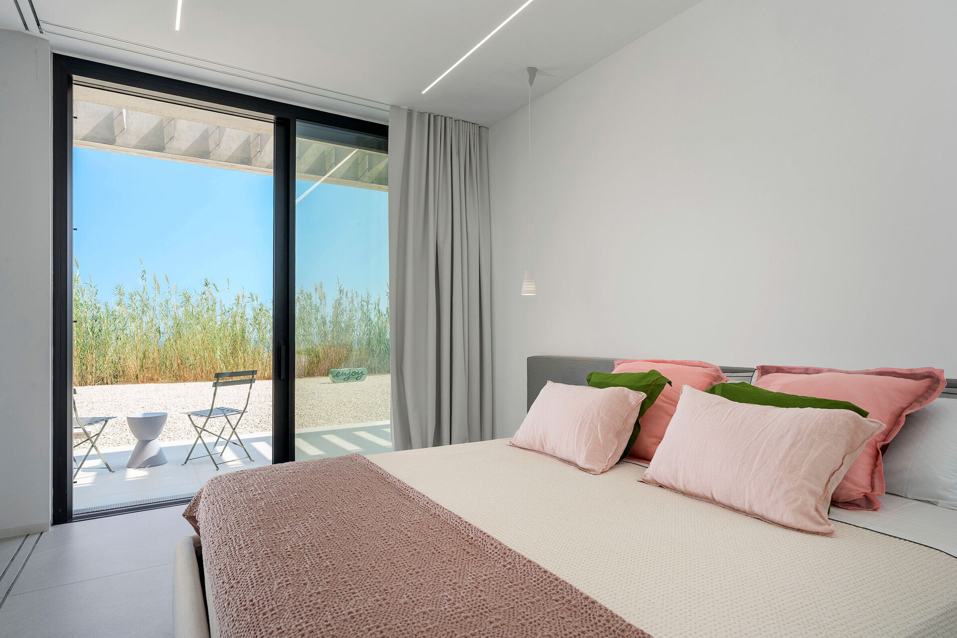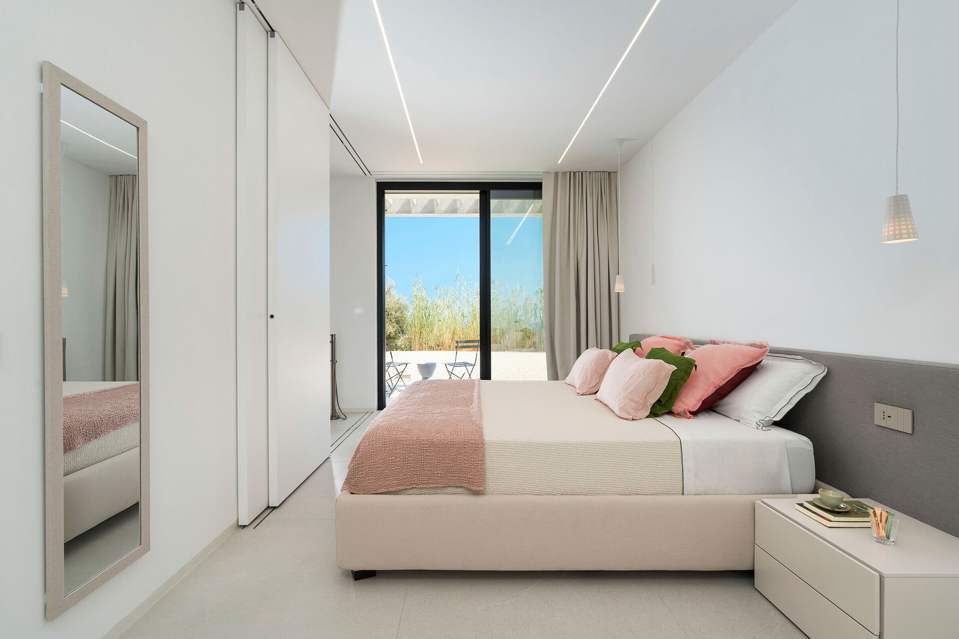 De slaapkamers zijn zeer licht en hebben allemaal toegang tot de buitenruimte (ook die op de benedenverdieping).