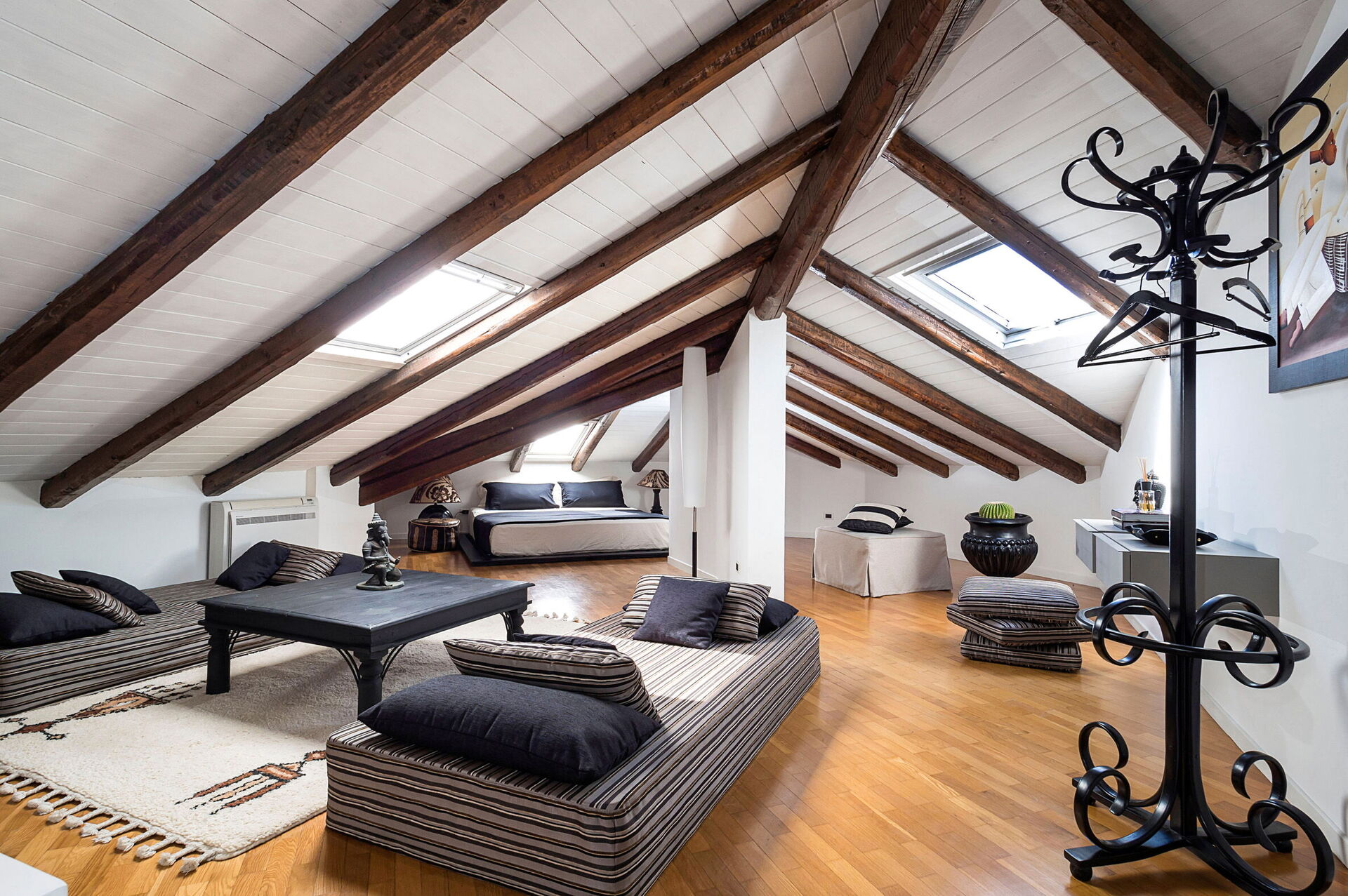 De woning bestaat uit 3 verdiepingen (waarvan één een zolderverdieping is), met ruime gemeenschappelijke leefruimtes die van alle voorzieningen zijn uitgerust, en 4 slaapkamers die comfortabel plaats bieden aan maximaal 8 personen. Het interieur is modern en smaakvol ingericht.