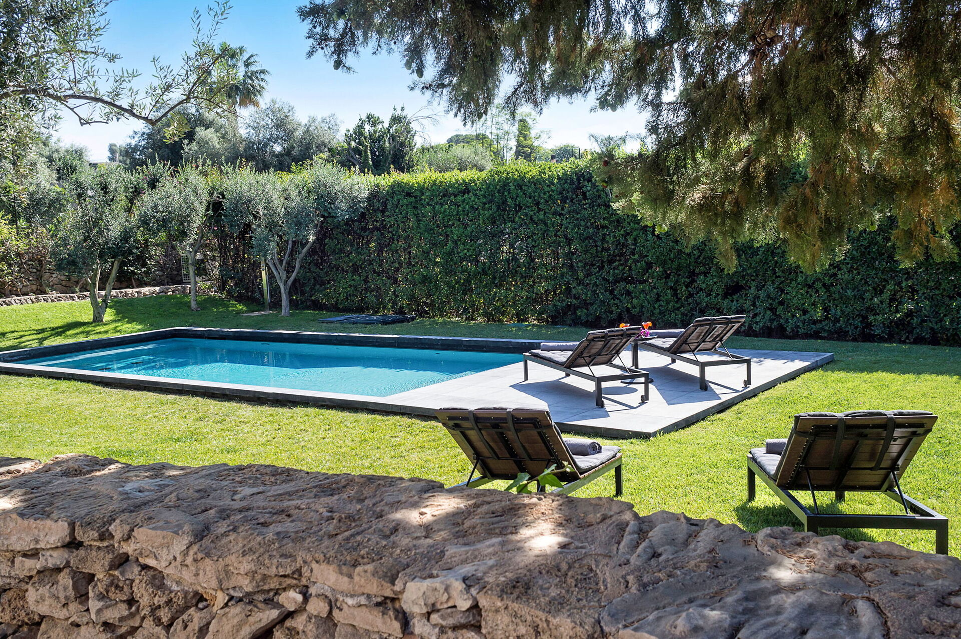 - privé zoutwaterzwembad (10,50 x 4,50 meter; minimale diepte: 1,10 meter; maximale diepte: 1,60 meter; verwarmd tot ca. 26 °C)