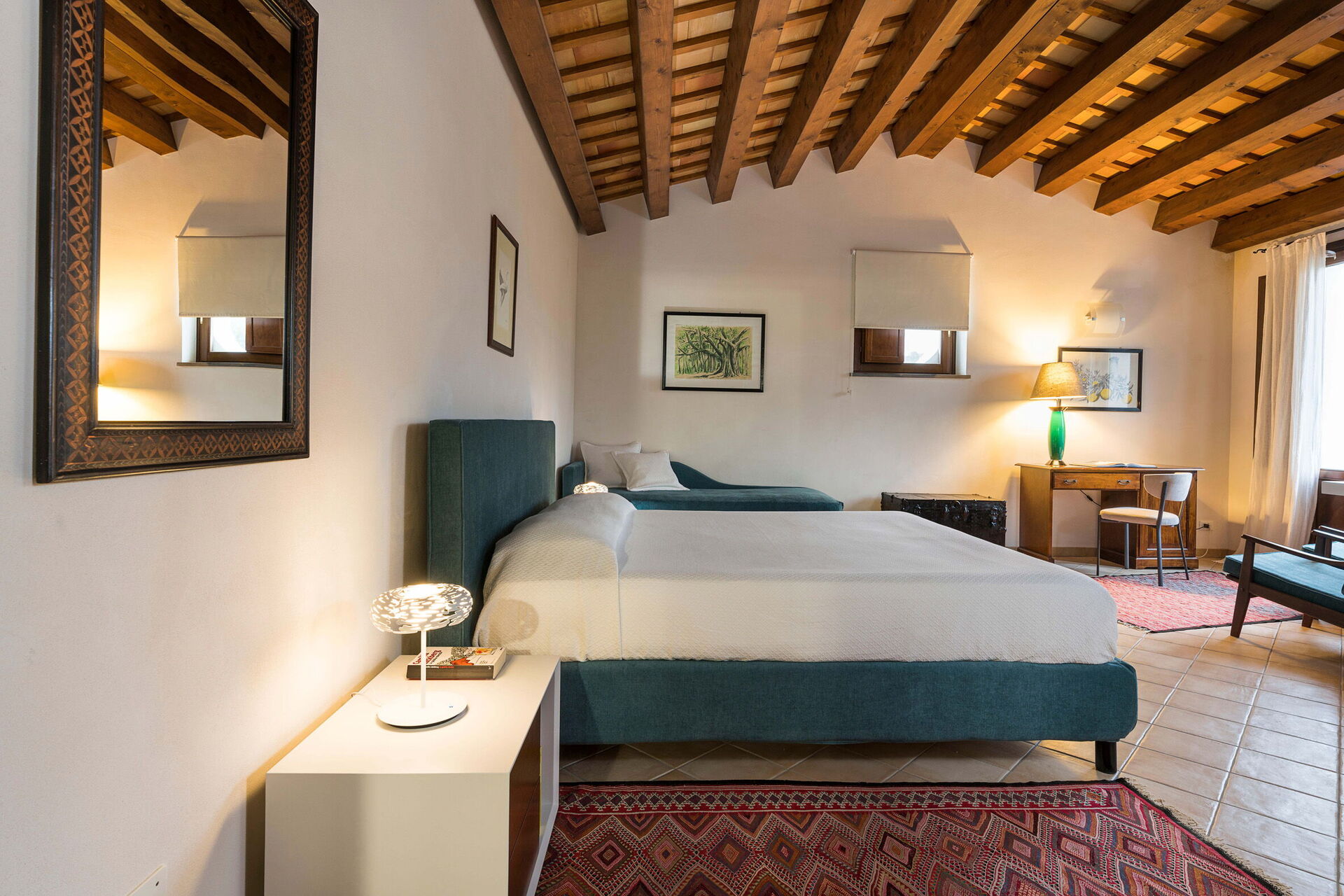 De ruime buitenkant en royaal gebouwde interieur - die comfortabel plaats biedt aan maximaal 16 personen - garanderen voldoende ruimte voor een groot gezin of een groep vrienden. De inrichting van het interieur is een smaakvolle combinatie van antiek en eigentijdse meubelen die met veel zorg zijn uitgekozen.