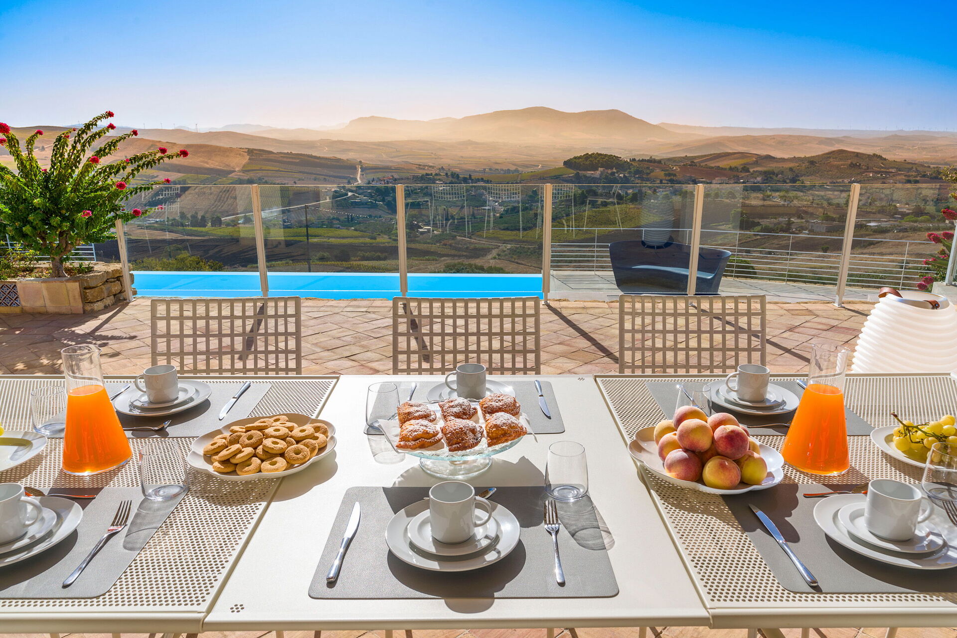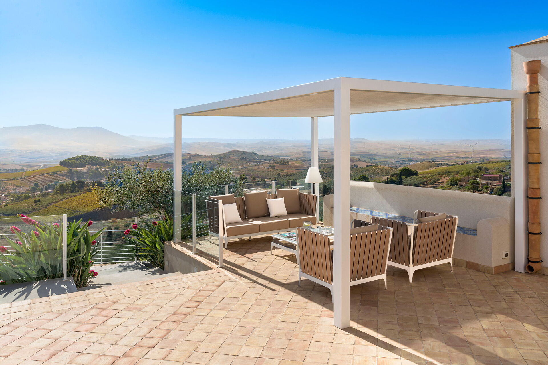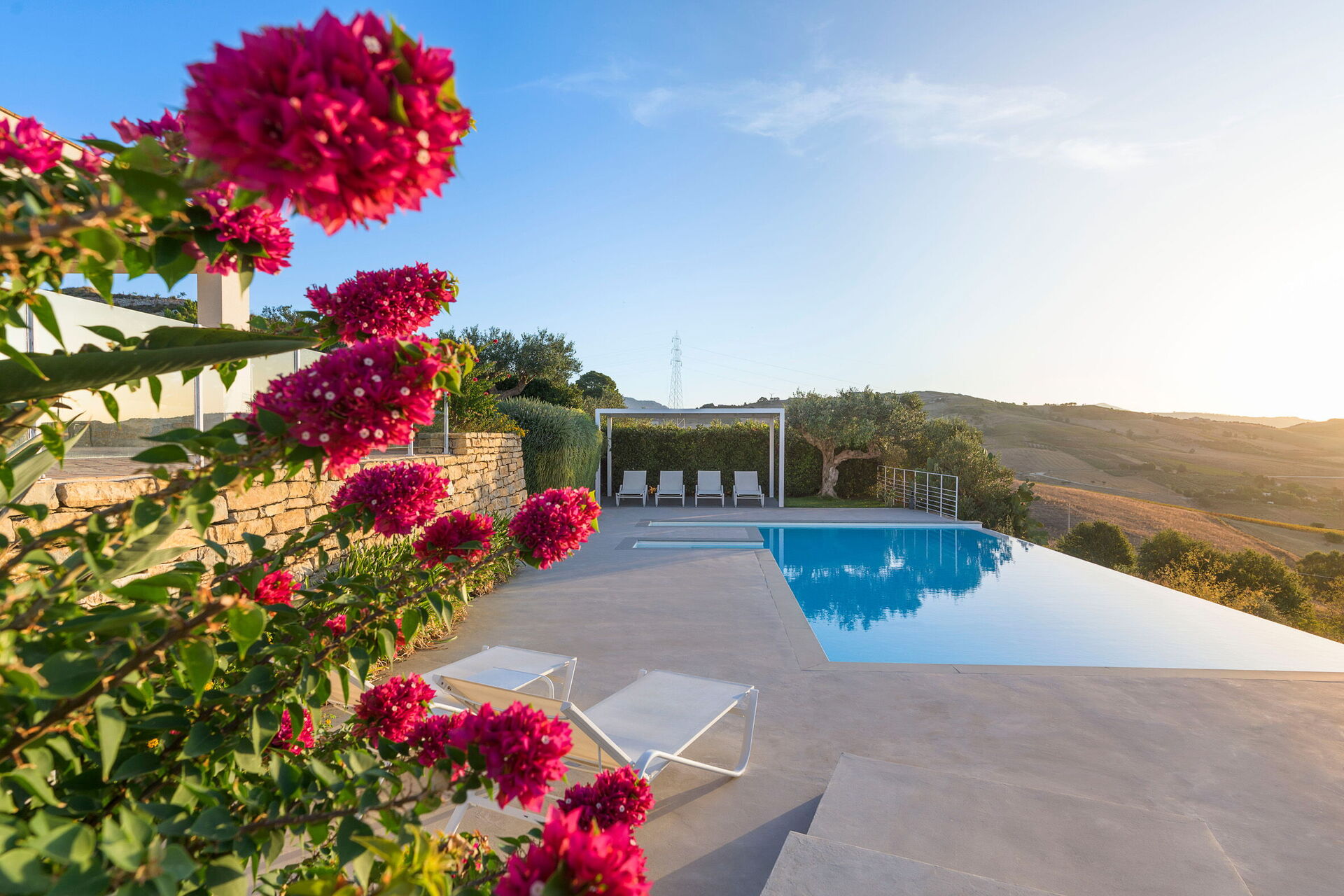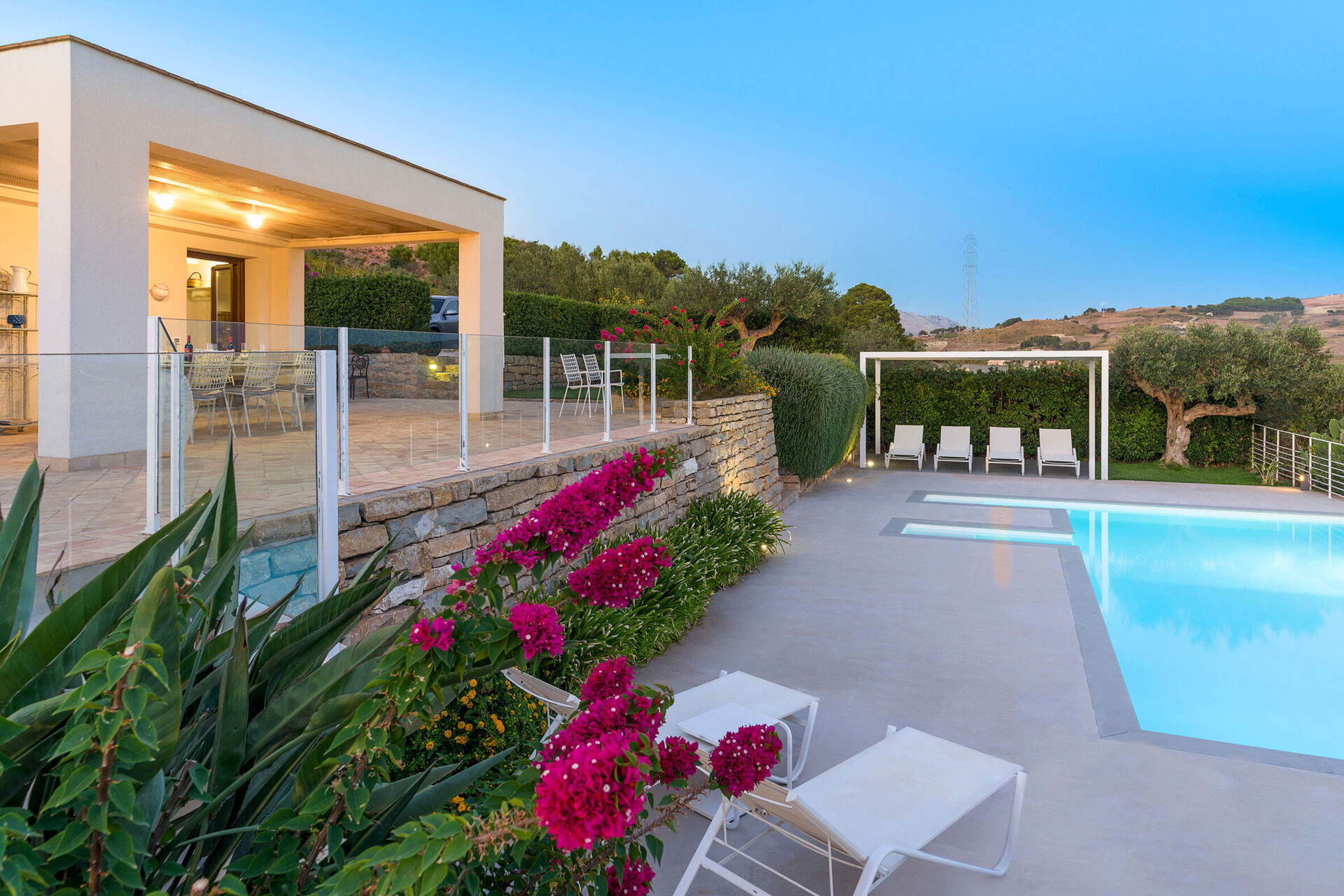 Luxe villa met privézwembad op een prachtige panoramische locatie op het platteland in de buurt van Trapani, een oude en elegante stad op het noordwestelijke puntje van Sicilië.