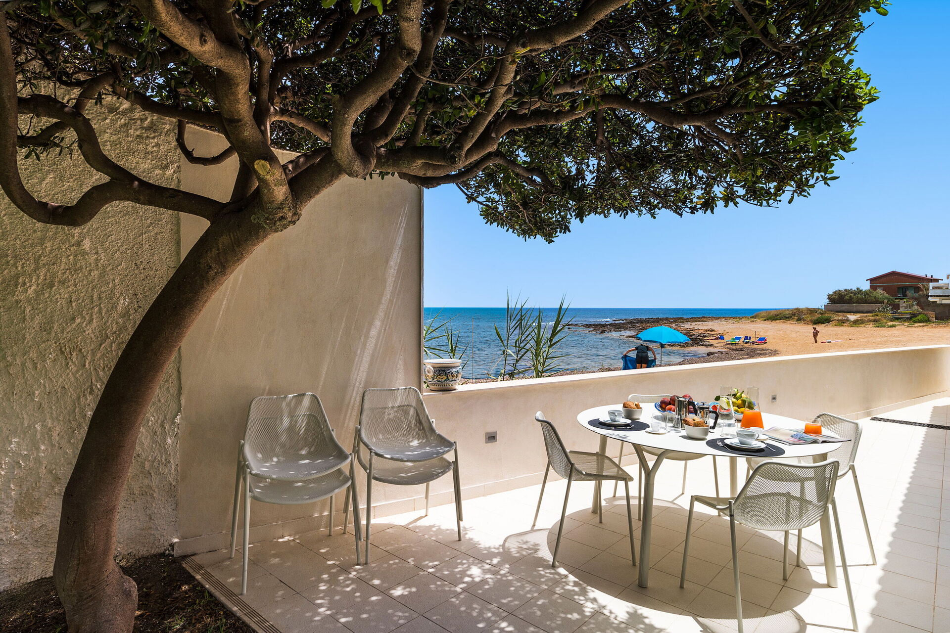 De andere ruimtes zoals de ingerichte veranda en de zonneterrassen maken dit huis tot de ideale plek om te ontspannen met vrienden en familie onder de warme Siciliaanse zon.