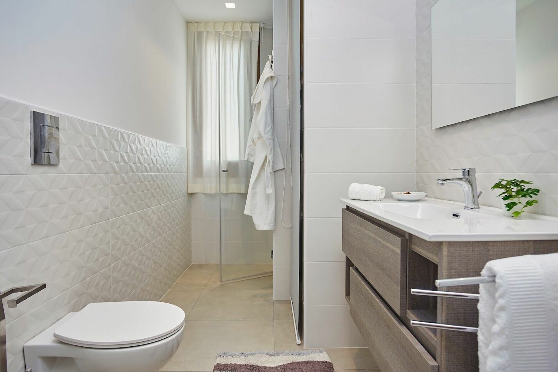 Begane grond: grote en lichte open ruimte met woonkamer, slaapbank voor twee personen, eethoek en keuken, 2 slaapkamers met tweepersoonsbed, slaapkamer met 2 eenpersoonsbedden, 2 badkamers beide met douche.