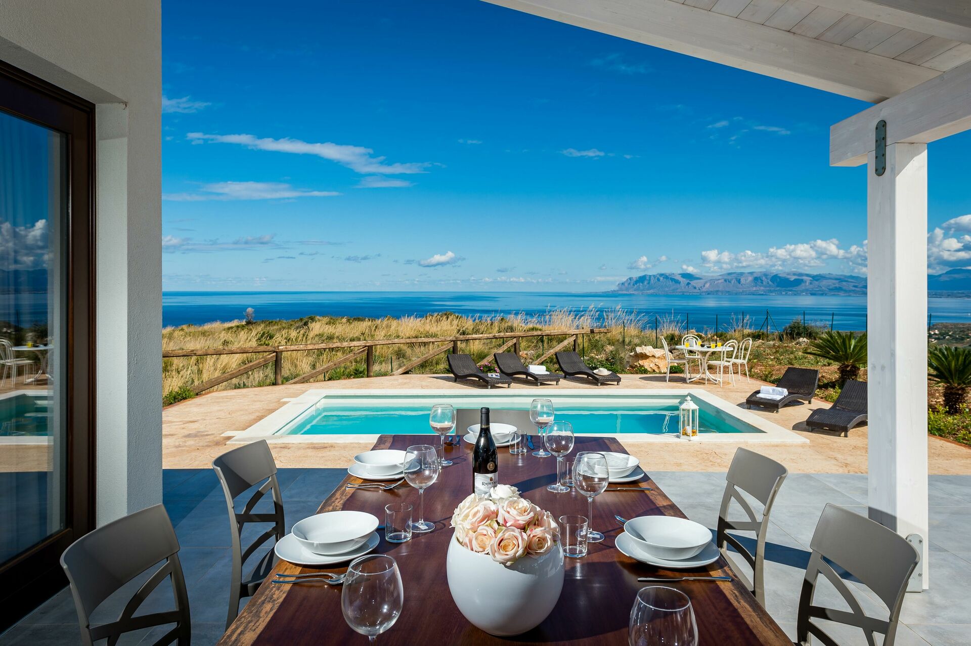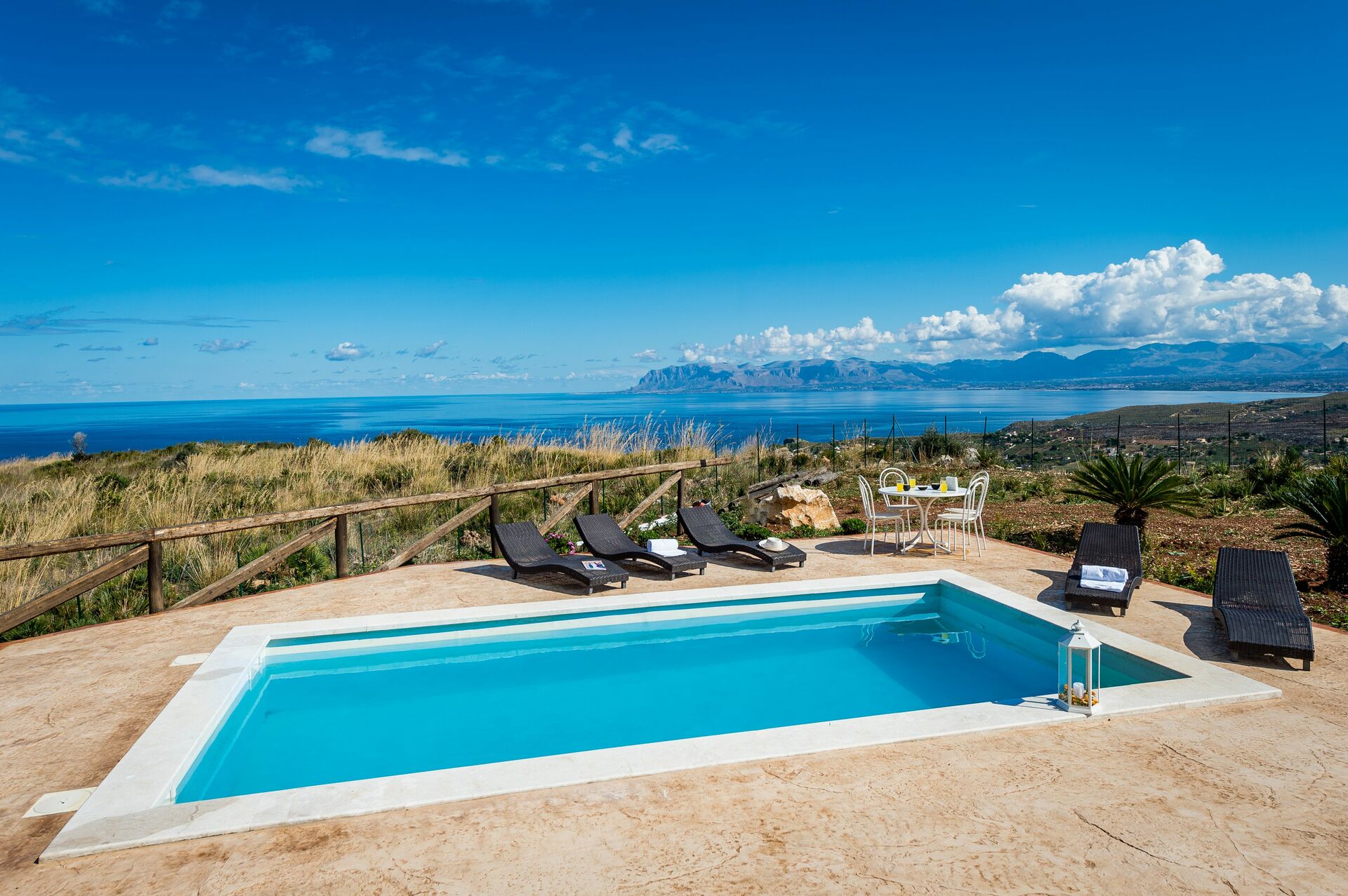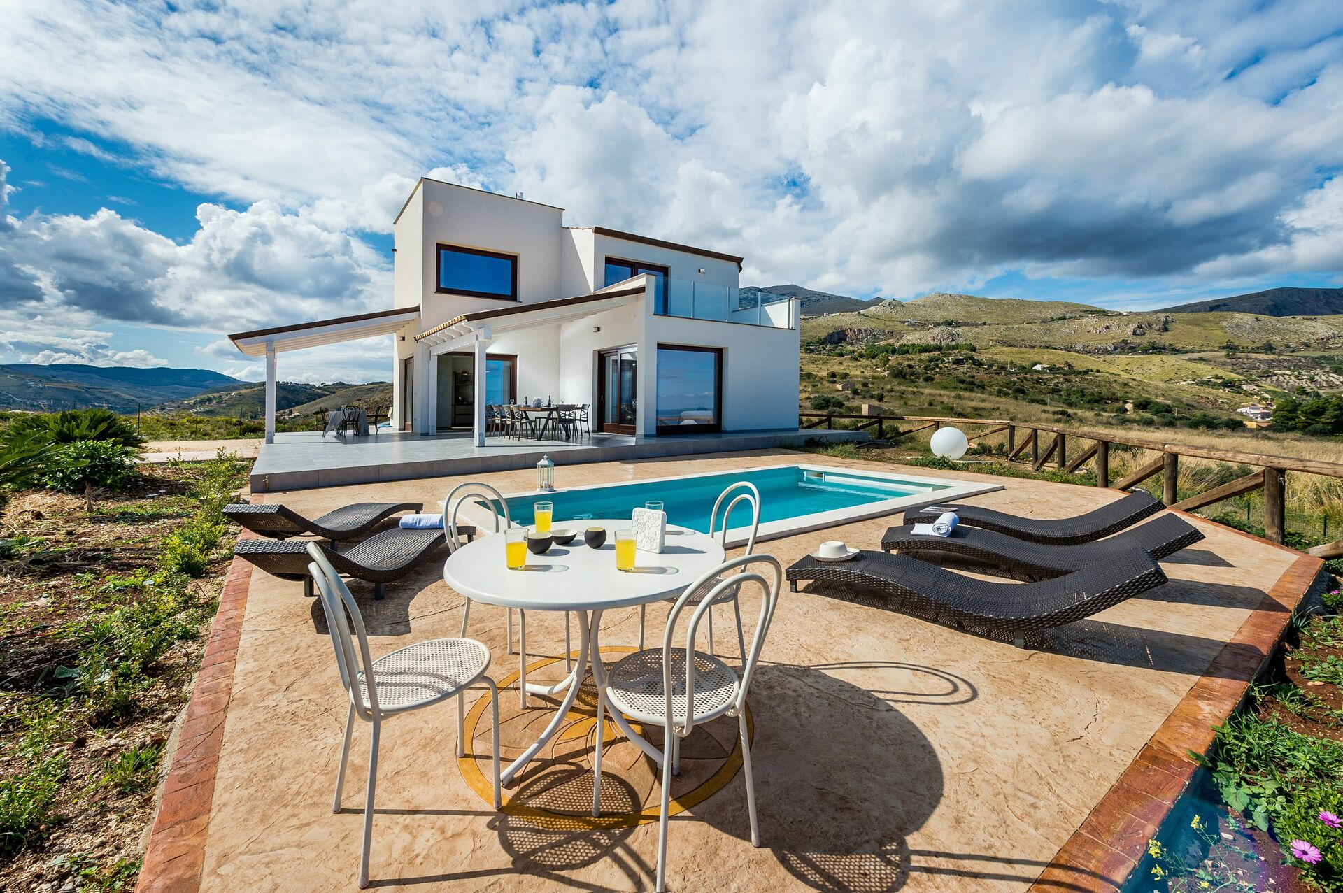 Moderne villa te huur met privé zwembad en 4 slaapkamers gelegen in Sicilië op slechts 6 km afstand van het prachtige dorp Scopello, bekend over de hele wereld om zijn oude "tonnara" (een traditionele manier om tonijn te vangen).