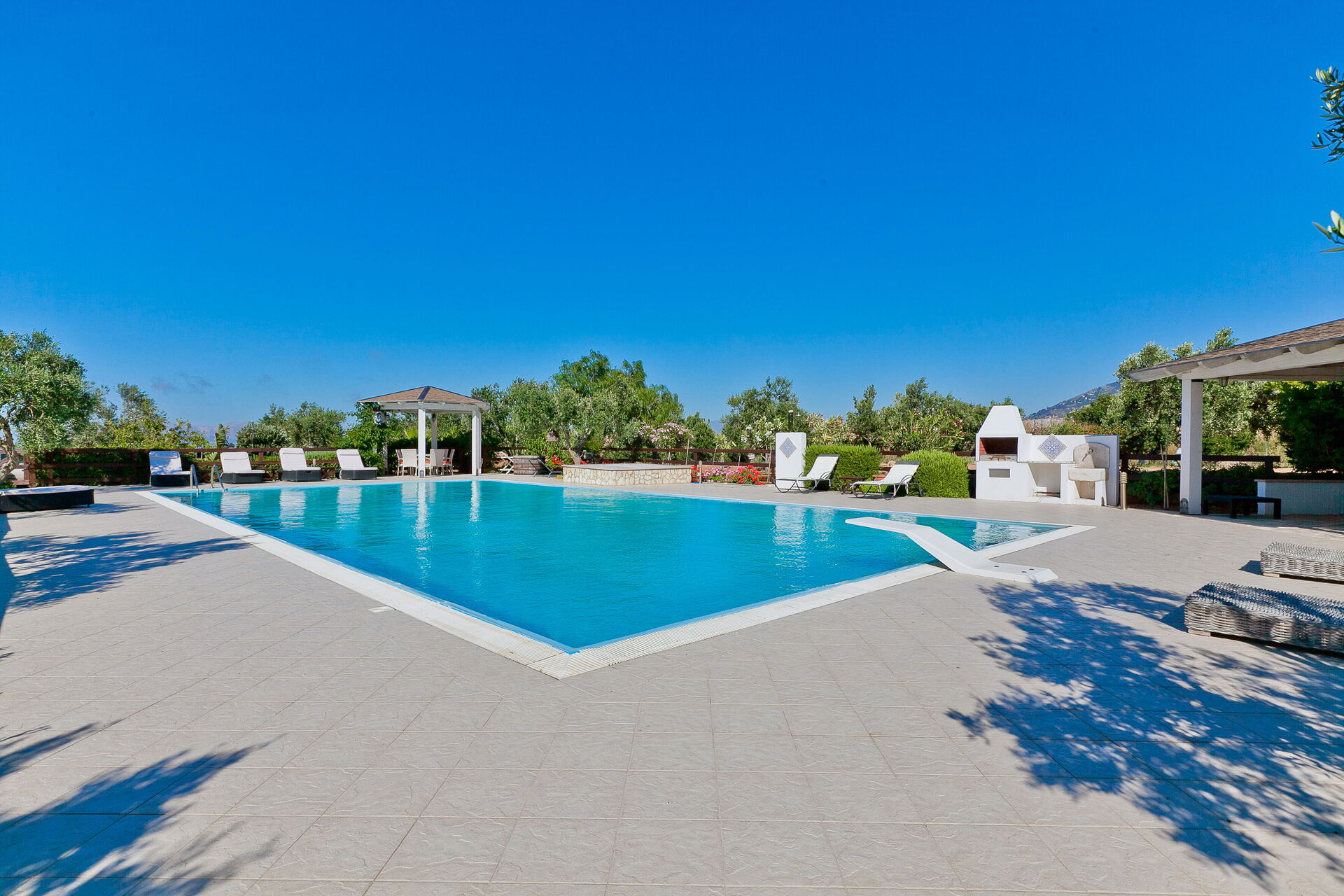 Het zwembad (20 x 10 m; min. diepte: 1,2 m; max. diepte: 2,8 m) bevindt zich voor het huis en bij een verblijf aan het zwembad kunnen de gasten genieten van de schoonheid van de locatie. Sterker nog, de comfortabele buitenbanken laten je genieten van momenten van ontspanning in volledige privacy.